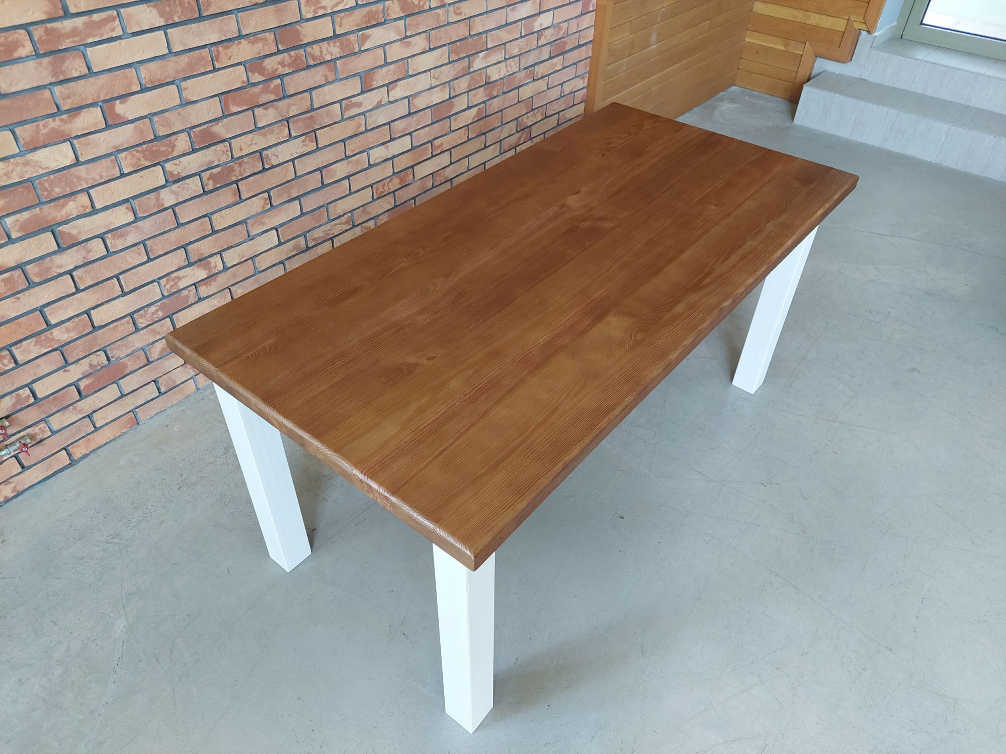 Tömör fenyőfa Provence étkezőasztal 160x80 cm lakkozott felülettel