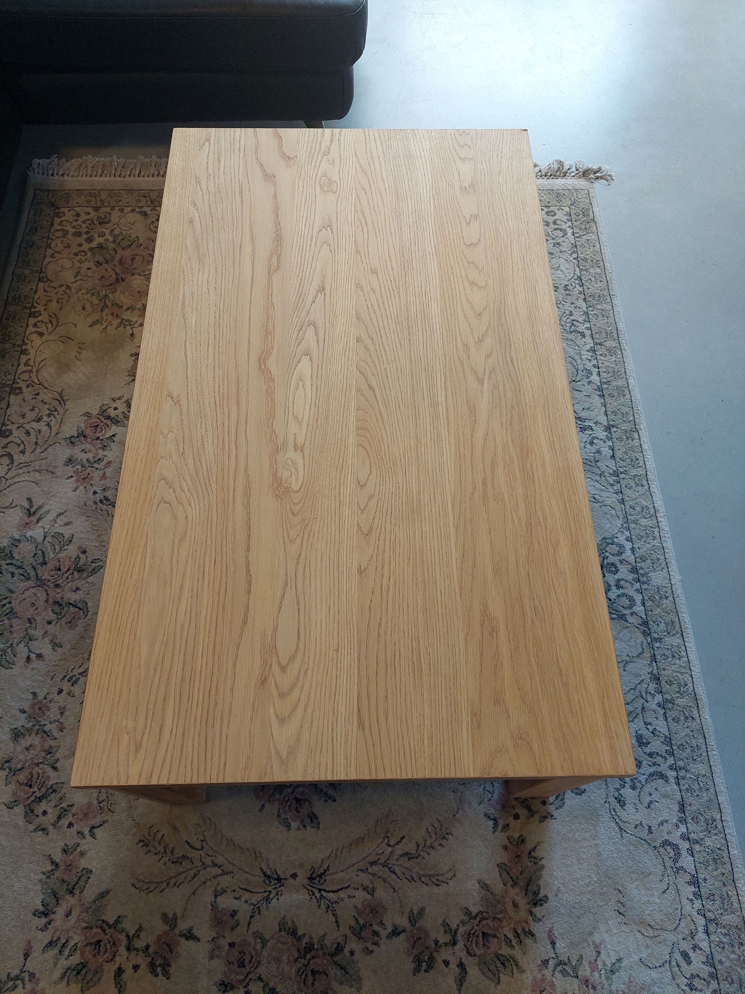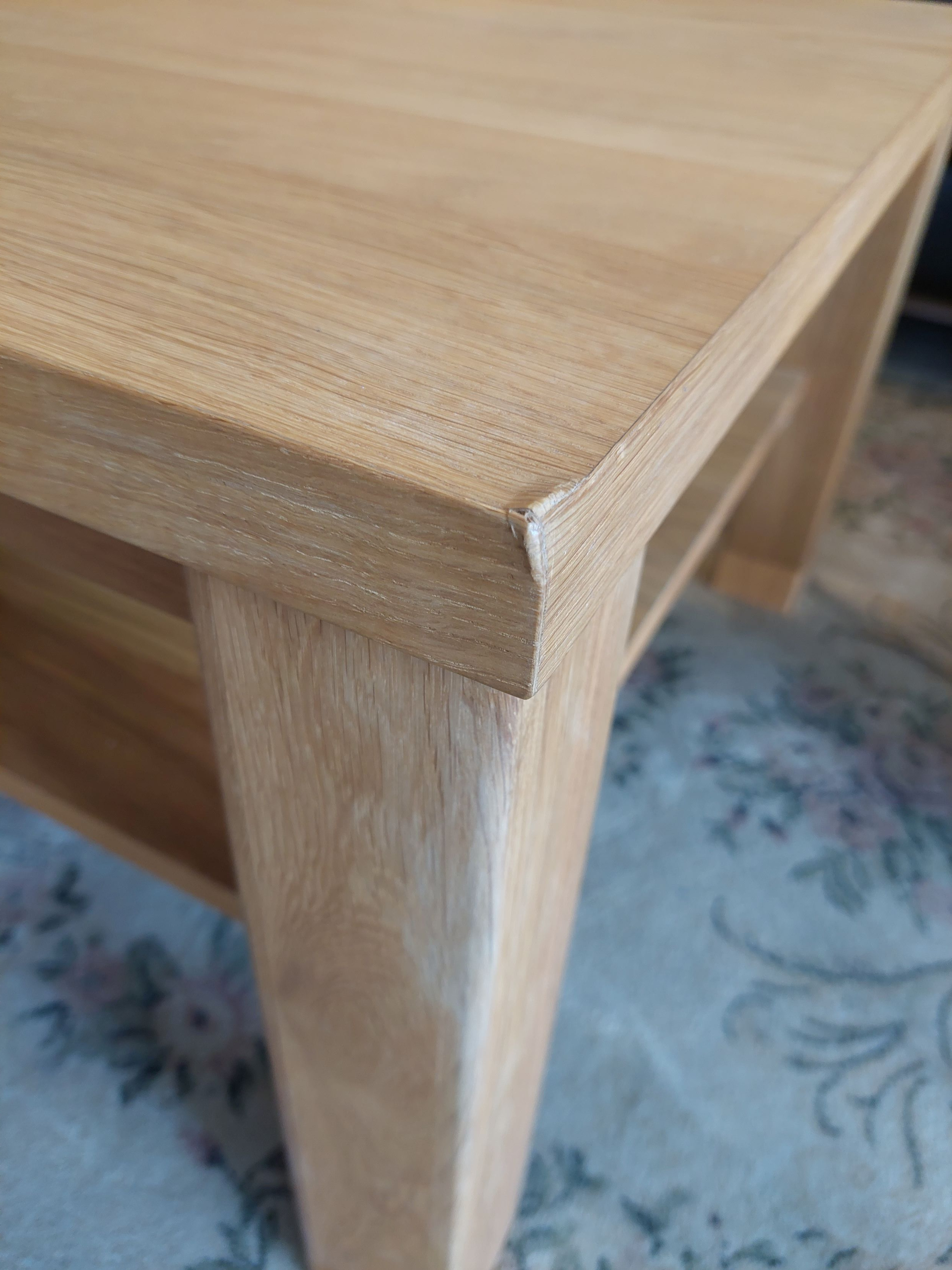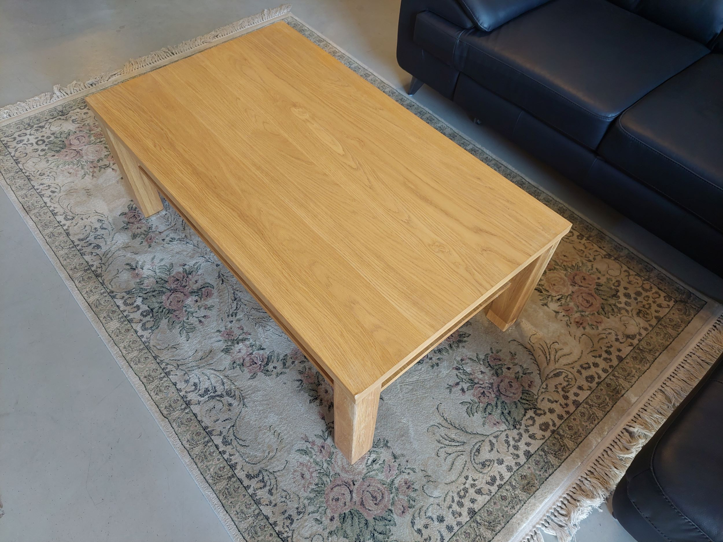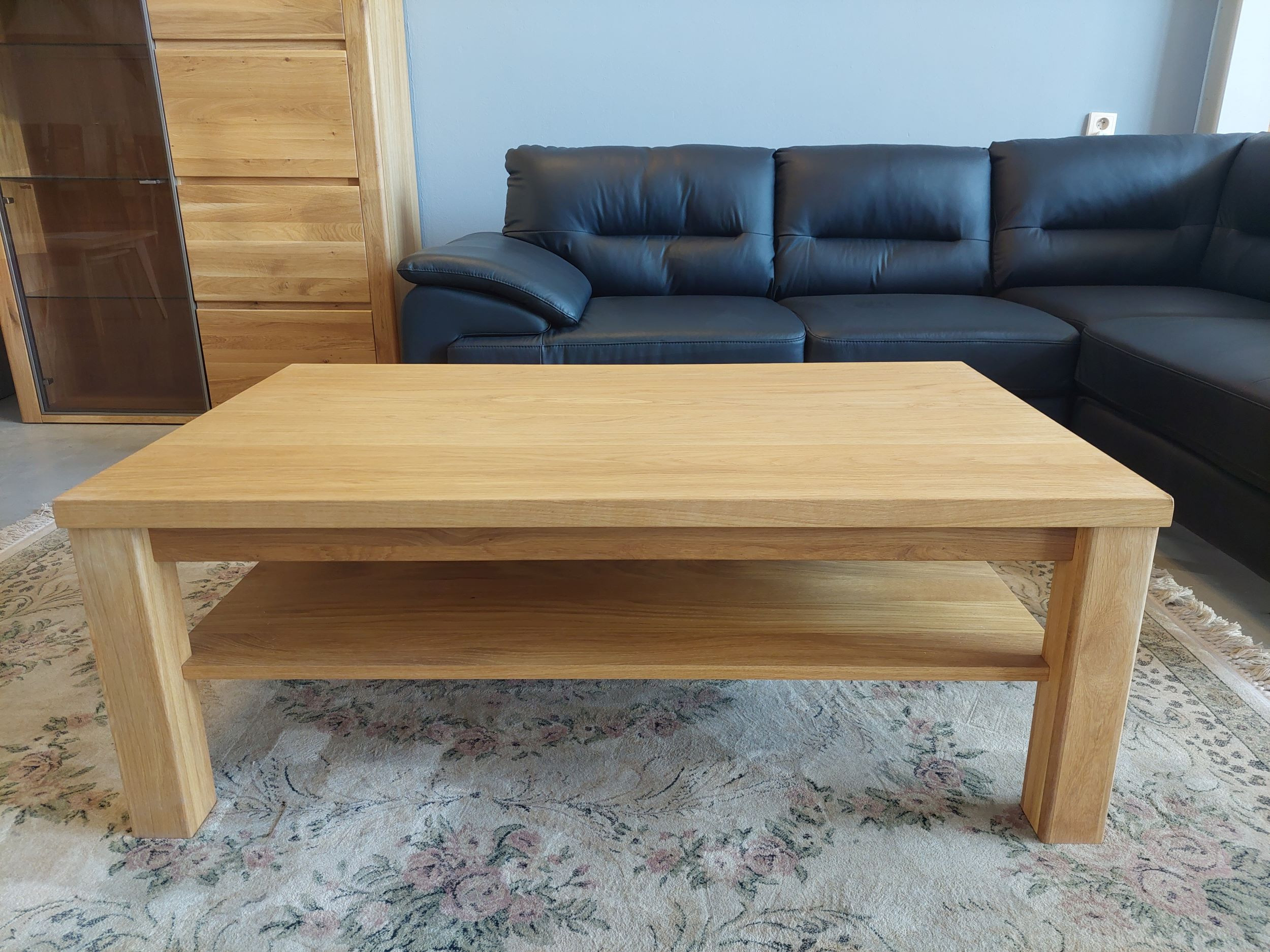 Tömör tölgyfa dohányzóasztal tárolóval, természetes tölgy furnér,