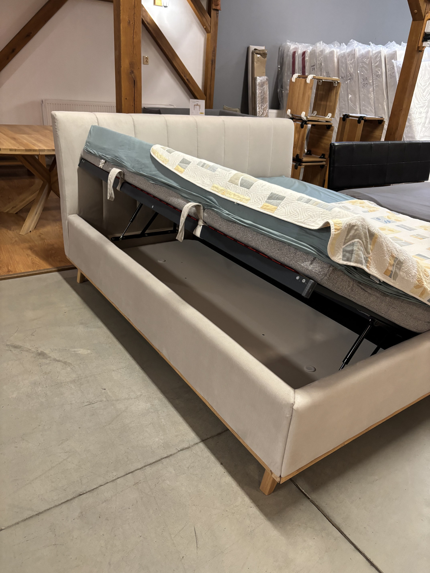 - Össze lehet-e hangolni ezt az ágyat más bútorokkal? Igen, a semleges bézs színnek köszönhetően könnyen kombinálható modern és természetes fa bútorokkal egyaránt.