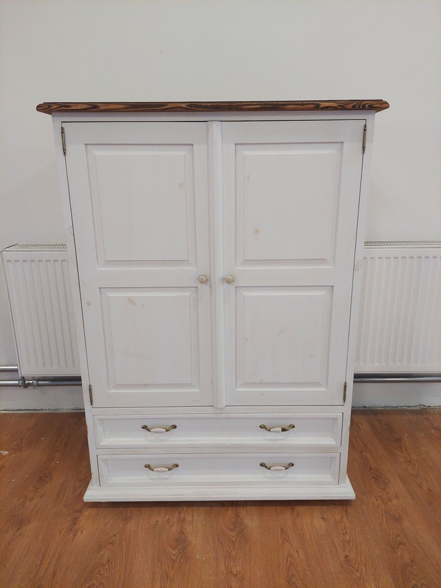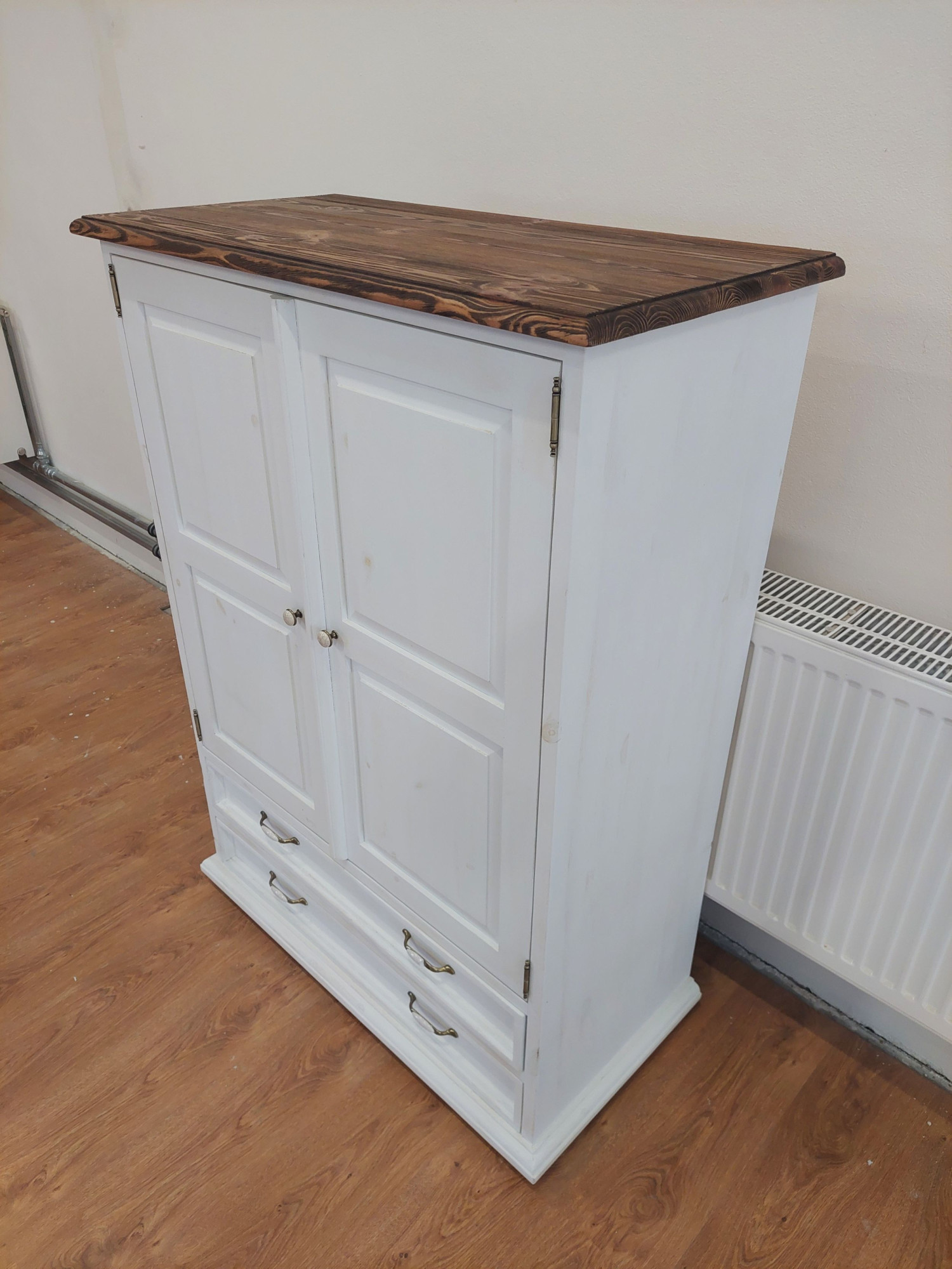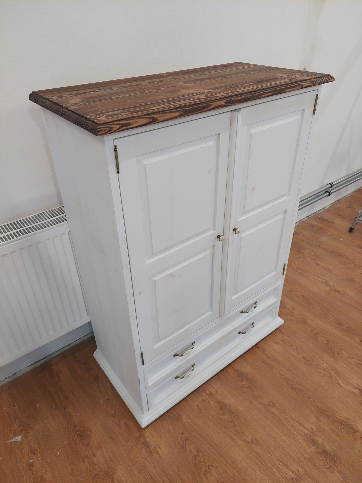 A népszerű provence-i stílusú, elegáns komód finom, romantikus hangulatot és vidéki bájt csempész a lakásba. A fehér patinás felületkezelés a kontrasztos fa lappal kombinálva stílusos vintage megjelenést kölcsönöz, amely hálószobába, nappaliba és előszobába egyaránt illik.