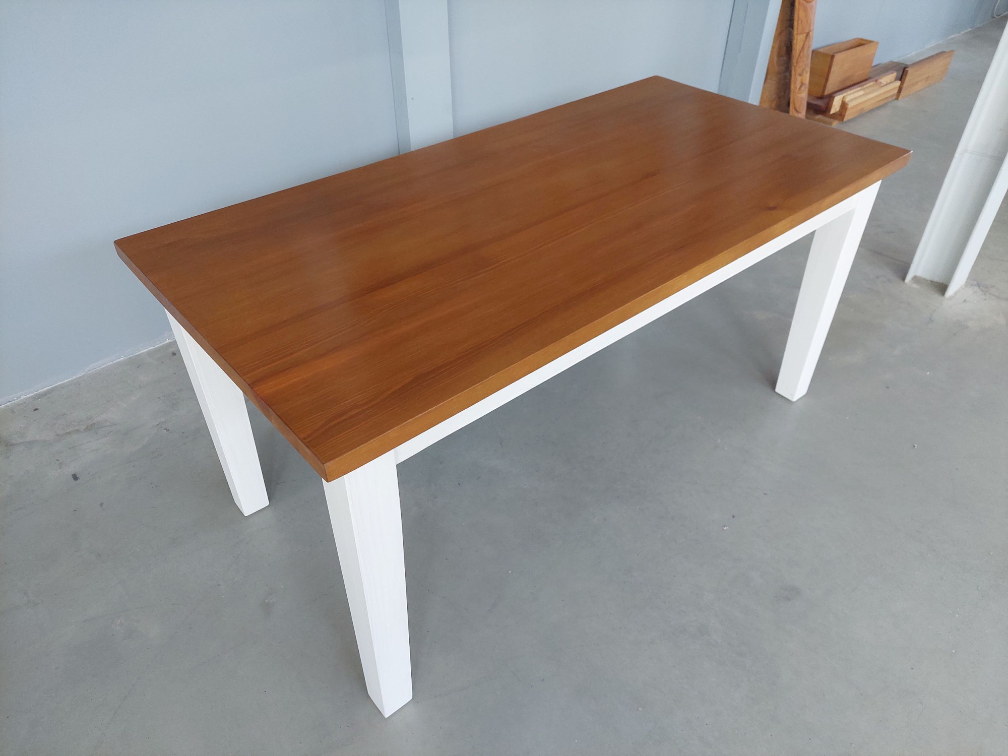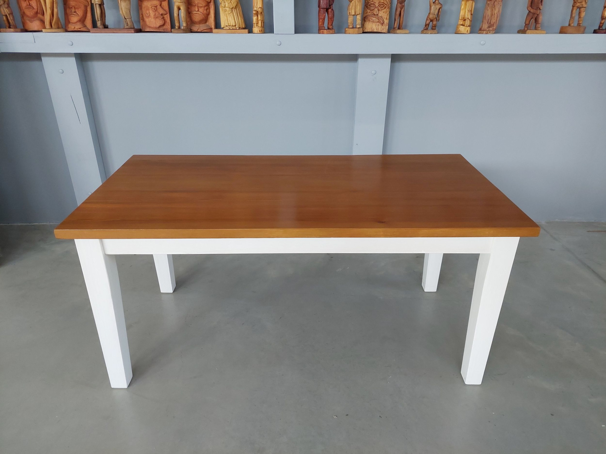 Fance tömörfa asztal, fehér-barna 160 x 80 - bemutatódarab, kiváló állapotban