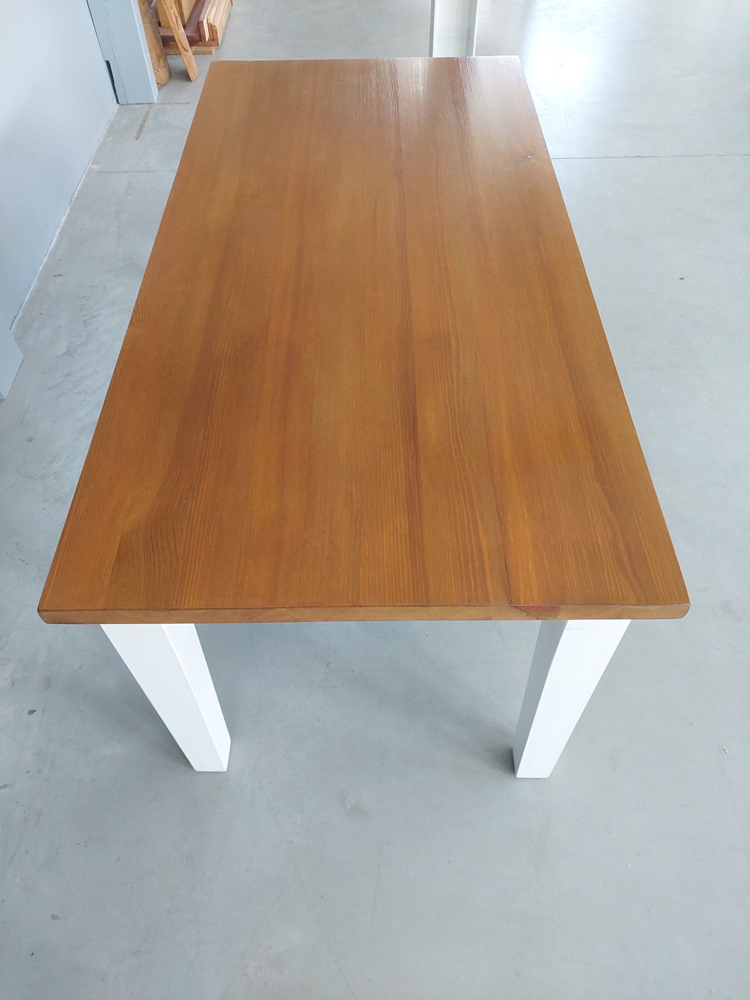 Fehér-barna tömörfa asztal je ideális megoldás olyan otthonok számára, amelyek minőségi és tartós étkezőasztalt keresnek természetes anyagokból. Készült tömör fenyőfából, amely szilárdságot, stabilitást és természetes megjelenést kölcsönöz a bútornak. A felsőlap vastagsága až 4 cm felületkezelése lakkal történt, ezért ellenálló a folyadékokkal szemben és a mindennapi használattal szemben. A szép felület megőrzéséhez javasoljuk terítők vagy alátétek használatát.