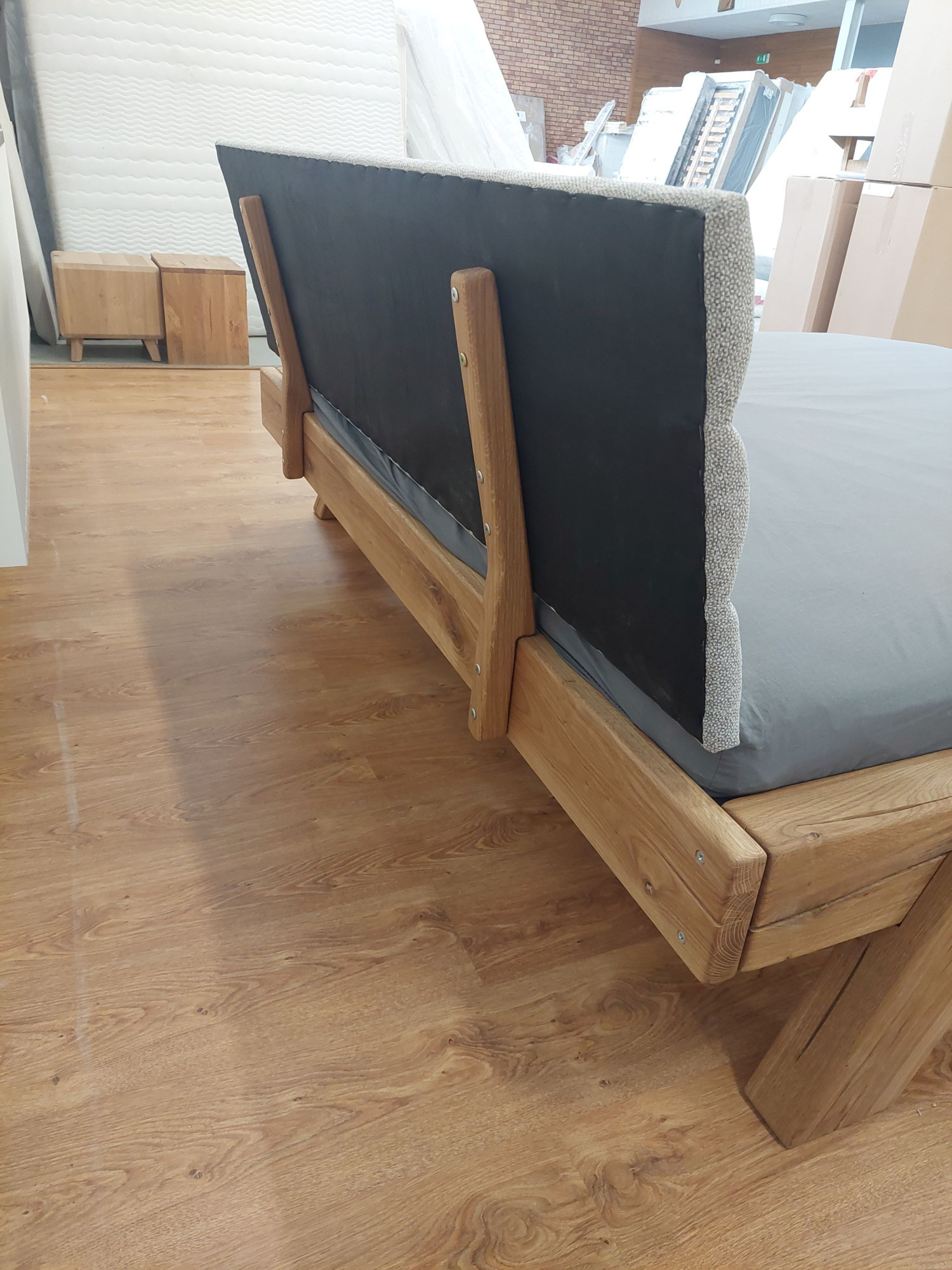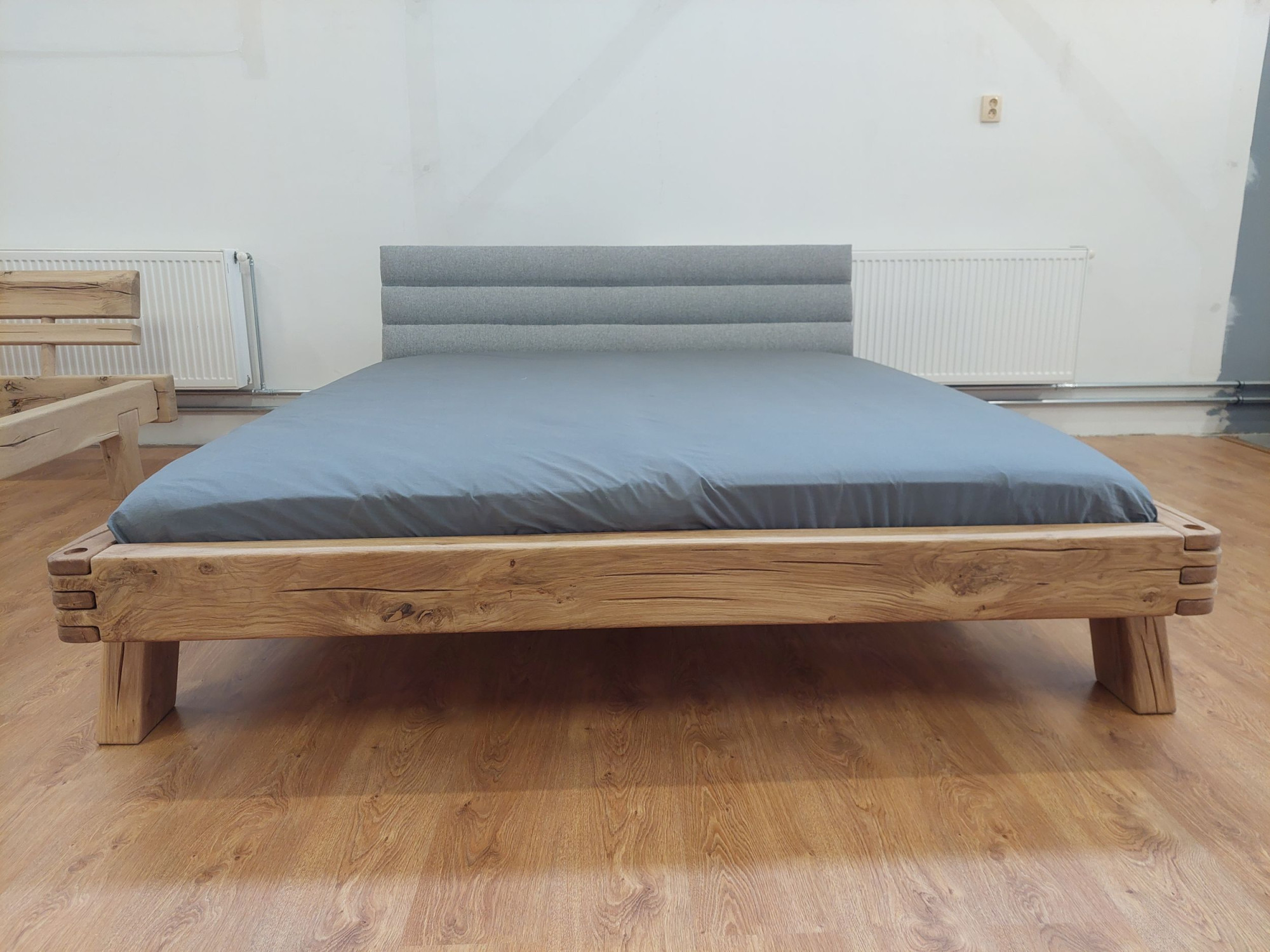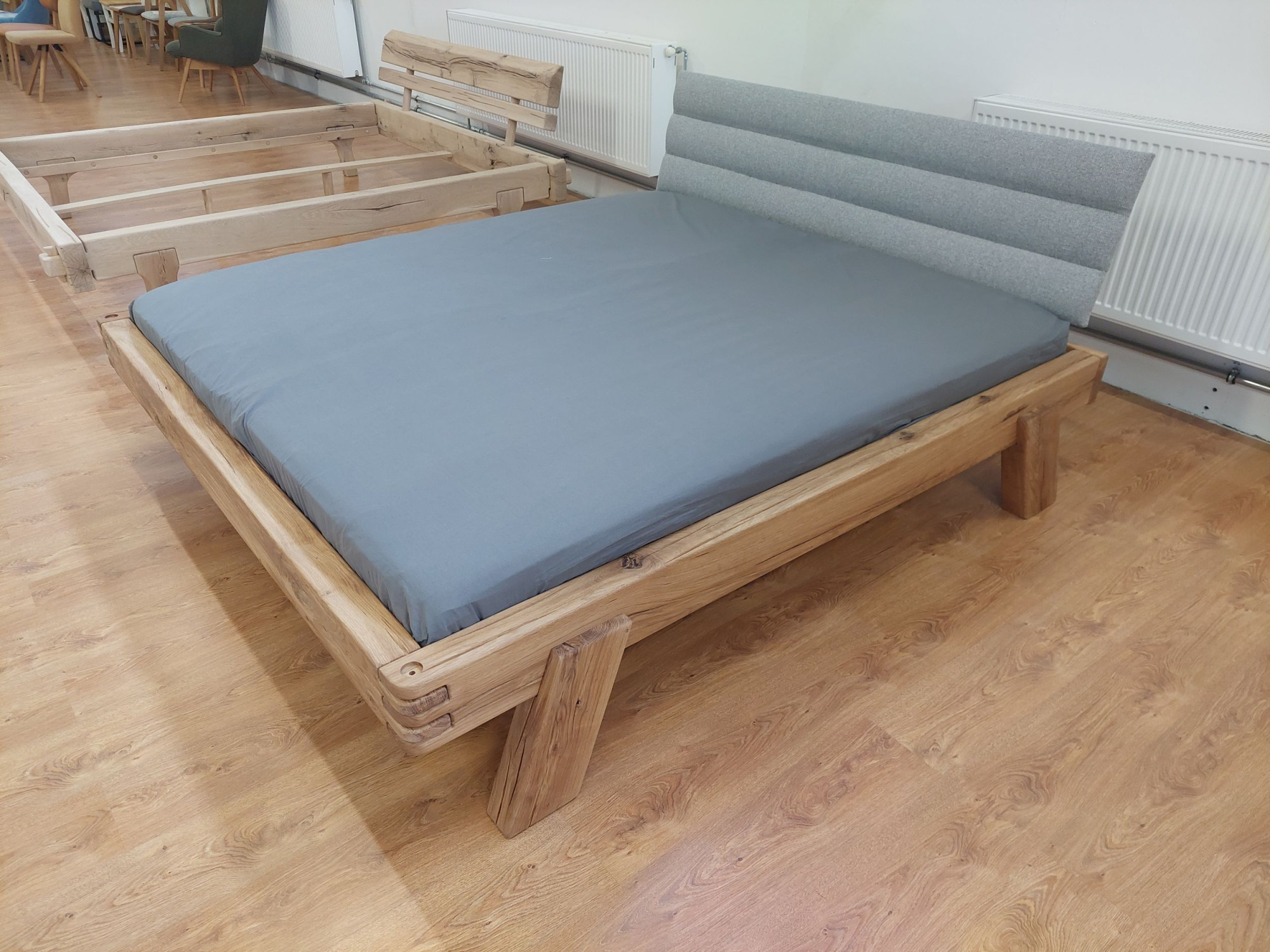 Tölgy ágy kárpitozott fejtámlával 180×200 – bemutatódarab
