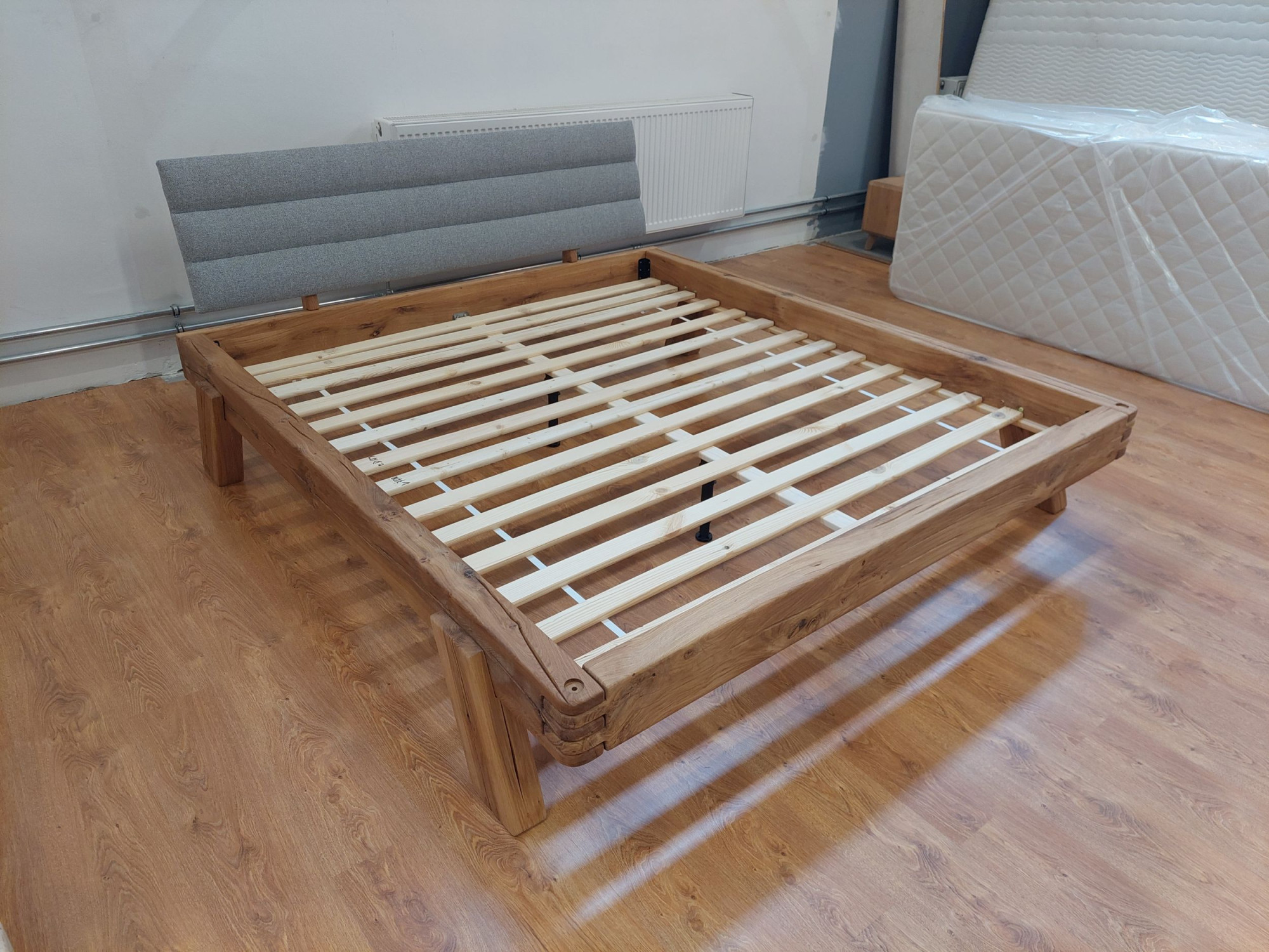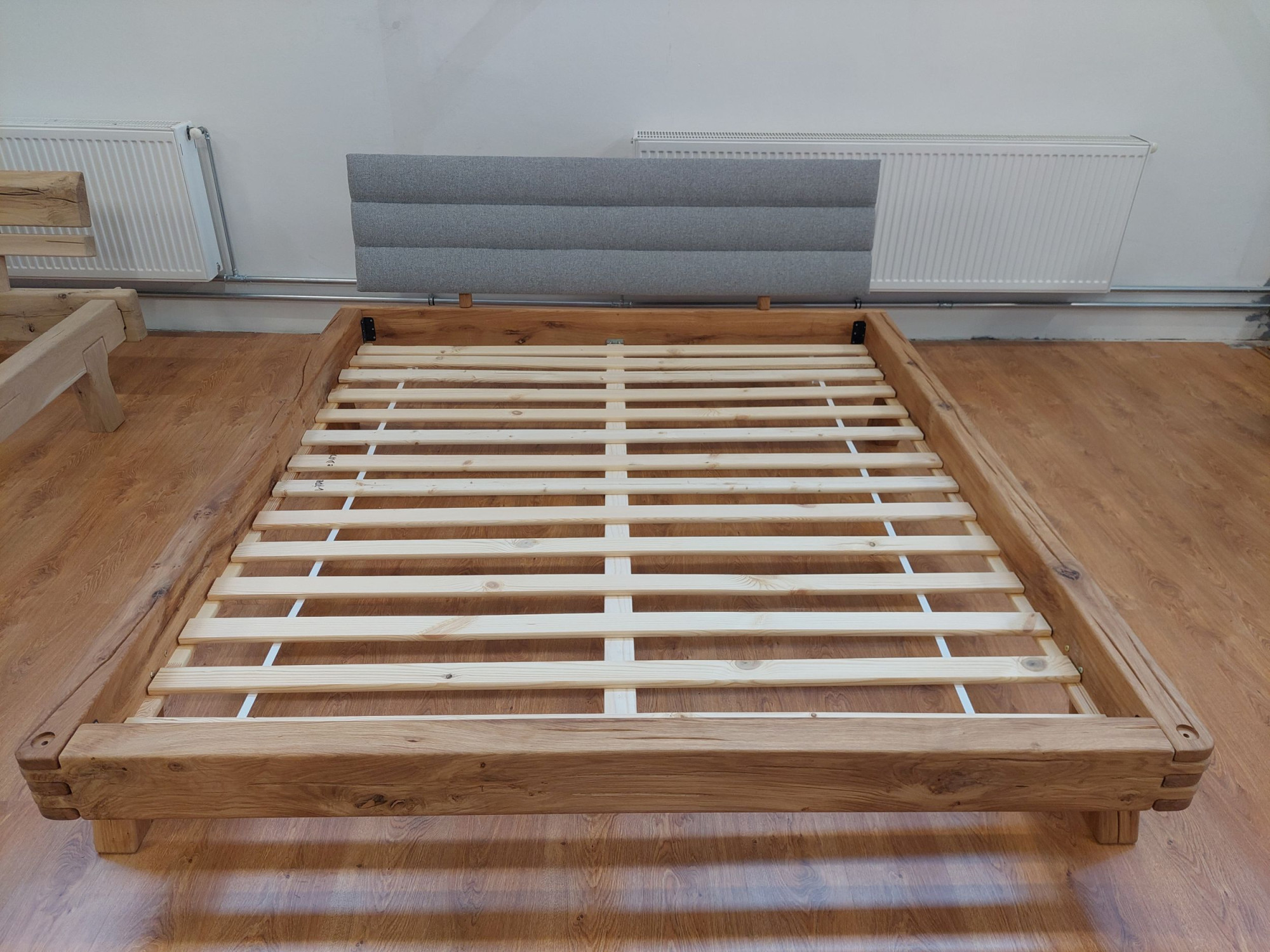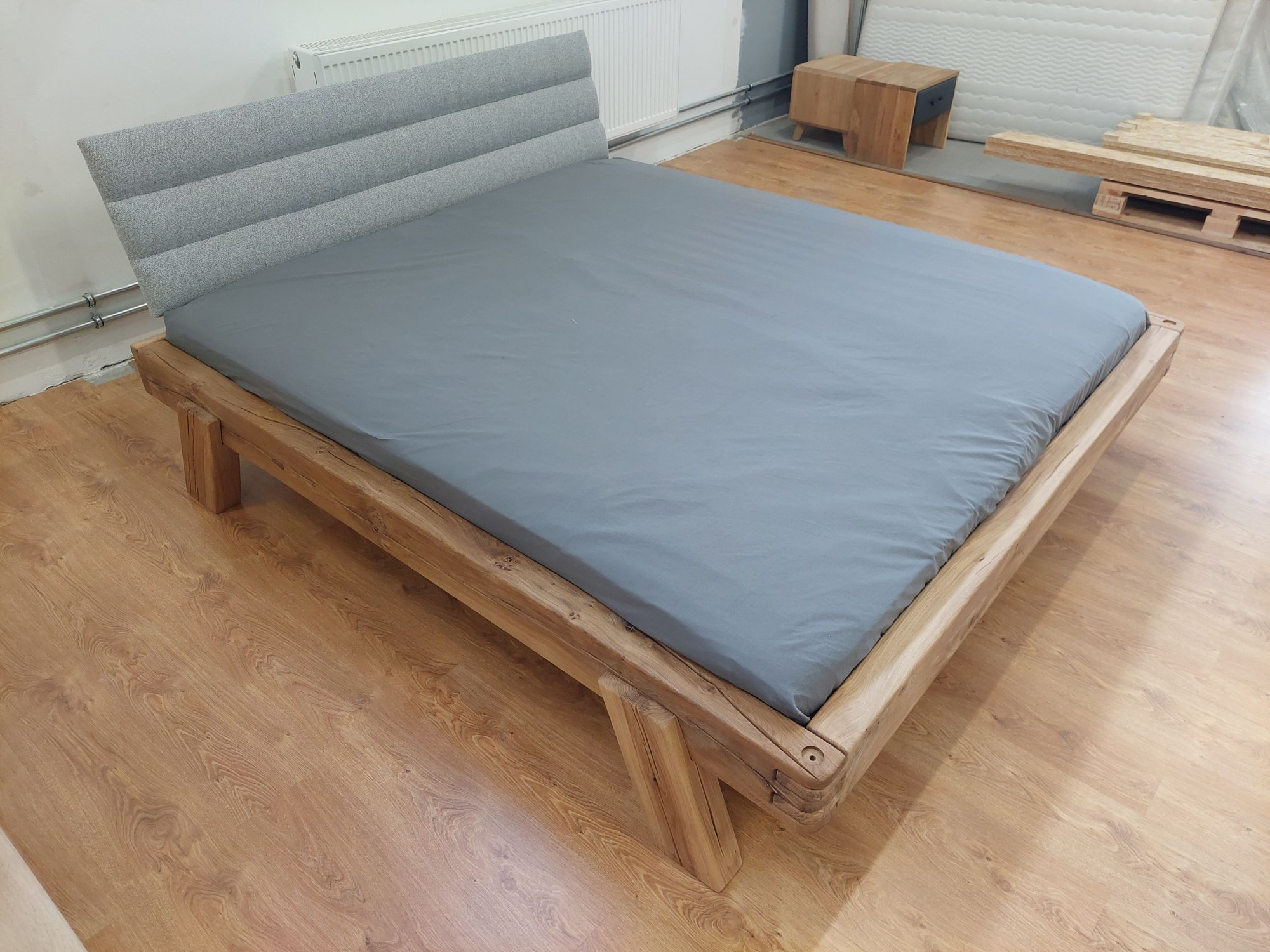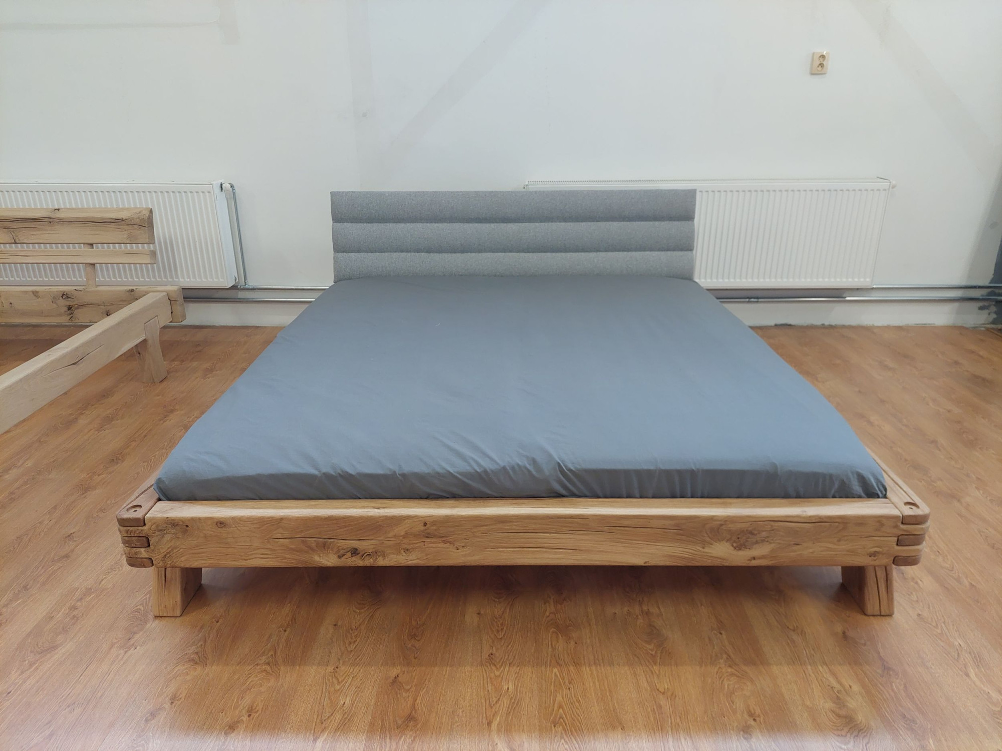 Tölgy ágy kárpitozott fejtámlával 180×200 – bemutatódarab