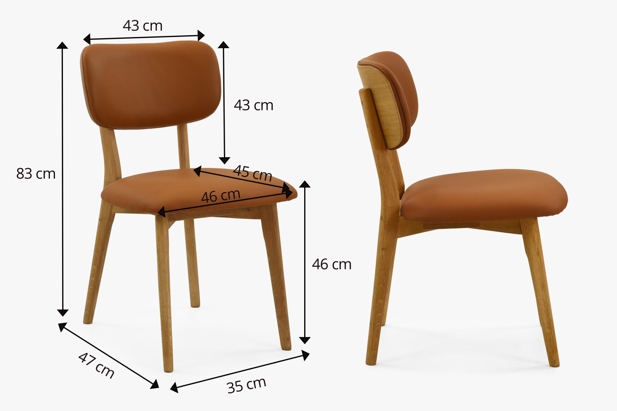 Tölgyfa bőr Benjamin szék – Kínálatunkban két darabos szett.