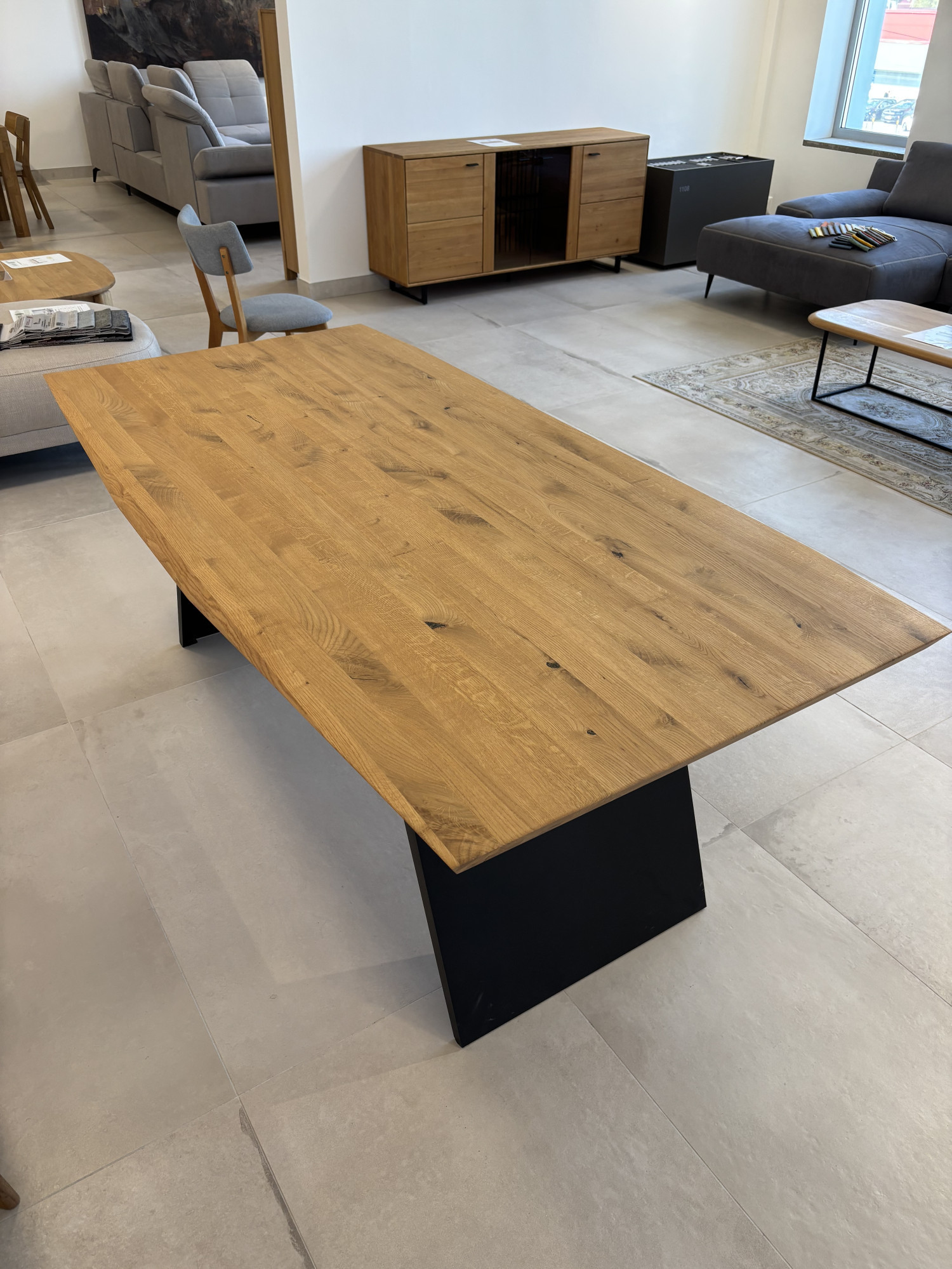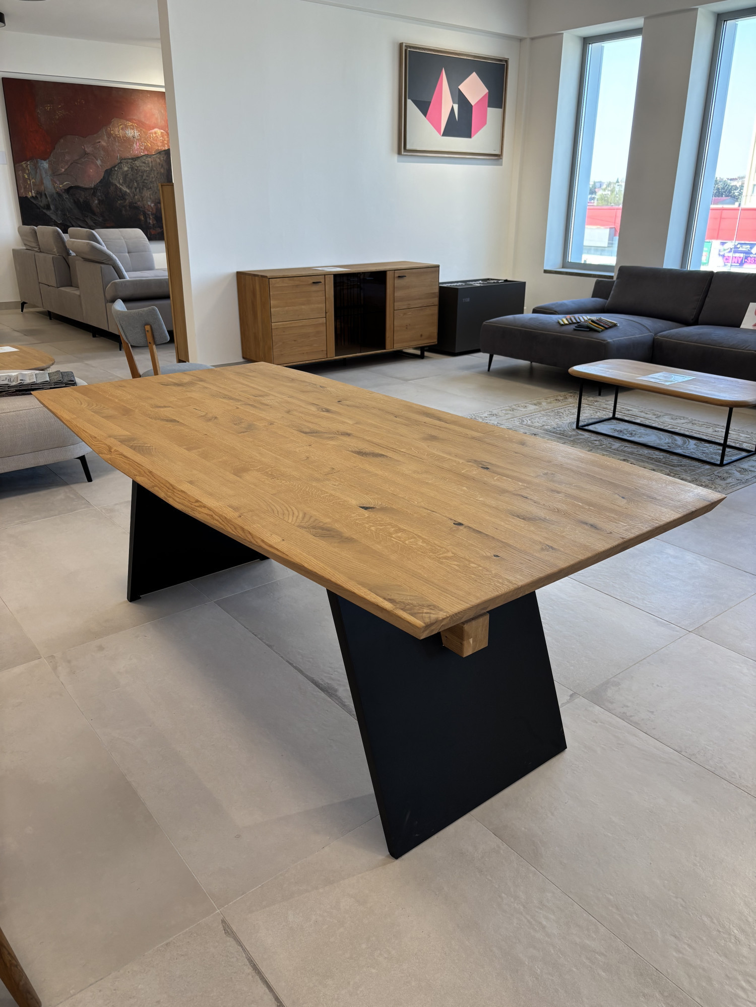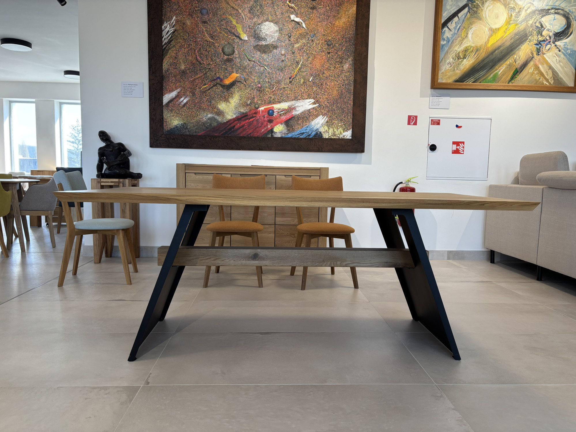 Tölgyfa étkezőasztal fekete fém lábakkal, 200x100 cm, modern design