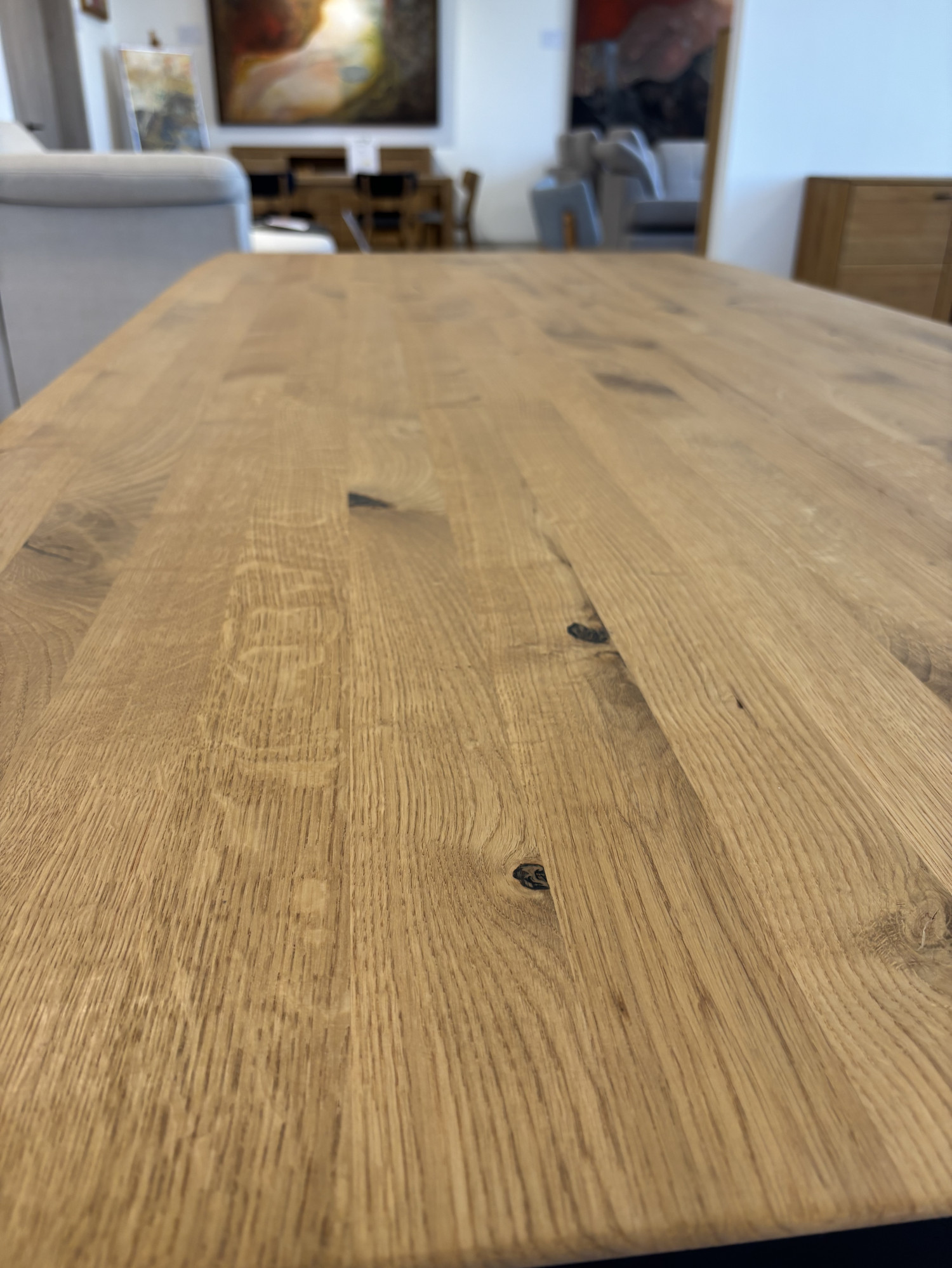 És ez még nem minden! Az asztalt tovább élettel tölti meg a fa rész, amely az asztal közepén húzódik, és egyedülálló jelleget kölcsönöz neki. Ez a gyönyörű tölgyasztal 100% tömör tölgyből készült, gyönyörű a tölgy természetes vad tölgy mintázatával. Mit gondol? Beleszeret ebbe az asztalba ugyanúgy, mint mi? Csatlakozzon Ön is az elégedett Oscar asztaltulajdonosokhoz.