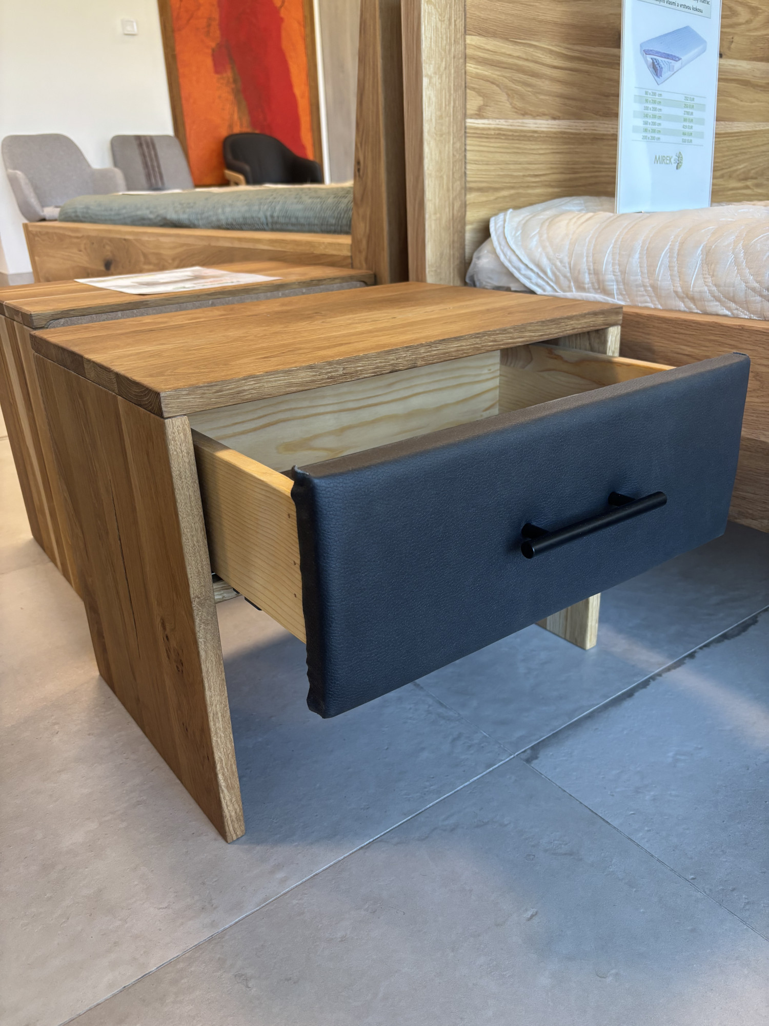 Outlet tölgy tömörfa éjjeliszekrény 50 cm – összeszerelt szekrény 1 soft-close fiókkal 35% kedvezmény