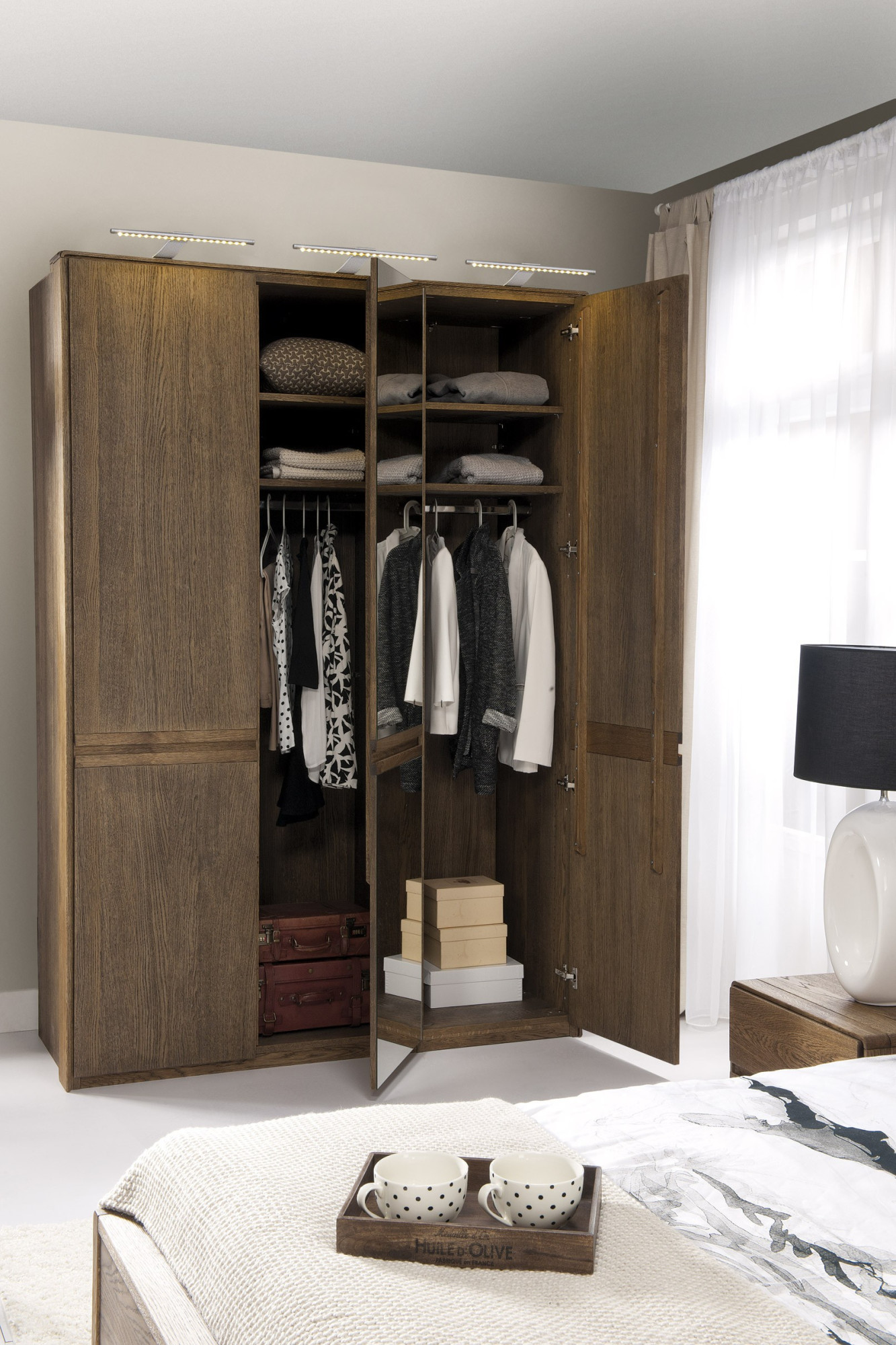 A gardróbszekrény megtalálja helyét a hálószobában, de a nappaliban vagy az előszobában is. Belső tere felül egy ruhatartó rúddal és két beépített polccal van tagolva. A szekrény belső elrendezése lehetővé teszi a vállfán lógó ruhák és az összehajtogatott ruhák tárolását is. A gardróbszekrény természetes tölgyfa furnérból készült. Kapható világosabb, természetes, környezetbarát változatban olajozott tölgy, vagy különleges felületkezeléssel égetett tölgy.