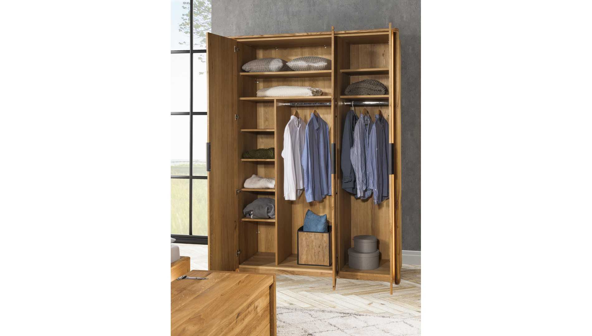 Háromajtós tömör tölgy szekrény olajszínű, hálószobai tároló