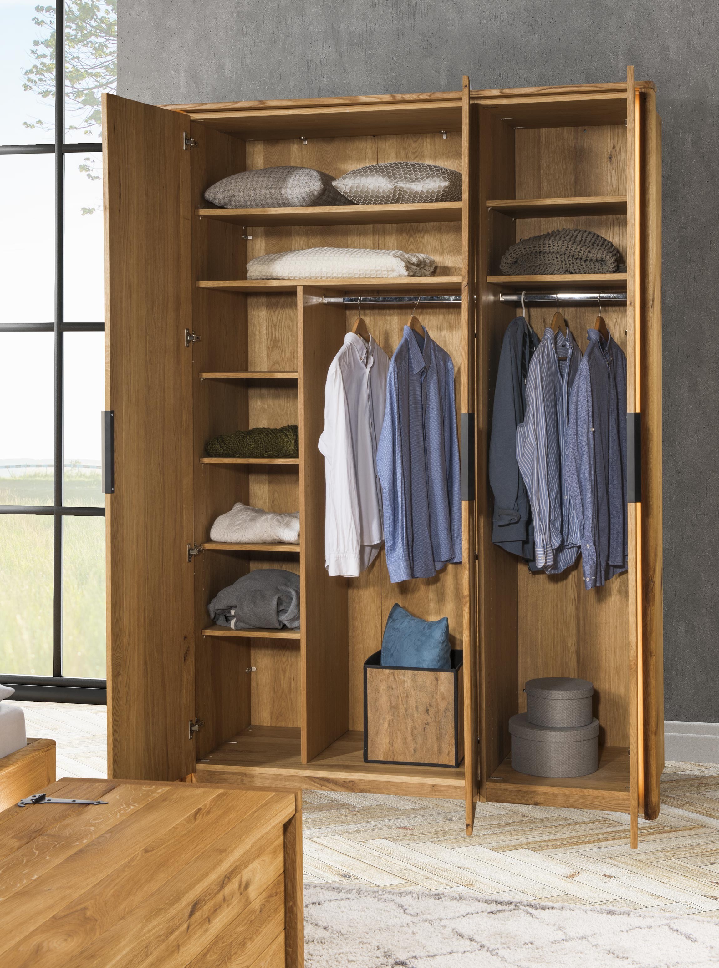 Tömör tölgyfa ruhafogas és polc szekrénybe, FSC tanúsított