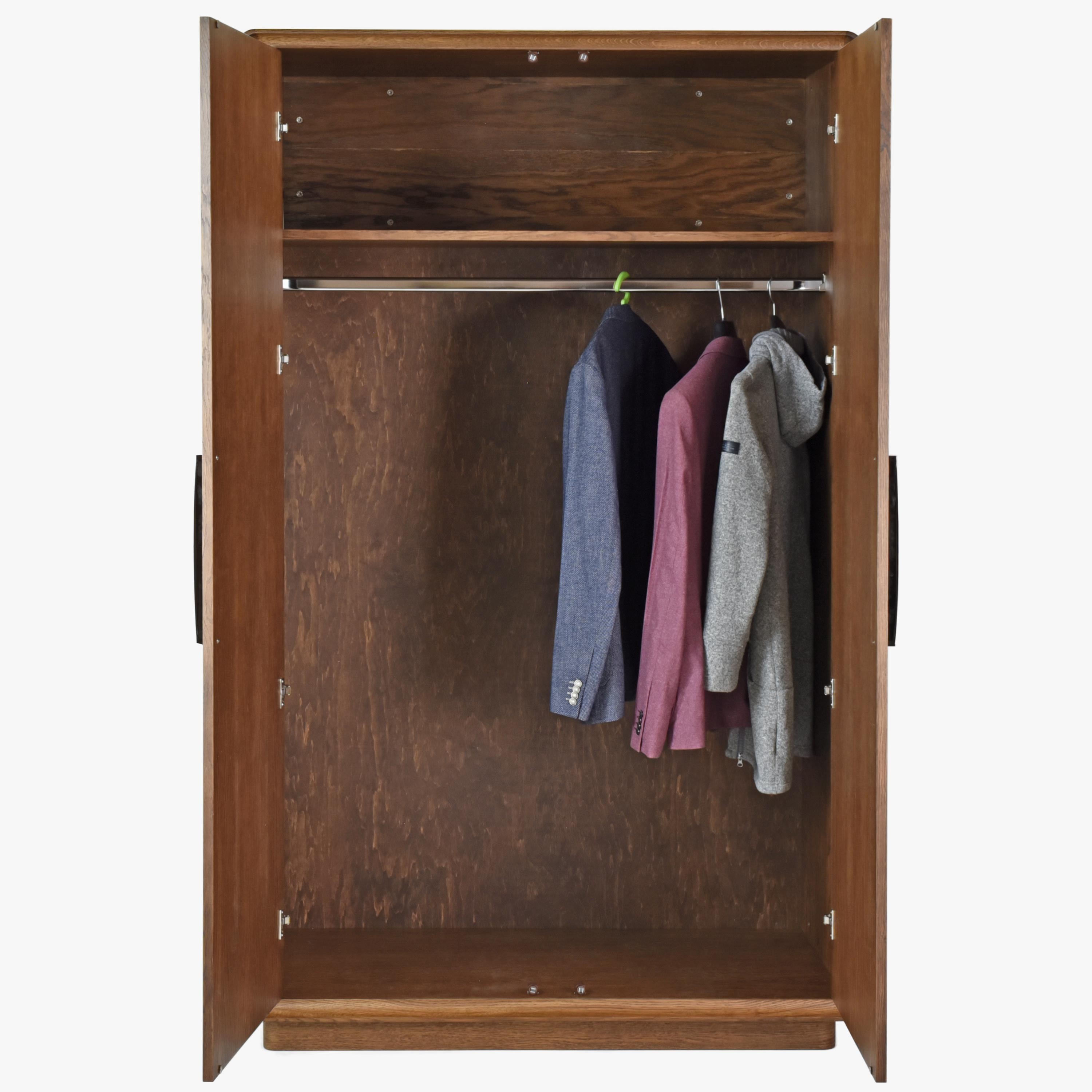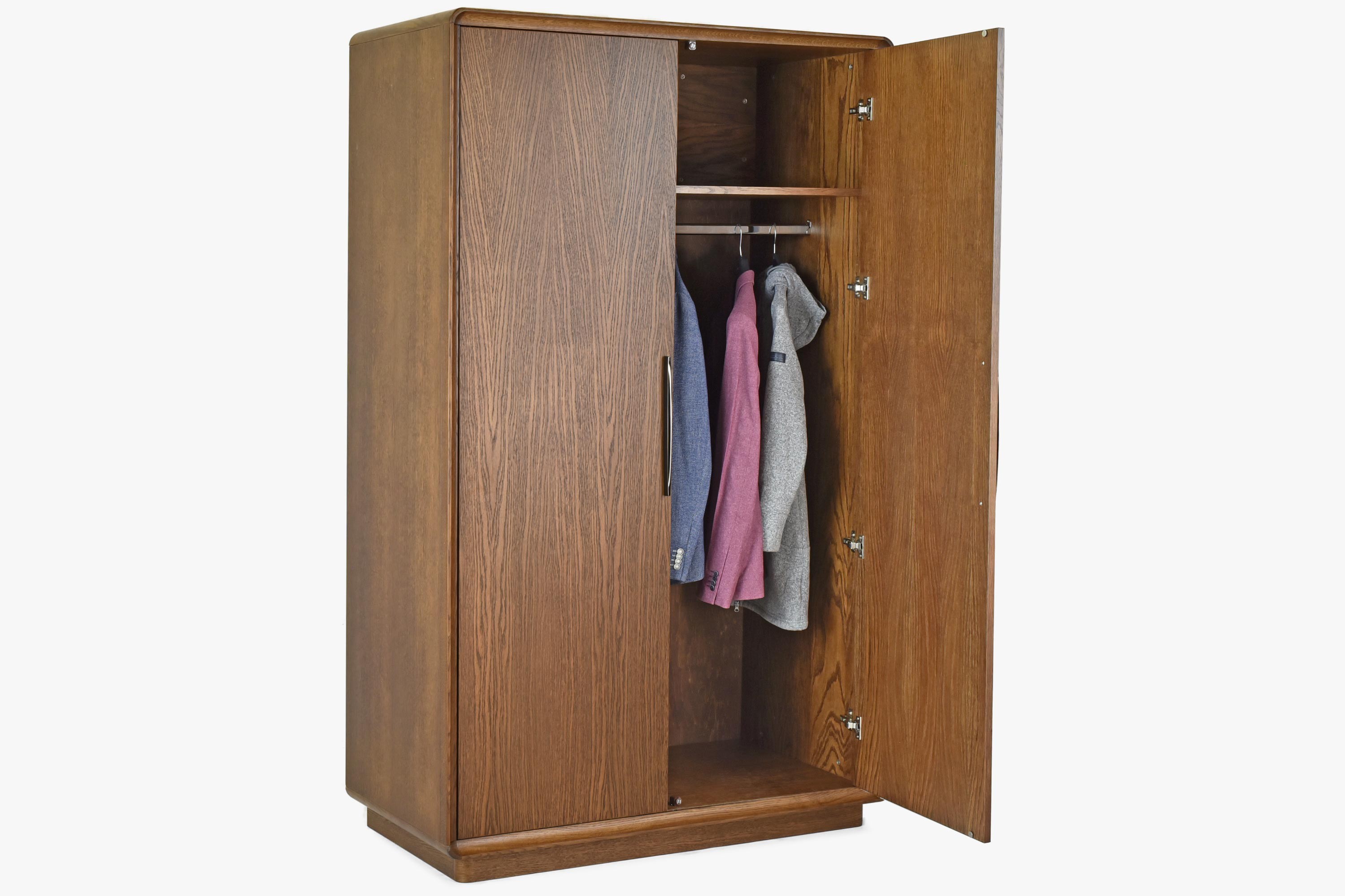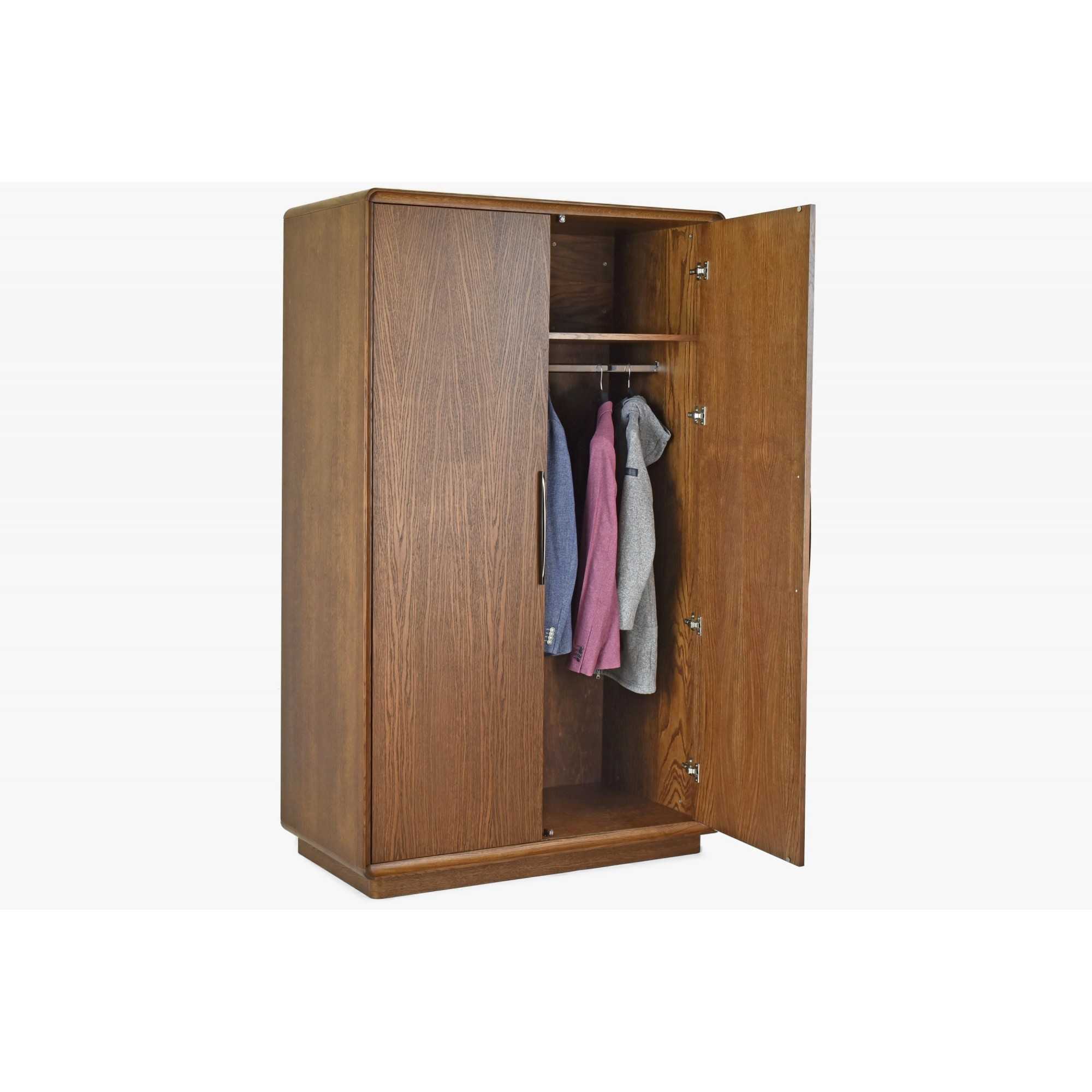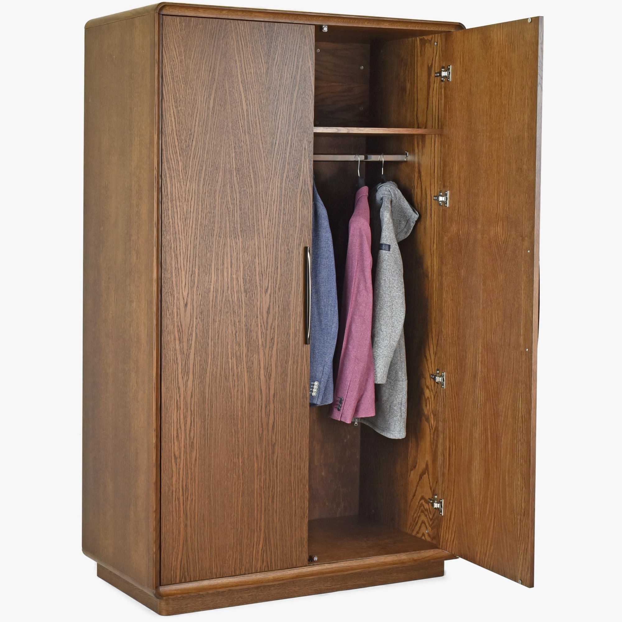 A szekrény minőségi anyagokból készült, és modern dizájnnal rendelkezik kellemes dió színben. Rá nézni is öröm lesz, bárhova is helyezi el otthonában. A szekrény egy polccal és akasztórúddal van ellátva, így bőséges helyet kínál ruhái rendszerezéséhez. Legyen szó ingekről, nadrágokról vagy ruhákról, mindennek meglesz a maga helye, ráadásul könnyen hozzáférhető lesz. A szekrényt lapraszerelten szállítjuk, vagyis könnyedén összeszerelheti és oda teheti, ahová szeretné. Tölgy furnérral és tömör tölgyfából készült, ami hosszú élettartamot és ellenállóságot biztosít a sérülésekkel szemben. Ez a szekrény minőségi befektetés, amit hosszú évekig értékelni fog.