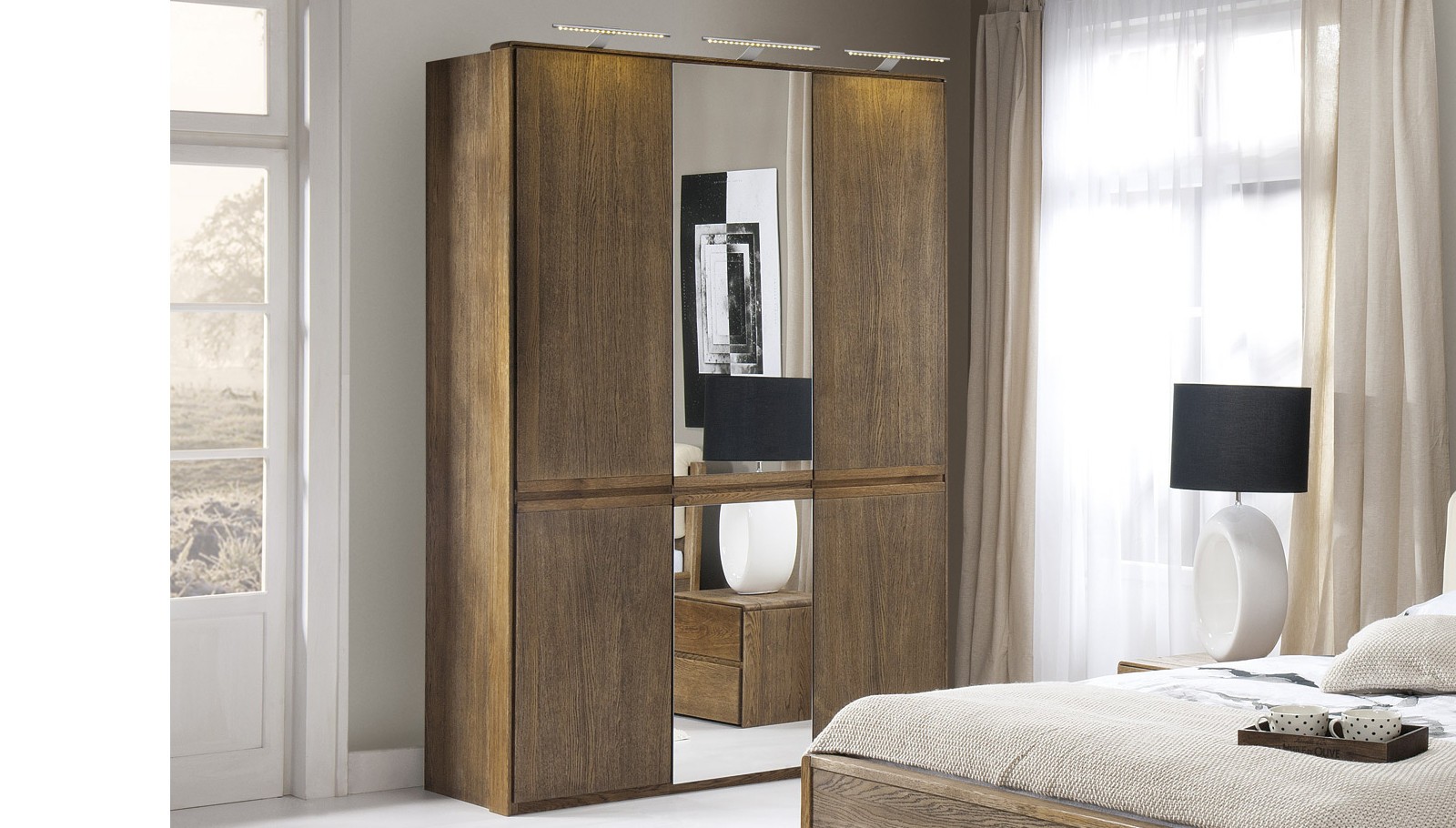 A gardróbszekrény helye lehet mind a hálószobában, mind a nappaliban vagy az előszobában. Belső tere felül ruhatartó rúddal és két beépített polccal oszlik meg. A szekrény belső tagolása így lehetővé teszi egyszerre a vállfákra akasztást és a hajtogatott ruhák elhelyezését. A gardróbszekrény természetes tölgyfurnérból készült. Elérhető világosabb, természetes, környezetbarát változatban olajozott tölgy, vagy pedig különleges felületkezelésben égetett tölgy.