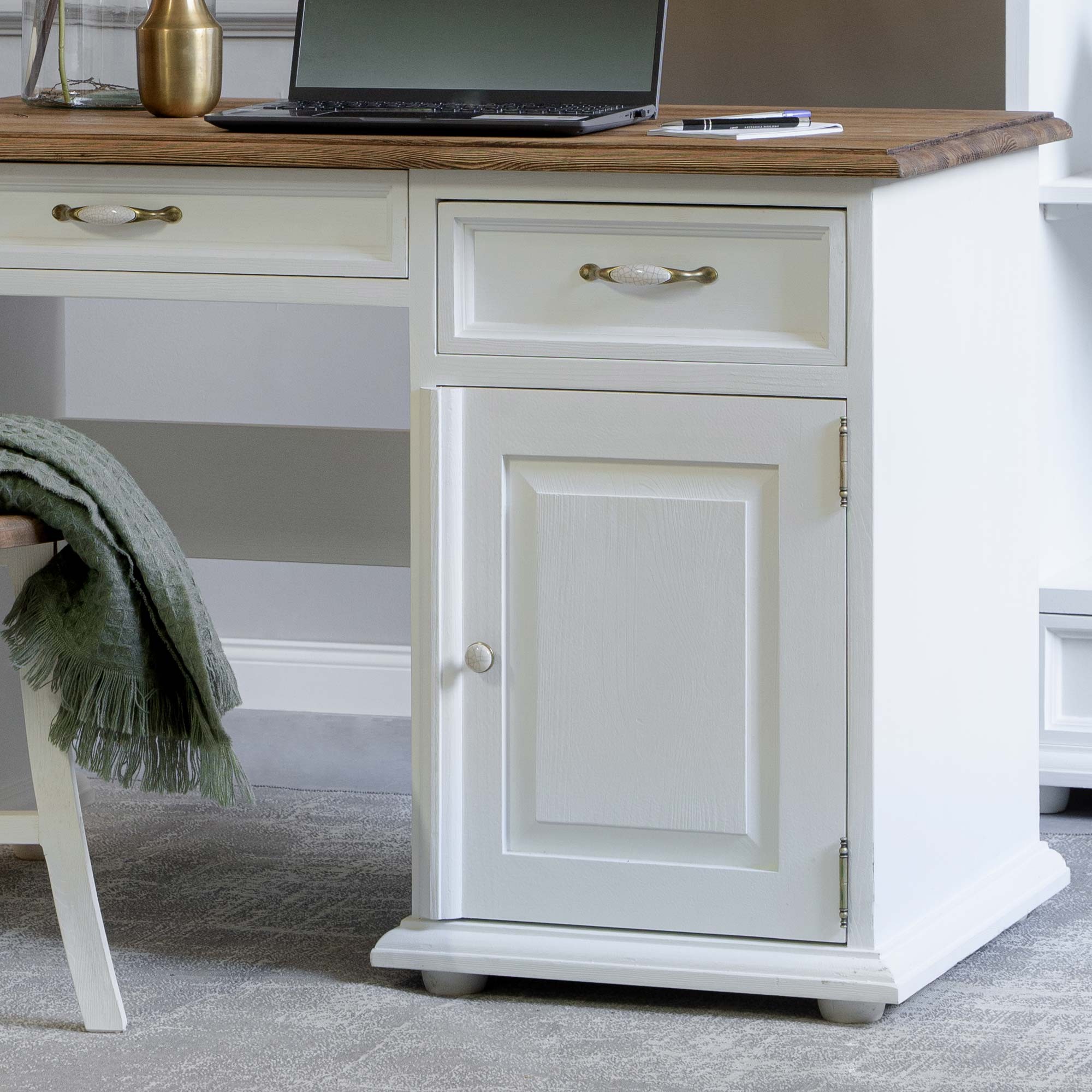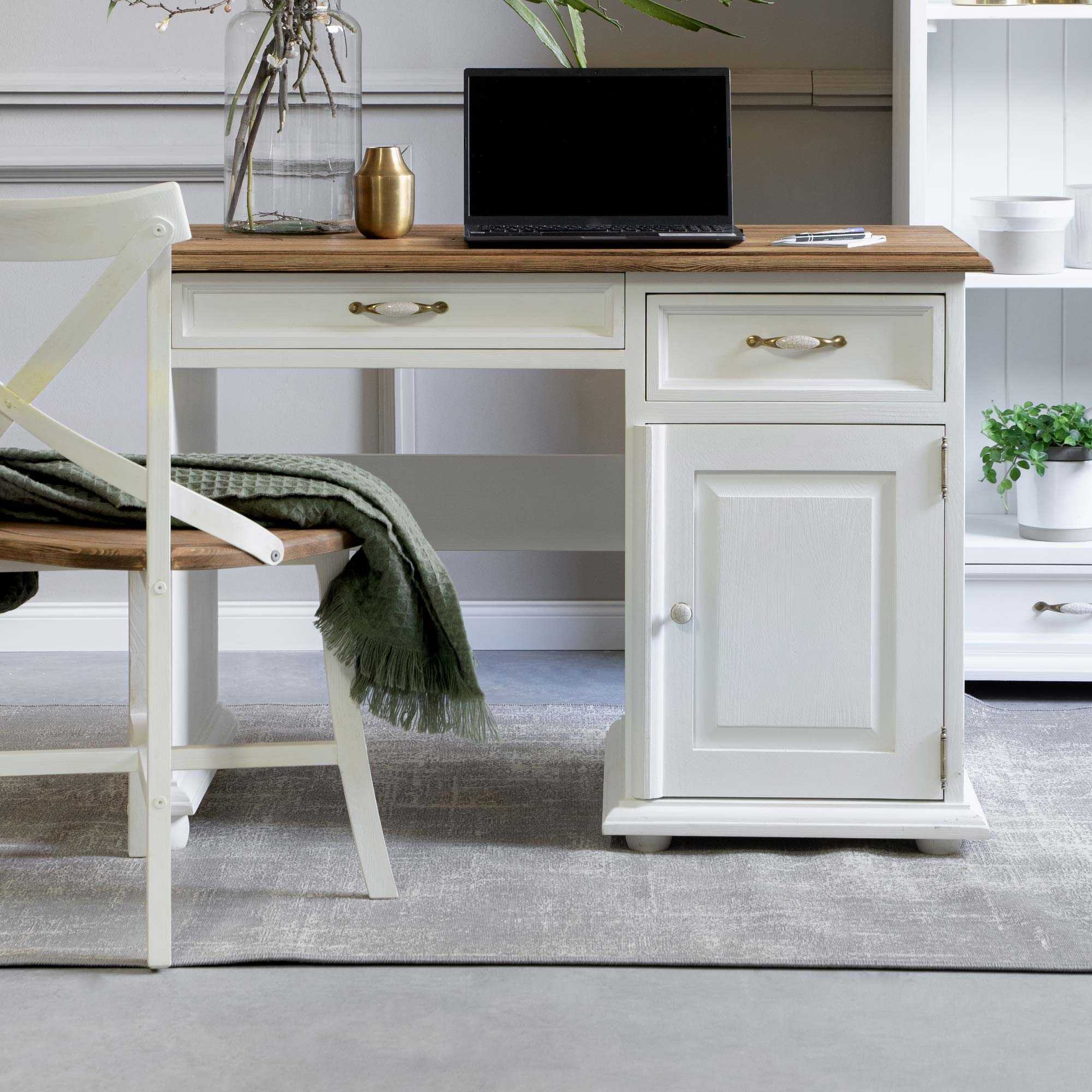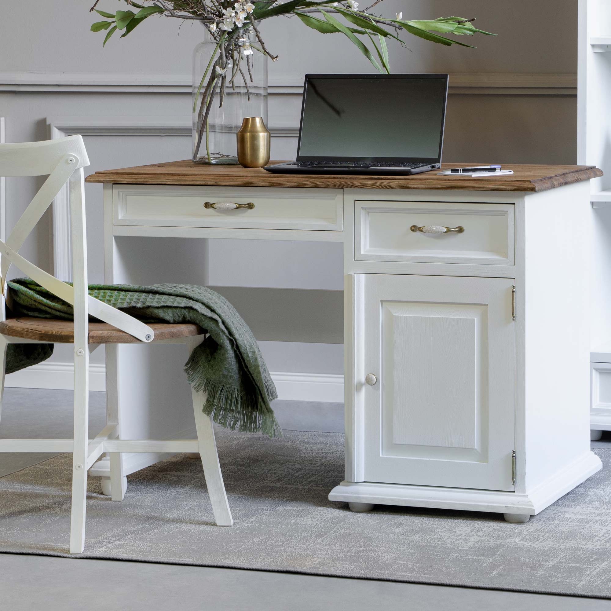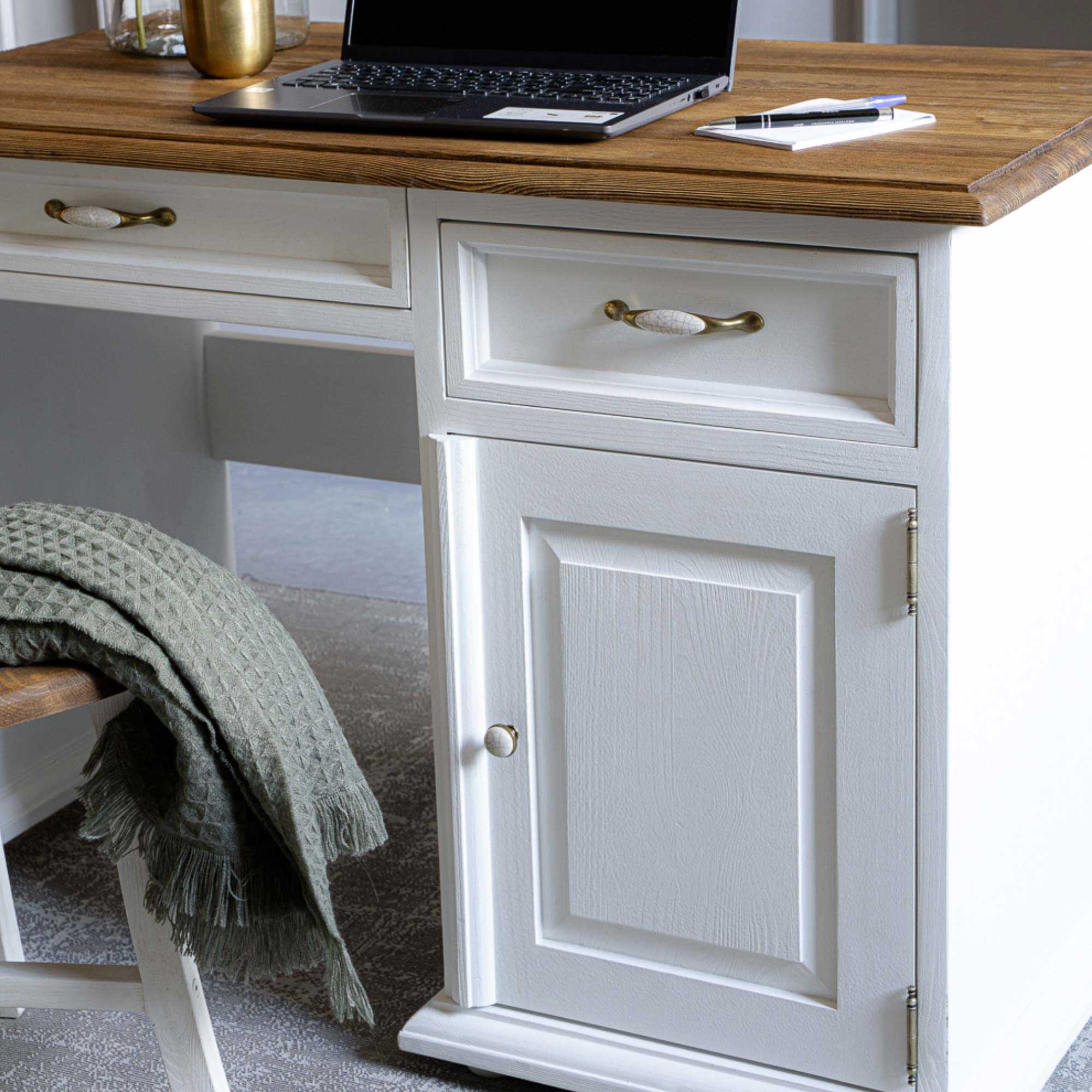 Tömörfa Provence stílusú PC íróasztal 100x78x60 cm világos színben