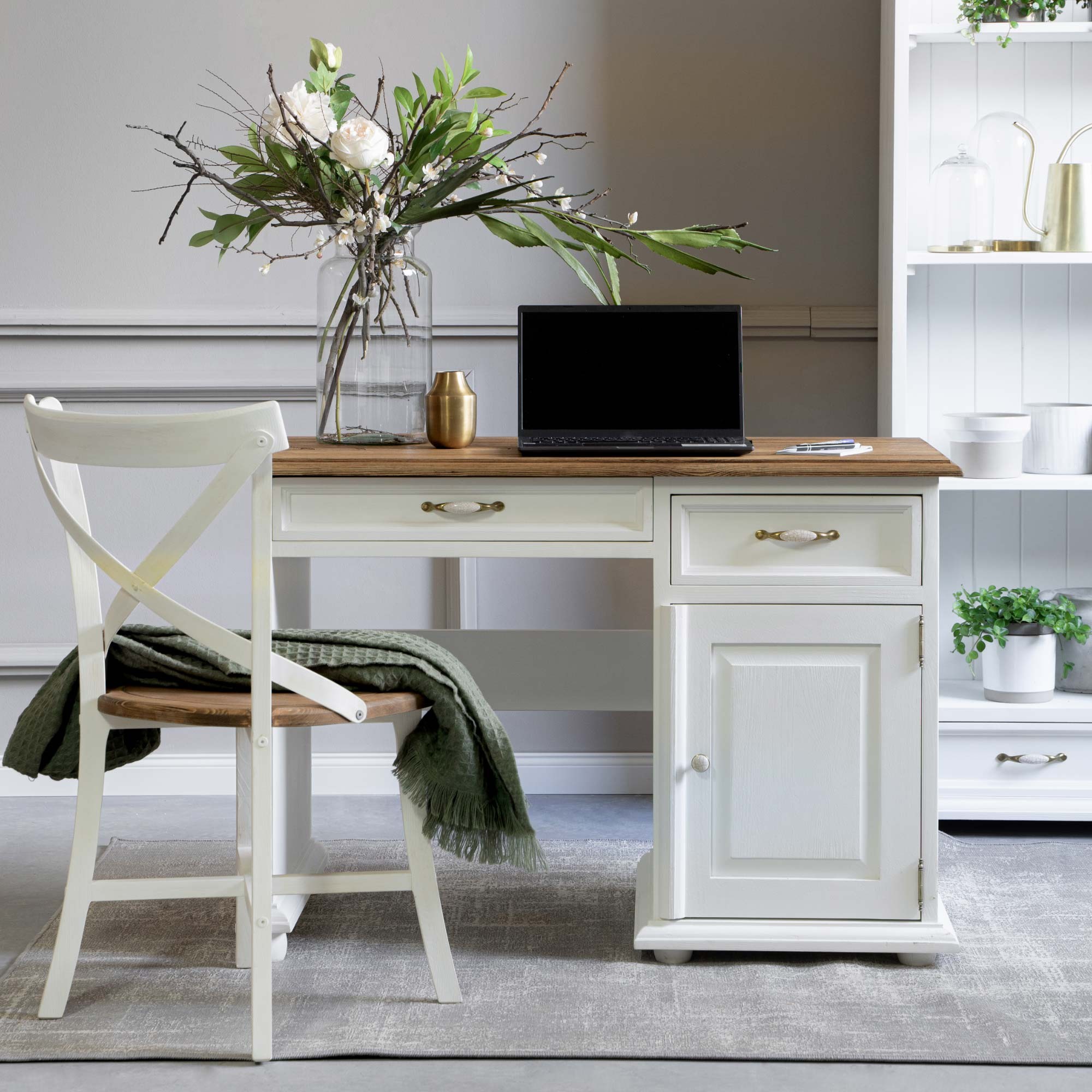 Gyönyörű tömör íróasztal Provence stílusban elegáns környezetet varázsol az irodájába, ahol mindig öröm lesz dolgozni! Használja ki a lehetőséget, és egészítse ki az íróasztalt a Provence kollekció további elemeivel, így a számítógépes munka, a dokumentumok rendezése vagy a mindennapi háztartási adminisztráció igazi örömmé válik! Vegye körül magát stílusos és egyben minőségi bútorokkal, a francia vidéki lakberendezés szellemében! Egy könyvszekrény megvásárlásával rengeteg helyet nyer könyvek és irattartók számára. Elengedhetetlen kiegészítő természetesen a provanszi szék