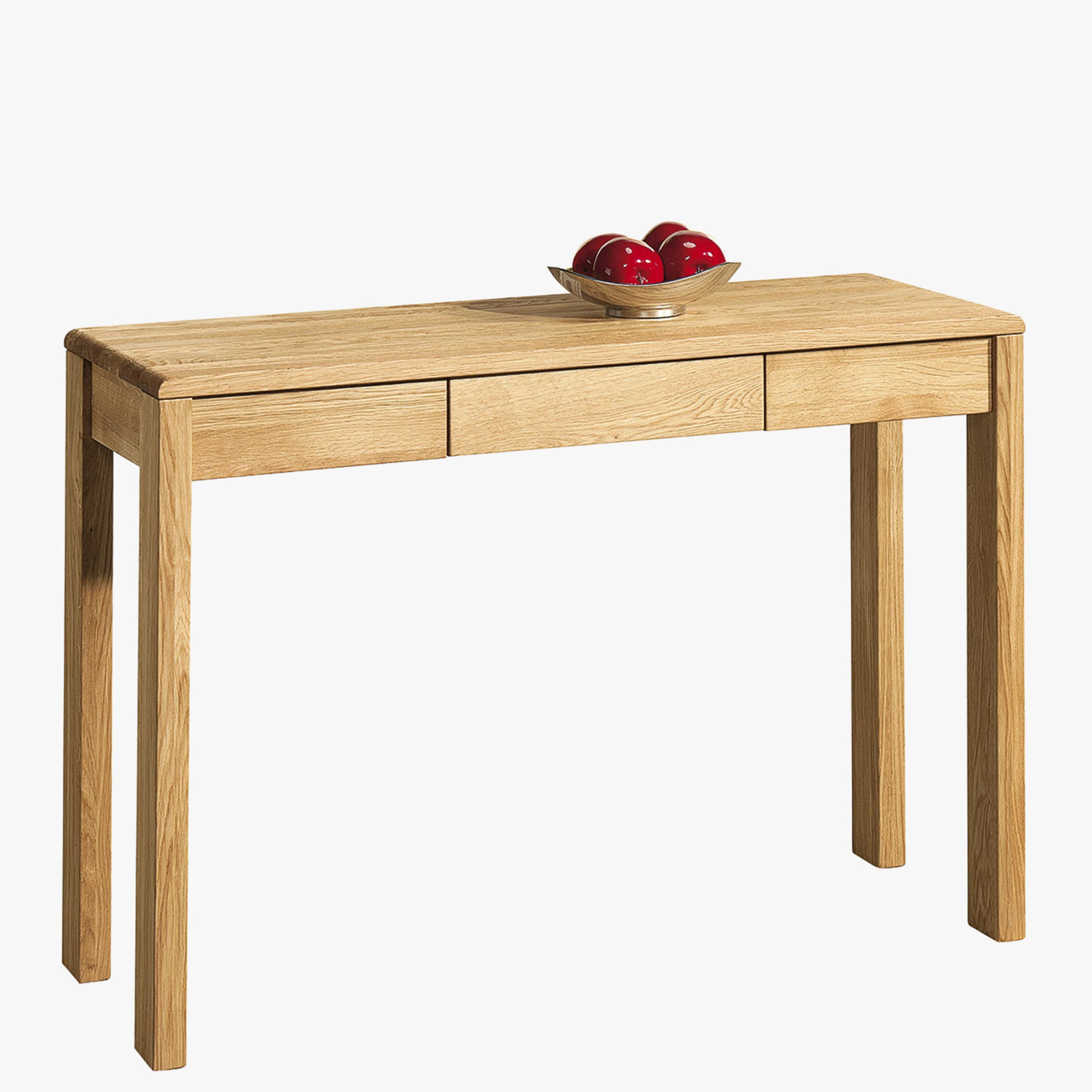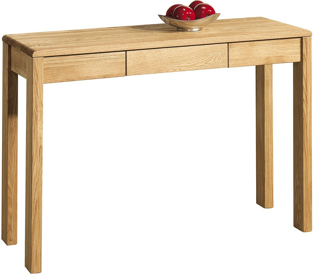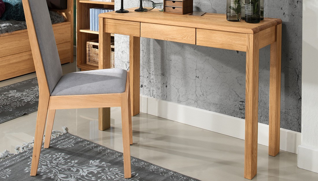 Luxus PC íróasztal, amely tömör vad tölgyből készült, remek segítőtárs lesz csodás formatervezéssel és első osztályú kidolgozással. Az elegáns munkapult ideális méretekkel rendelkezik laptop vagy számítógép elhelyezéséhez. A munkafelület 119 x 45 cm méretben nem fog túl sok helyet elfoglalni a lakásban, sehol sem fog zavarni, ugyanakkor elegendő helyet biztosít a számítógépes munkához. Használható továbbá kis tárolóasztalként a előszobában vagy fésülködőasztalként a hálószobában. Elég, ha kiegészíti egy tükörrel vagy kisebb tükröcskével, és a felesége el lesz ragadtatva!