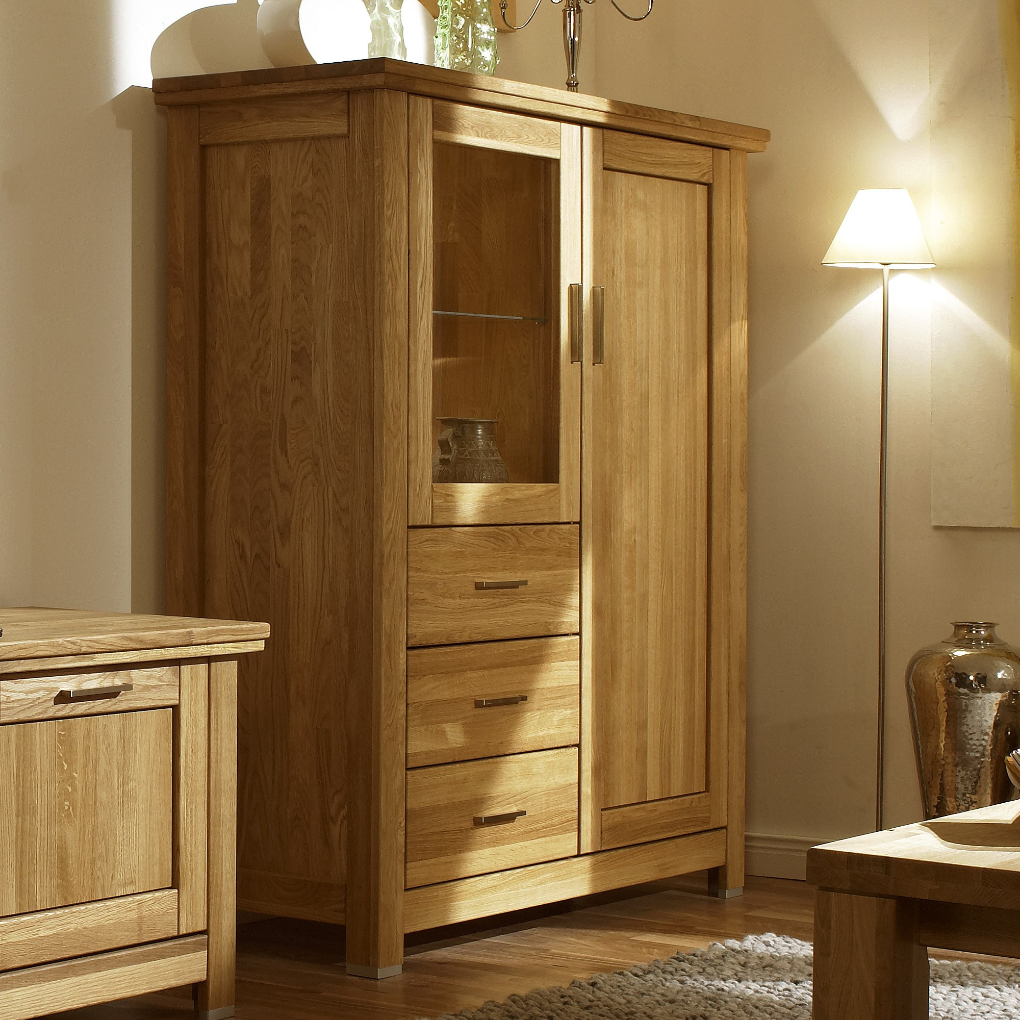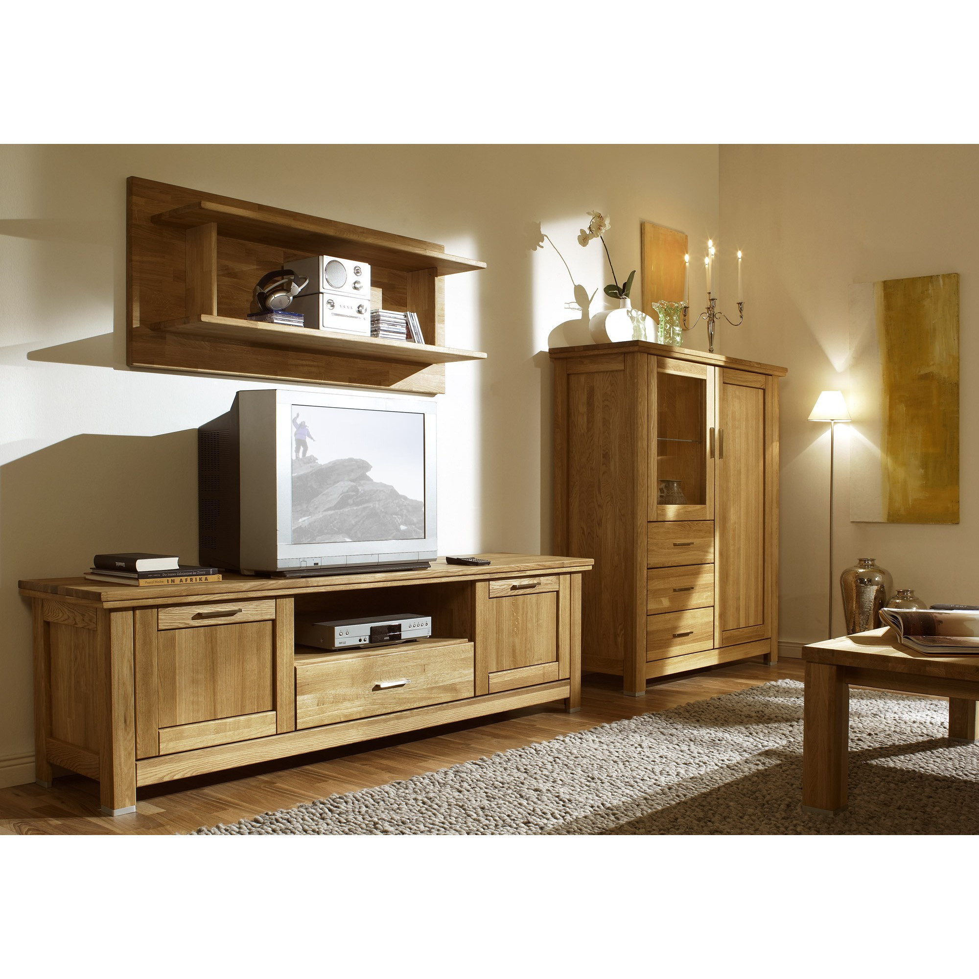 Tömör tölgyfa hálószoba bútor szett TV komóddal és vitrin szekrénnyel