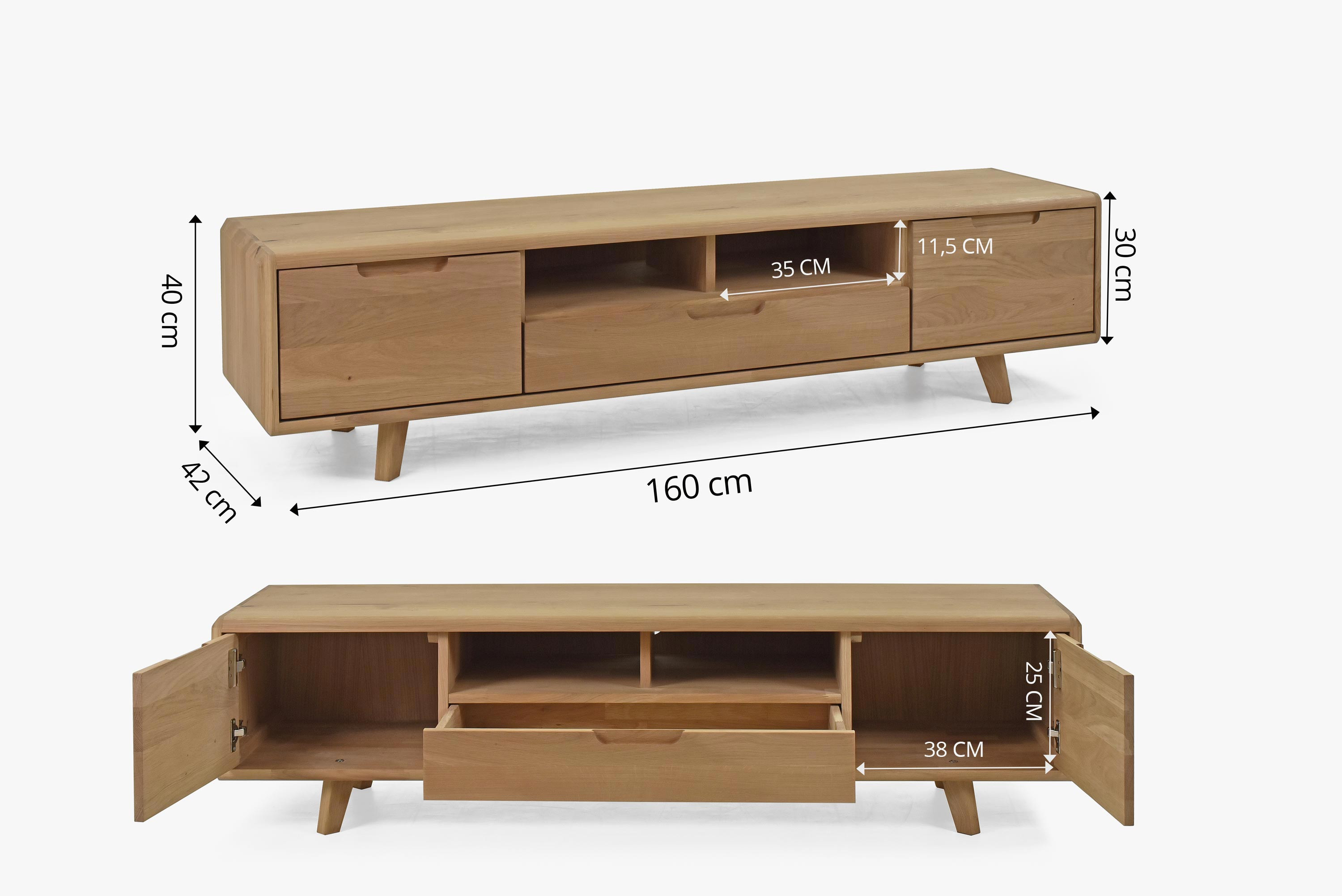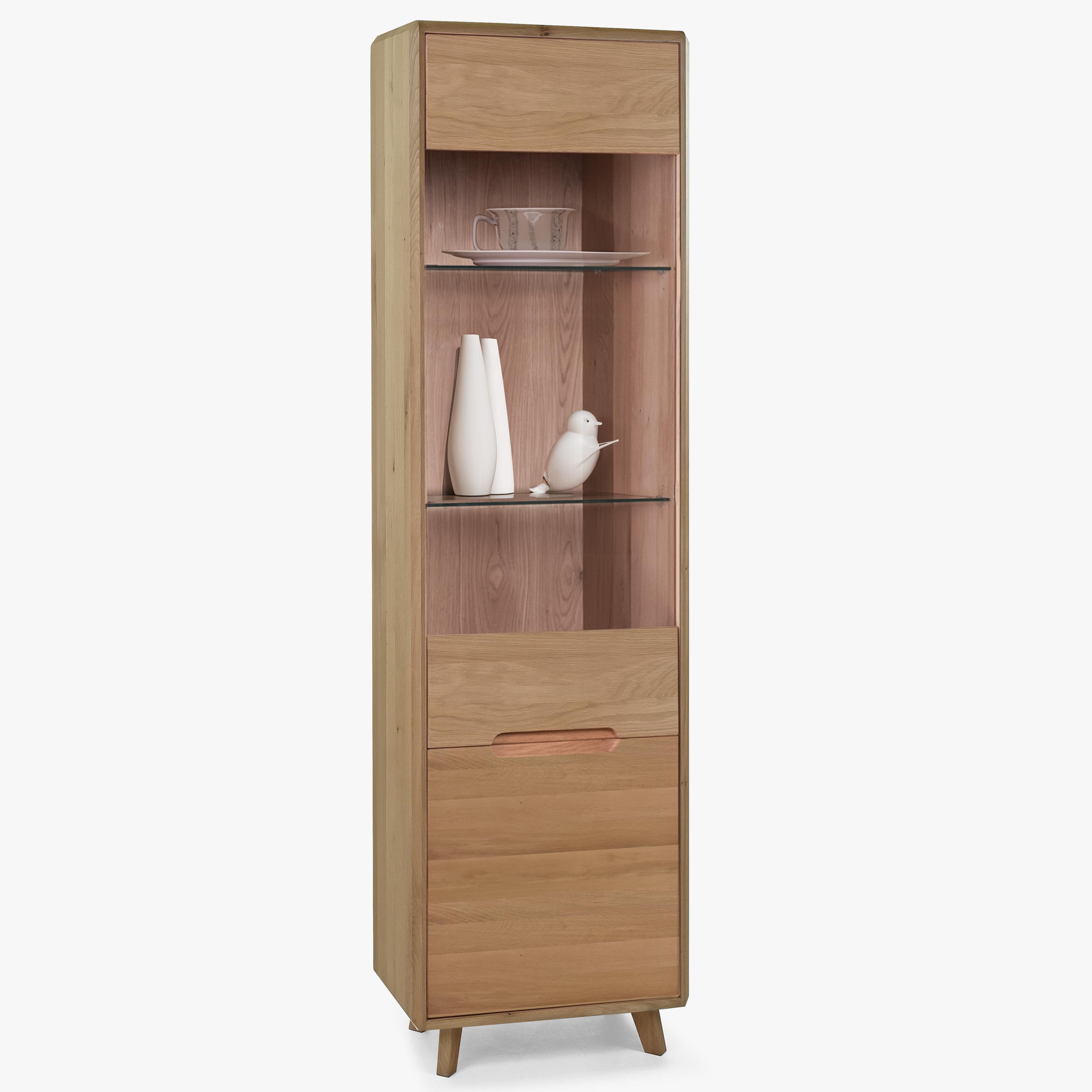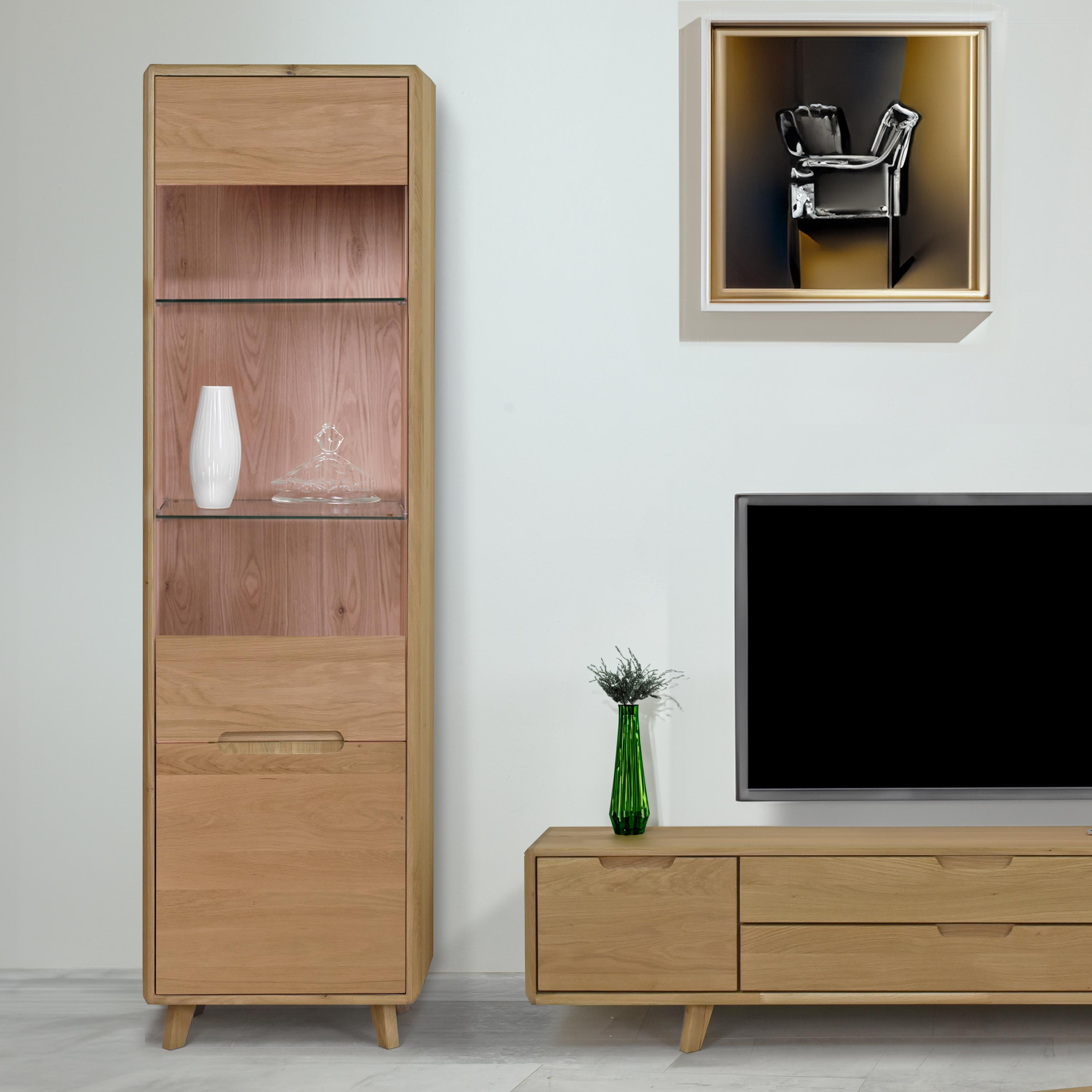 A modern otthonok közepén, ahol az elegancia, a kényelem és a stílus dominál, megtalálható tömör tölgy nappali szekrénysorunk bianco tölgy színben. Ez a kivételes bútordarab, 100% tömörfából készült, tökéletes választás azok számára, akik minőséget, tartósságot és modern megjelenést keresnek nappalijukhoz. Skandináv stílusának és tiszta esztétikájának köszönhetően a tölgy nappali szekrénysor nemcsak praktikus tárolómegoldásokat kínál, hanem érdekes design elemet is otthonába.