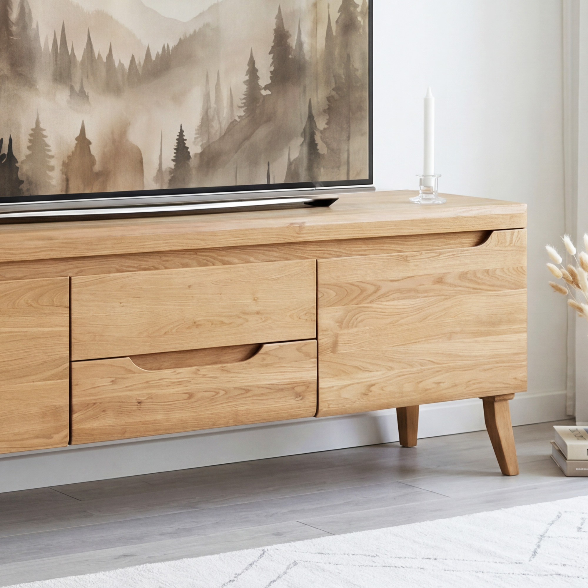 Skandináv tölgy nappali bútor lábakon álló, minimalista design