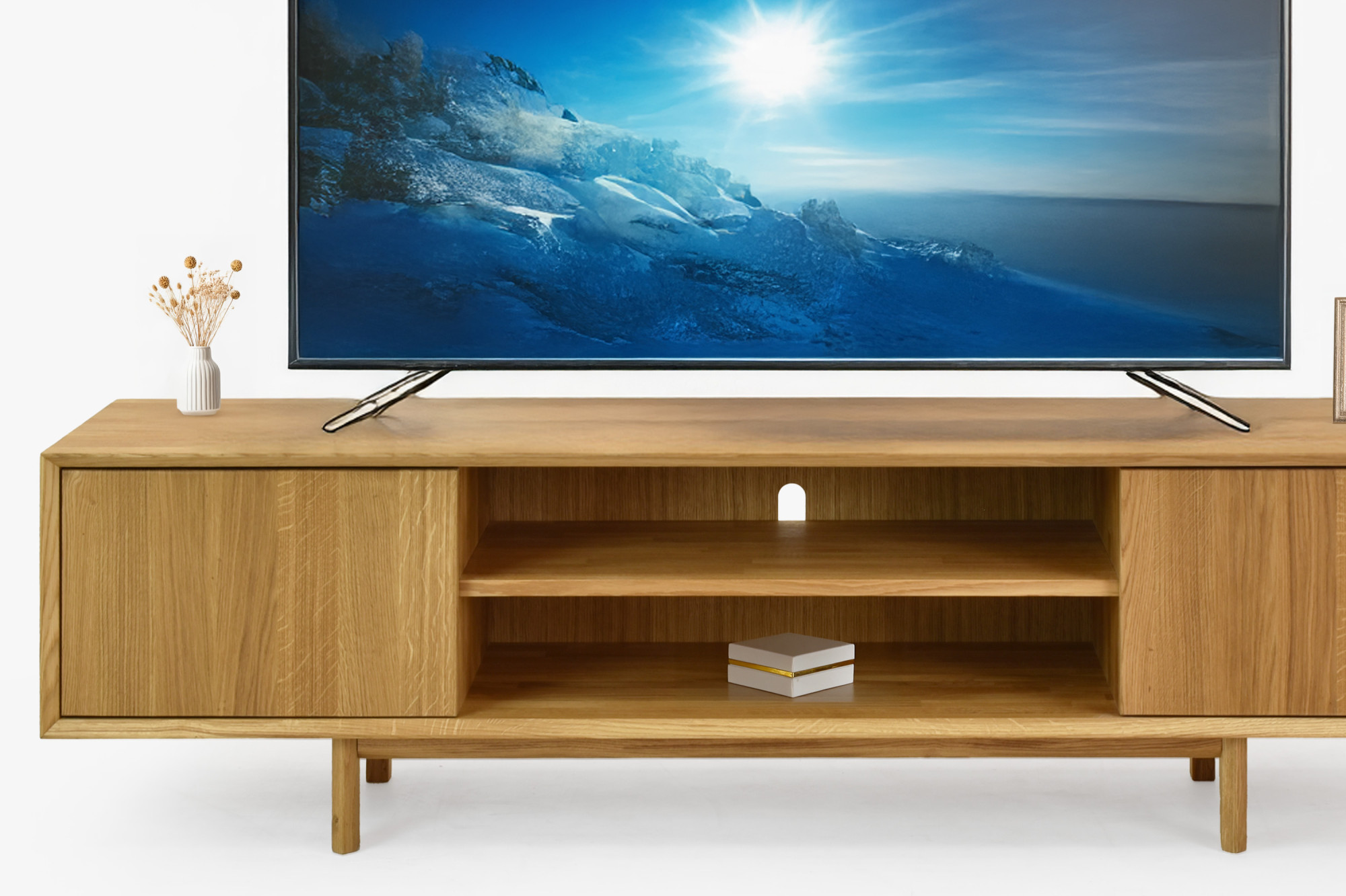 Tömör tölgyből készült nappali szekrénysor természetes szépséget, funkcionalitást és több évtizedes minőséget hoz otthonába. A tömör tölgy olajozott felülettel, átgondolt tárolóbeosztás és kényelmes tip-on nyitás biztosítja a kényelmet a mindennapi használat során. Az FSC révén környezettudatos megoldást választ és egységes stílust biztosít az egész nappalinak.