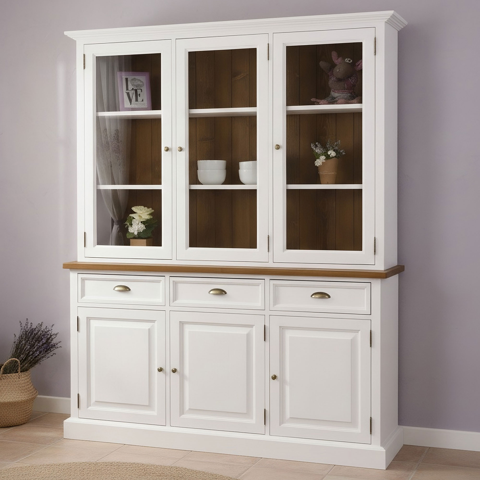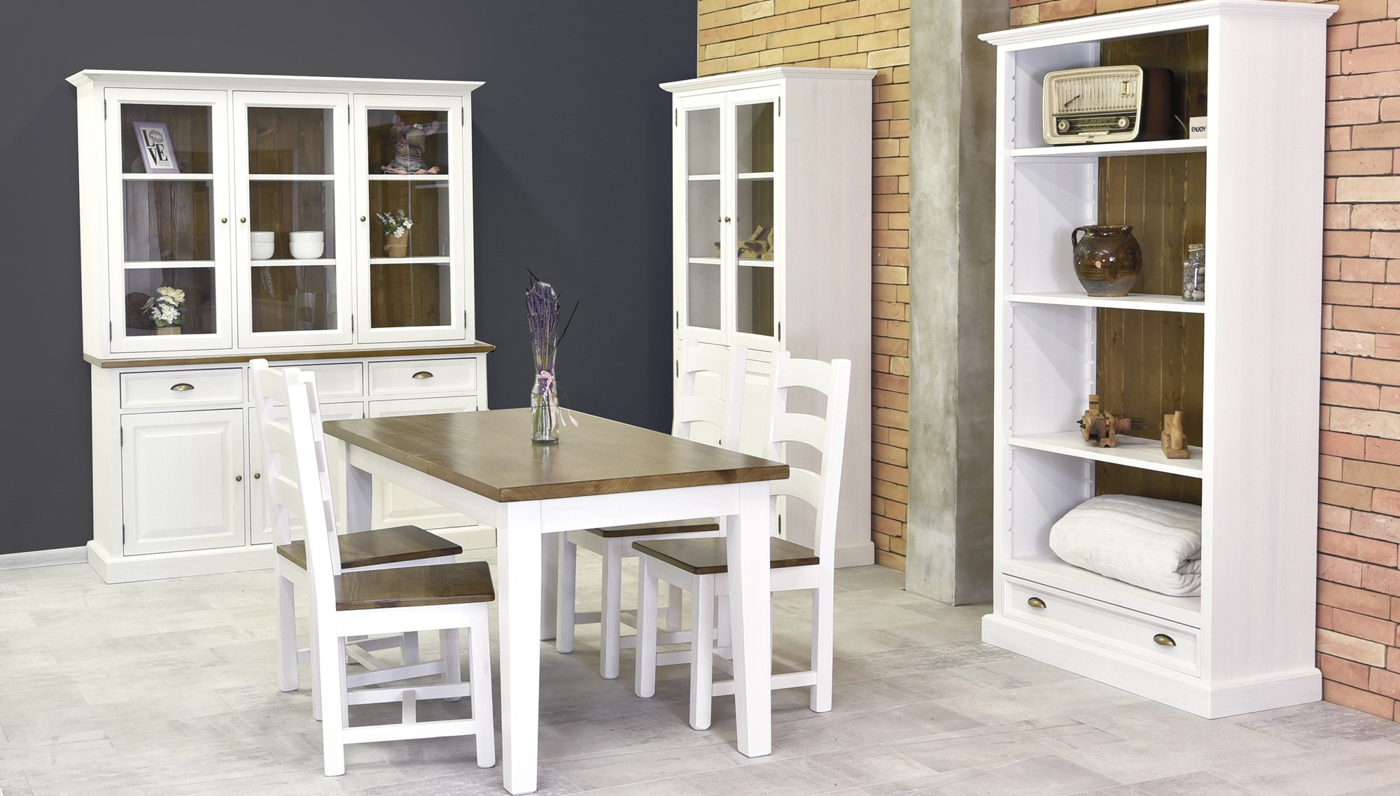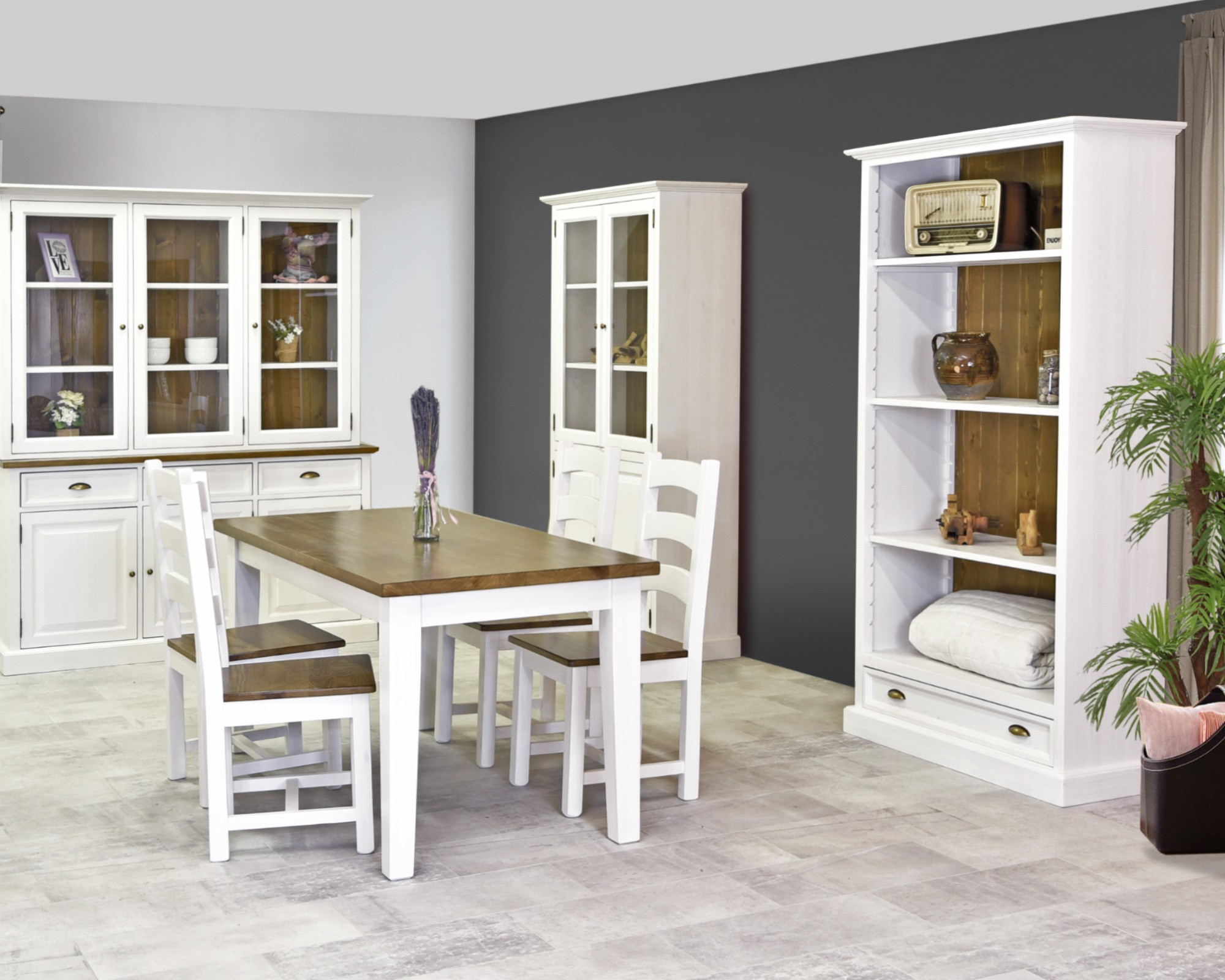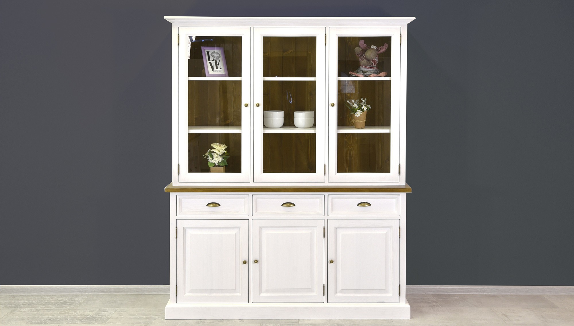 A Provence stílusú masszív fából készült sekretár elegáns és praktikus bútordarab, amely otthonába csempészi a francia vidéki hangulatot. 100% tömör fenyőből készül, amely hosszú élettartamot, stabilitást és tartósságot biztosít. A sekretár két részből áll – alsó komód és felső vitrinrész, ami bőséges tároló- és lerakóhelyet biztosít. A bútor fehér részei környezetbarát festékkel vannak kezelve, amely alatt finoman áttűnik a fa természetes erezete, míg a barna felületek minőségi lakkal vannak védve. Ez a kombináció kellemes kontrasztot teremt és jellegzetes rusztikus megjelenést kölcsönöz a bútornak.