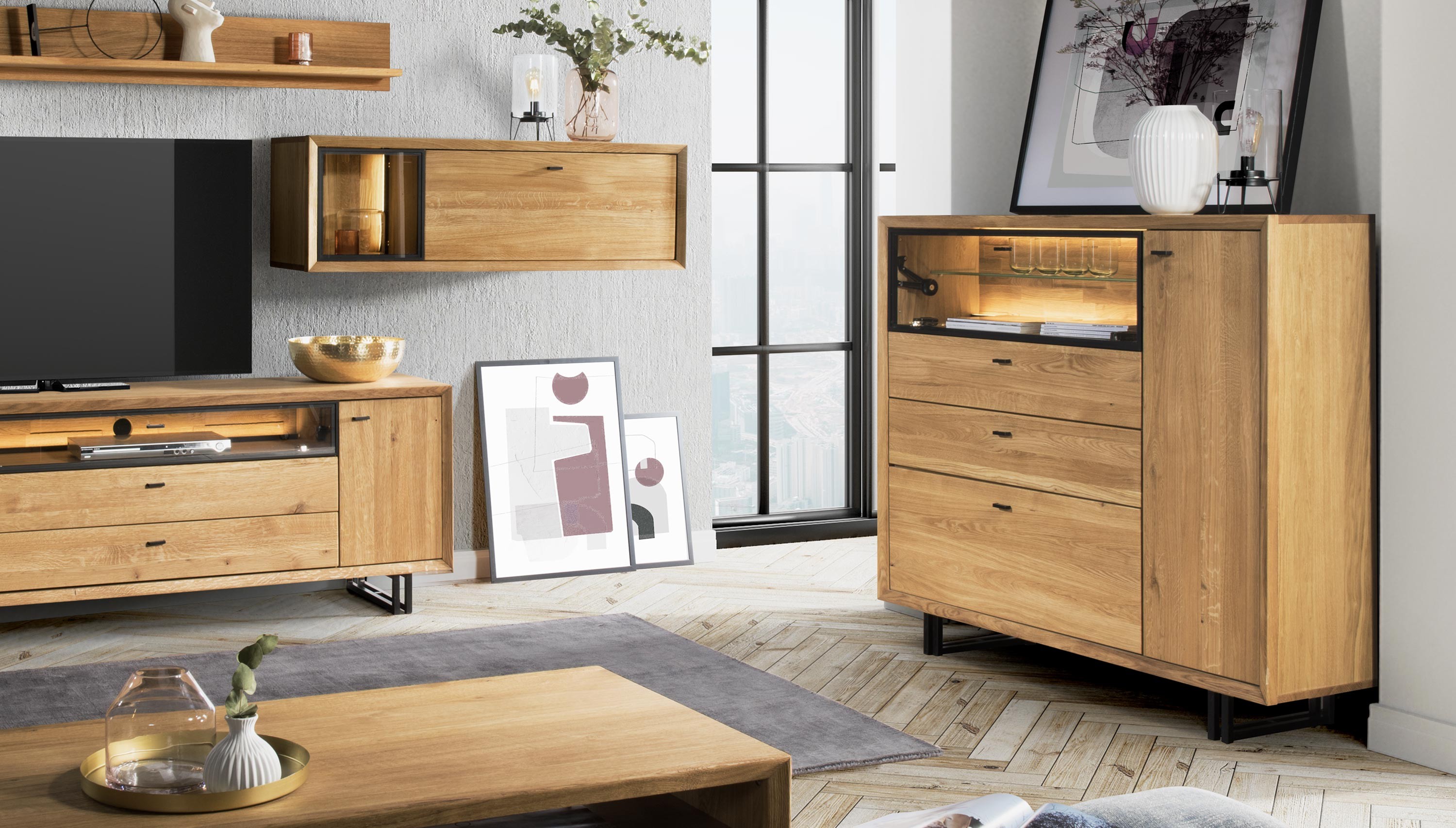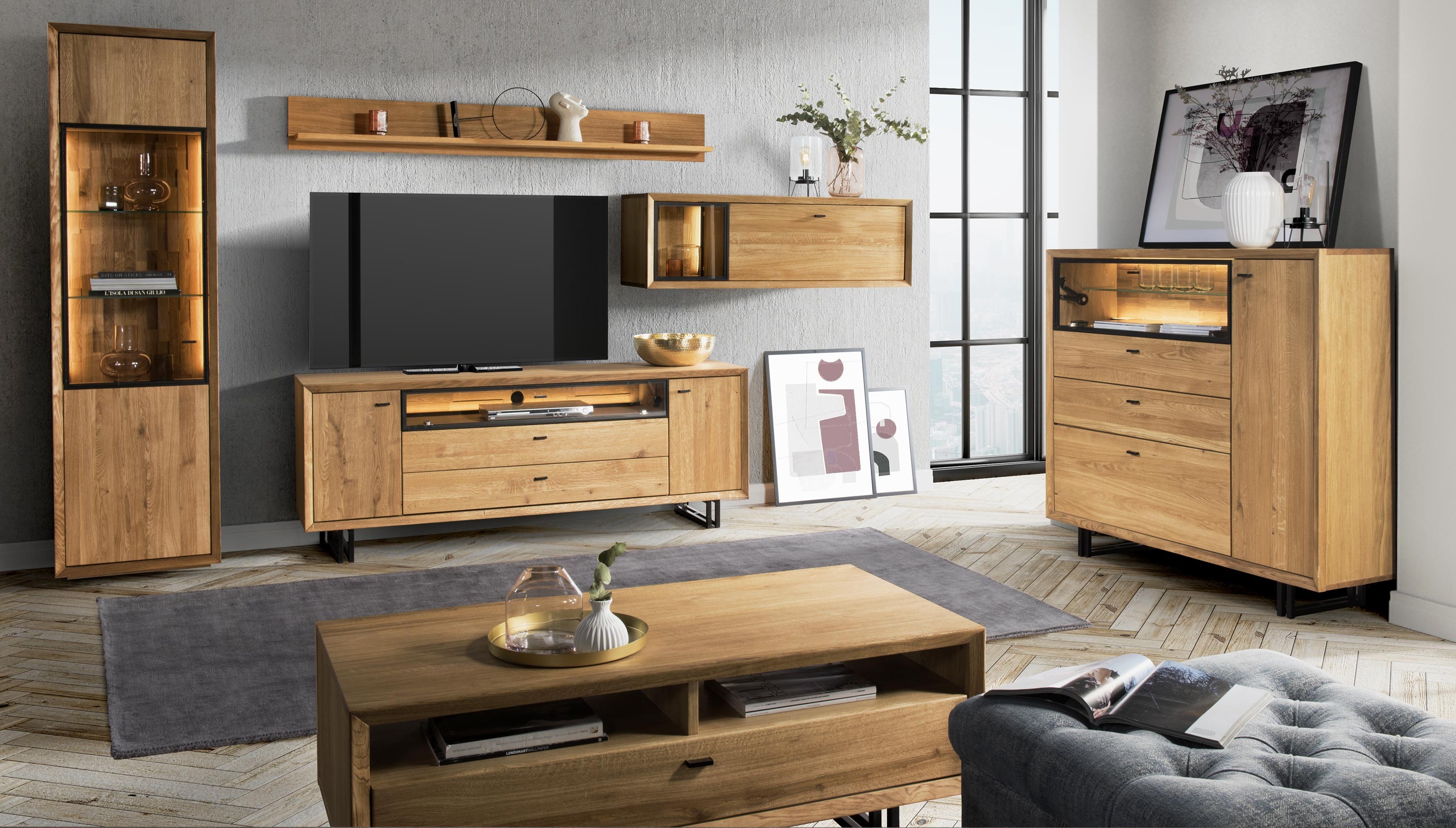 Valóban exkluzív és dizájnos – ezek a fő jelzők a Vilo nevű, 2020-as kollekció tölgybútorára. A Vilo tölgybútor elsősorban a nappaliba készült; a kollekcióban megtalálhatók TV-komódok, vitrinek, polcok és igazán stílusos dohányzóasztalok. Az ajtók és fiókok csendes záródásúak (soft-close).
