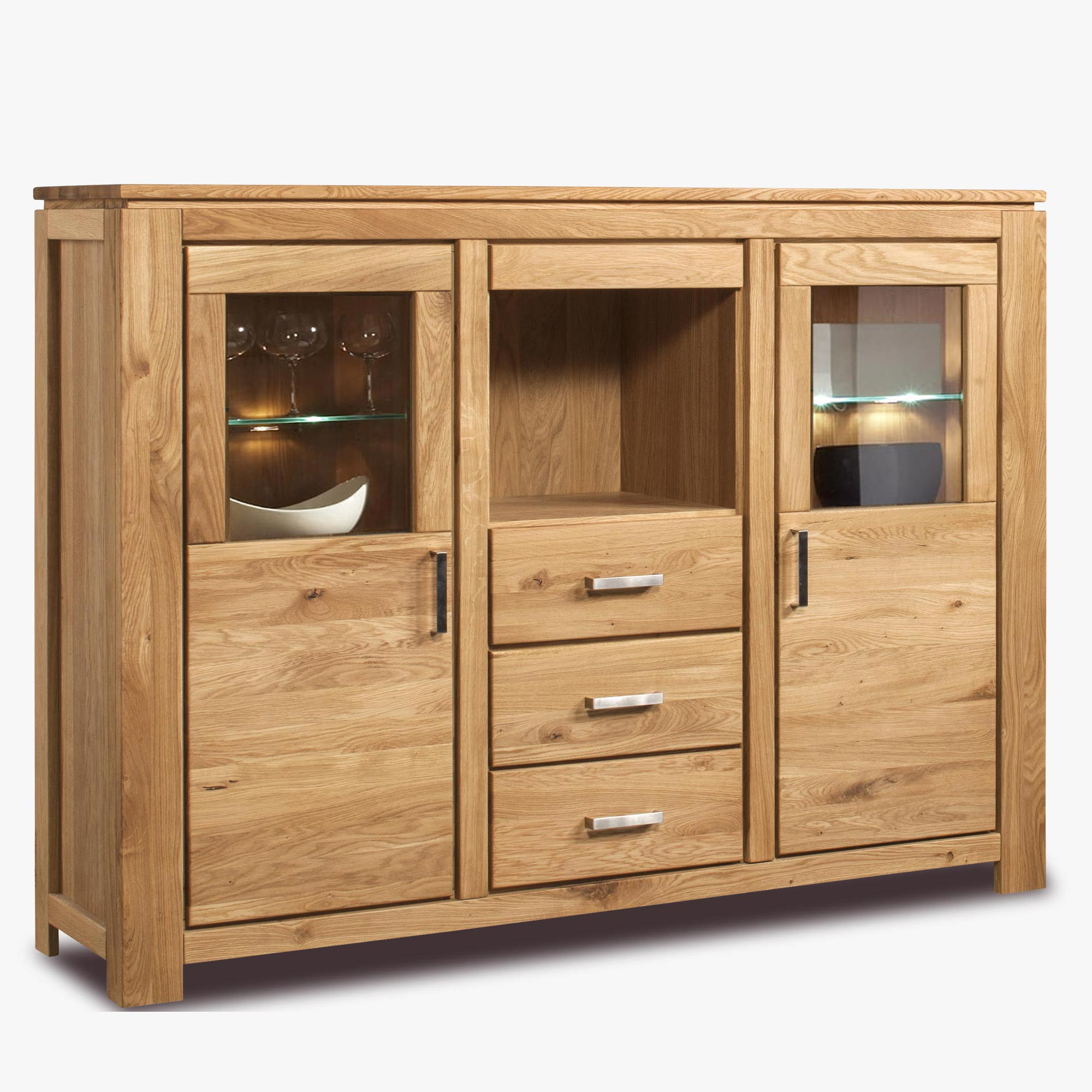 Tölgyfa kredenc 47-es típus, 2 üvegajtós, természetes tölgy furnér
