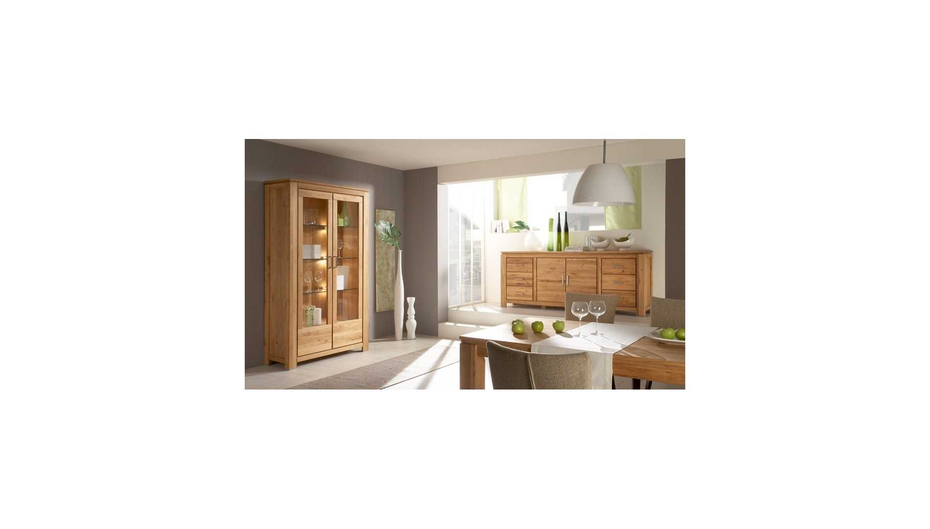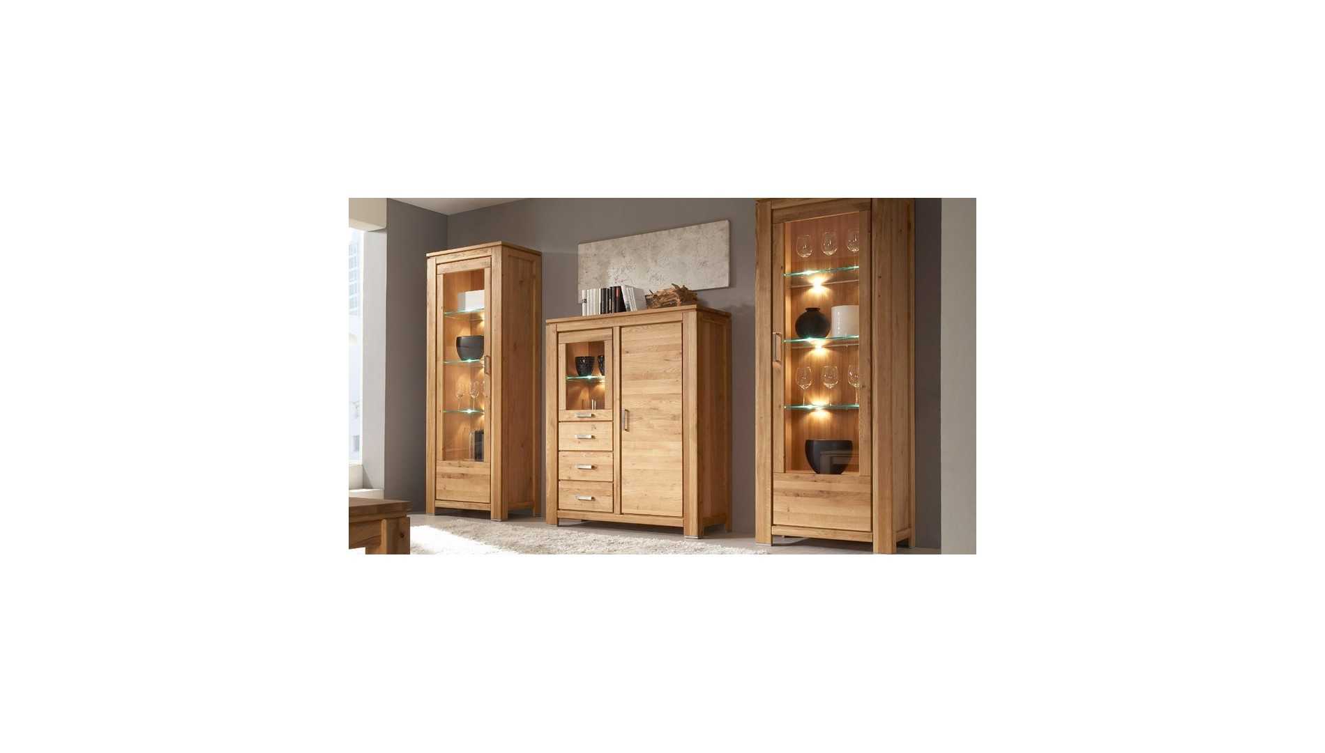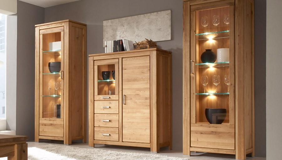 A New line sorozatból származó tölgy tálalószekrény gyönyörű bútordarab a nappaliba vagy az étkezőbe. A 47-es típusú tölgy vitrin már összeszerelve kerül szállításra, felár ellenében lehetőség van világítás vásárlására. Az elülső ajtók és a felső lap tömör tölgyfából készülnek, az oldalsó betétek és a belső polcok minőségi természetes tölgyfurnérból készülnek.