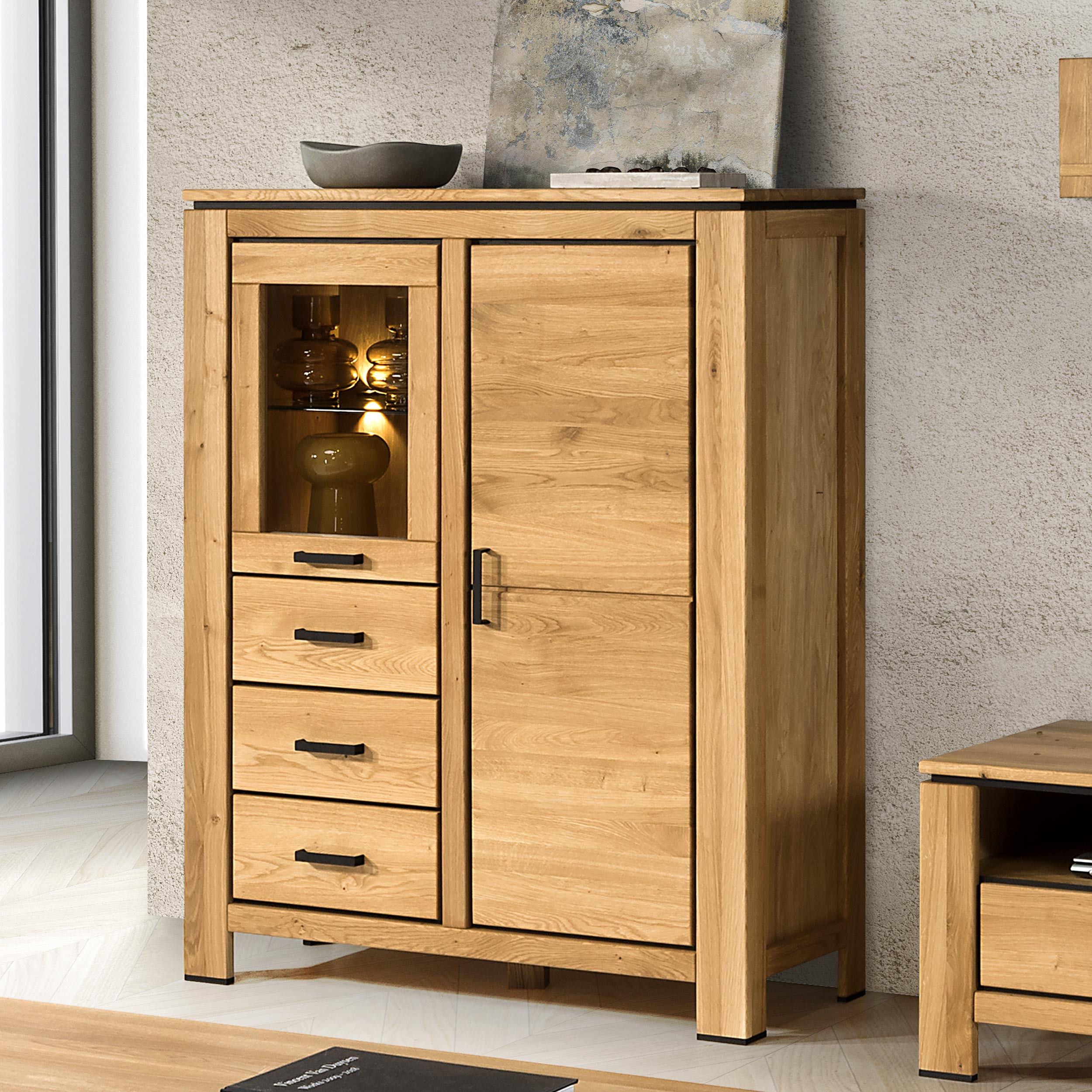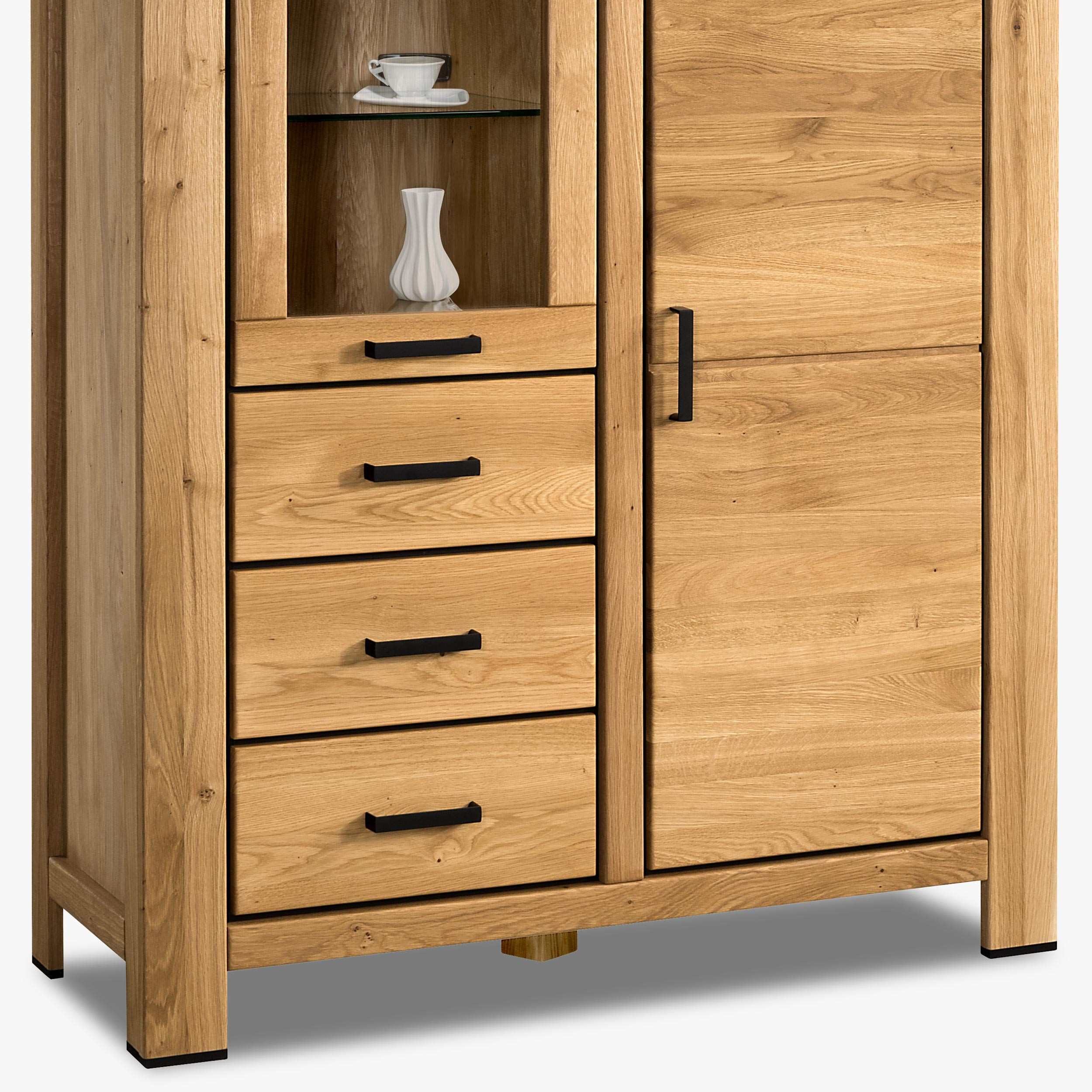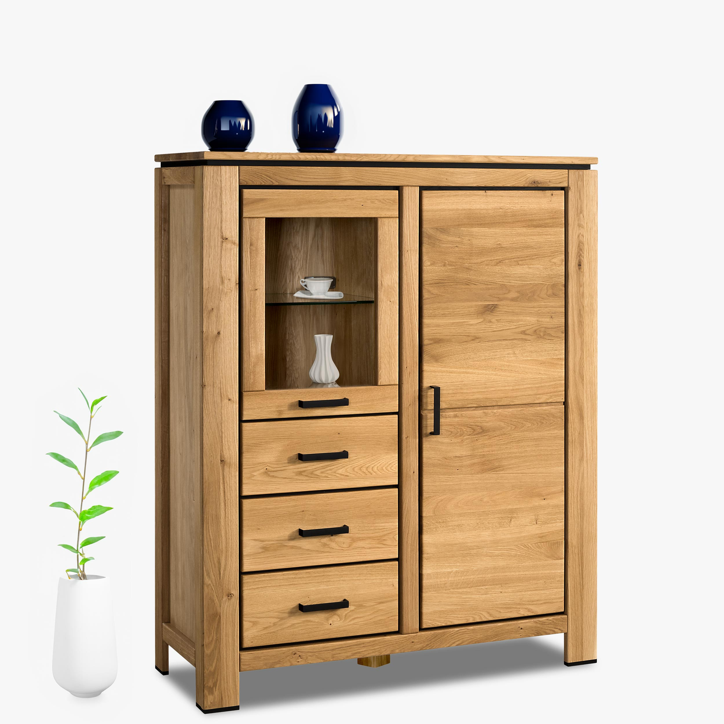 Tömör tölgyfa tálalószekrény New Line II, üvegajtós, 3 fiókos, natúr