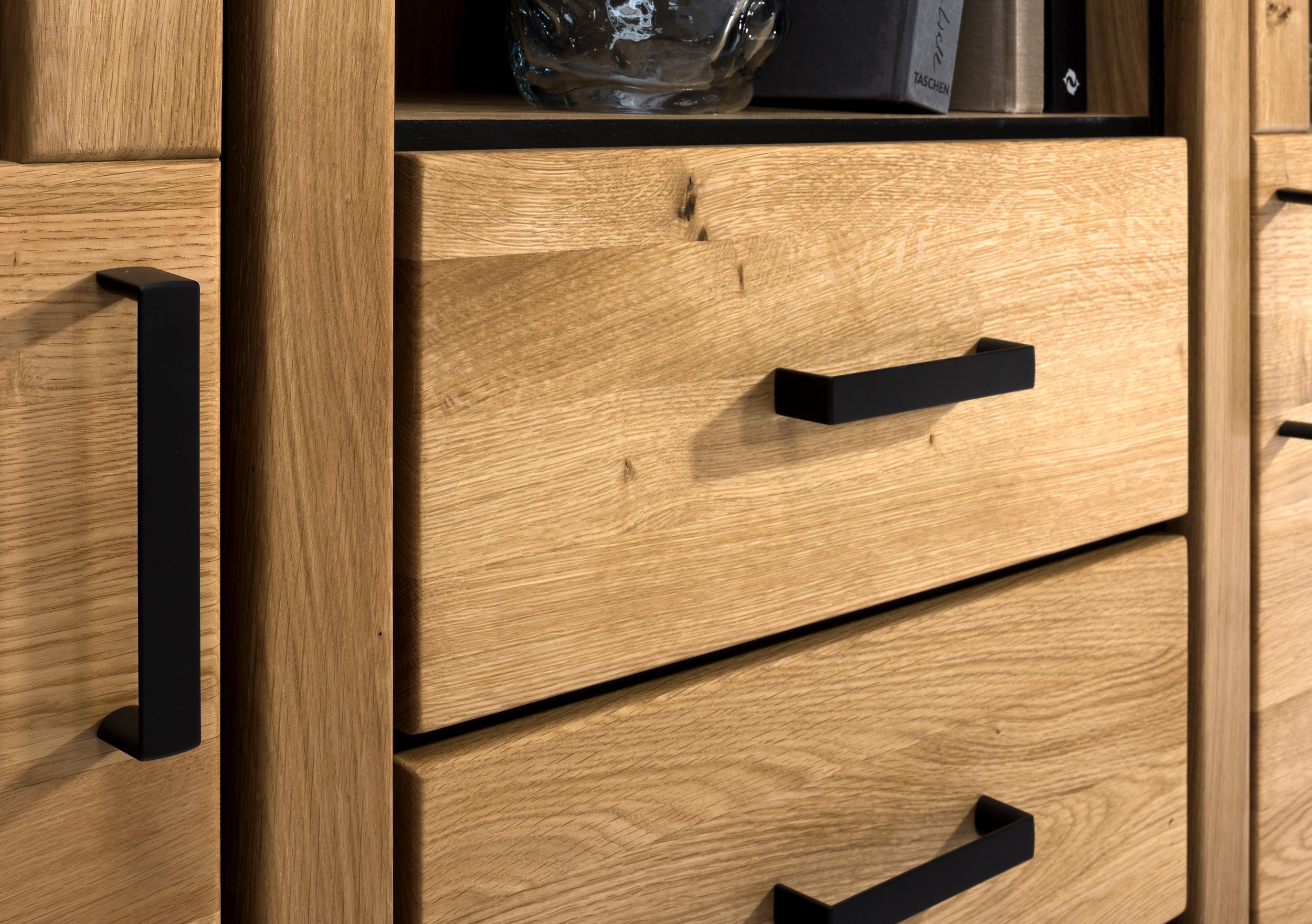 A New Line II kollekció bútorai a kézműves hagyomány megtestesítői, melyeket a modern trendek inspirálnak. Magas minőségű tölgyfából készülve minden darab egyedi, és a részletekre valamint a tartósságra tervezték. Az előlapok, a felső lap és a teherhordó váz tömör tölgyből készülnek, míg az oldalfalak betétei és a belső test természetes tölgy furnérral vannak befejezve, ami egységes megjelenést biztosít a természetes textúrával és színárnyalatokkal. Fektessen be a minőségbe, amely évekig kitart és az Ön belső tereinek meghatározó elemévé válik.