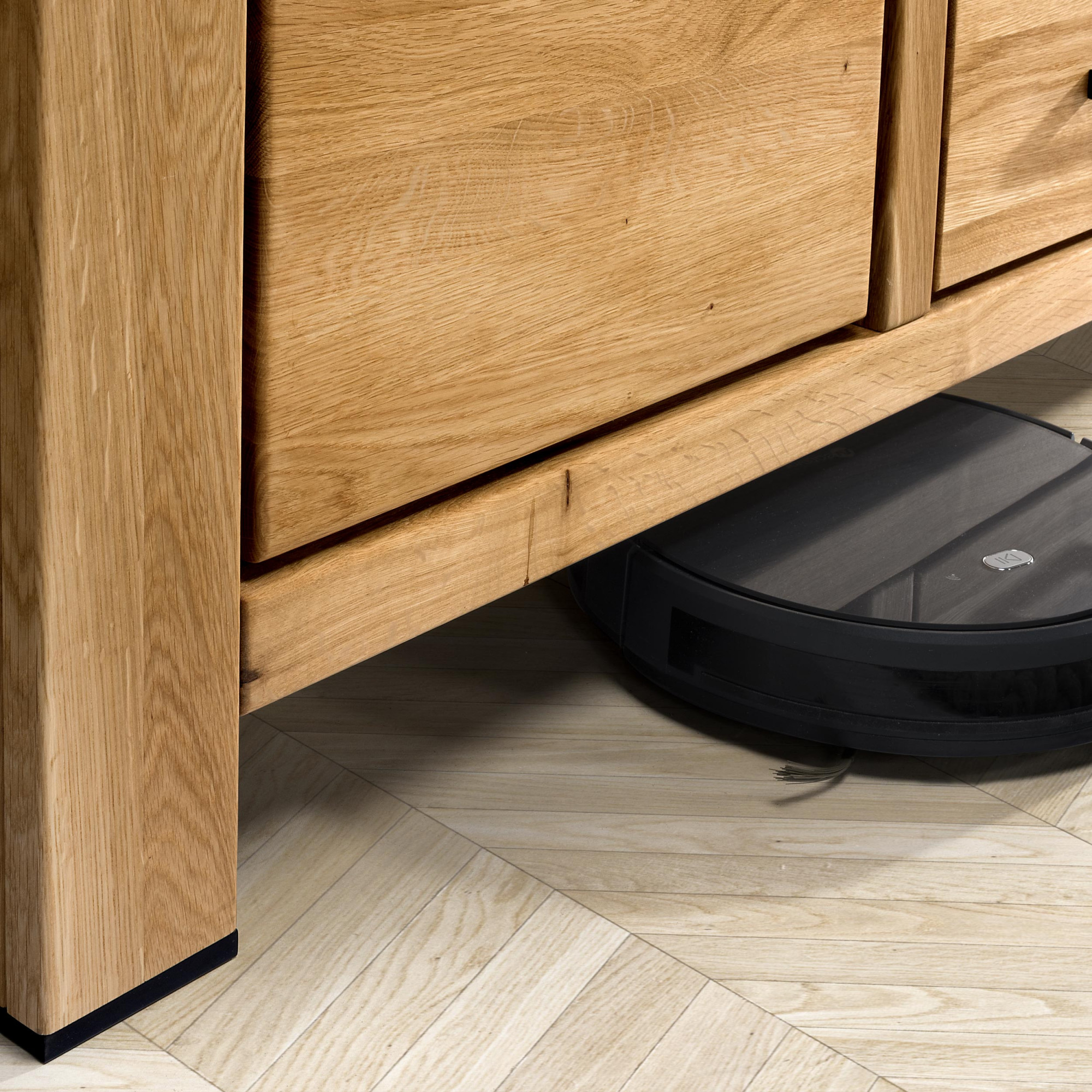 A felületkezelésnek köszönhetően, amelyet kiváló német LIVOS olajjal végeztek, a bútor jól védett a mindennapi kopással szemben és könnyen karbantartható, miközben megőrzi a tölgyfa természetes szépségét. A tálalószekrény összeszerelve kerül szállításra, ami jelentősen megkönnyíti a telepítést. A vásárlónak csak a fogantyúkat kell felszerelnie, amelyek további meghatározó elemek – ezek a fekete fém fogantyúk modern megjelenést kölcsönöznek a bútornak és markáns dizájnelemet jelentenek. Sokoldalúságának köszönhetően a tálalószekrény könnyen kombinálható más tölgybútorokkal kínálatunkból, így koherens és kényelmes teret hozhat létre.