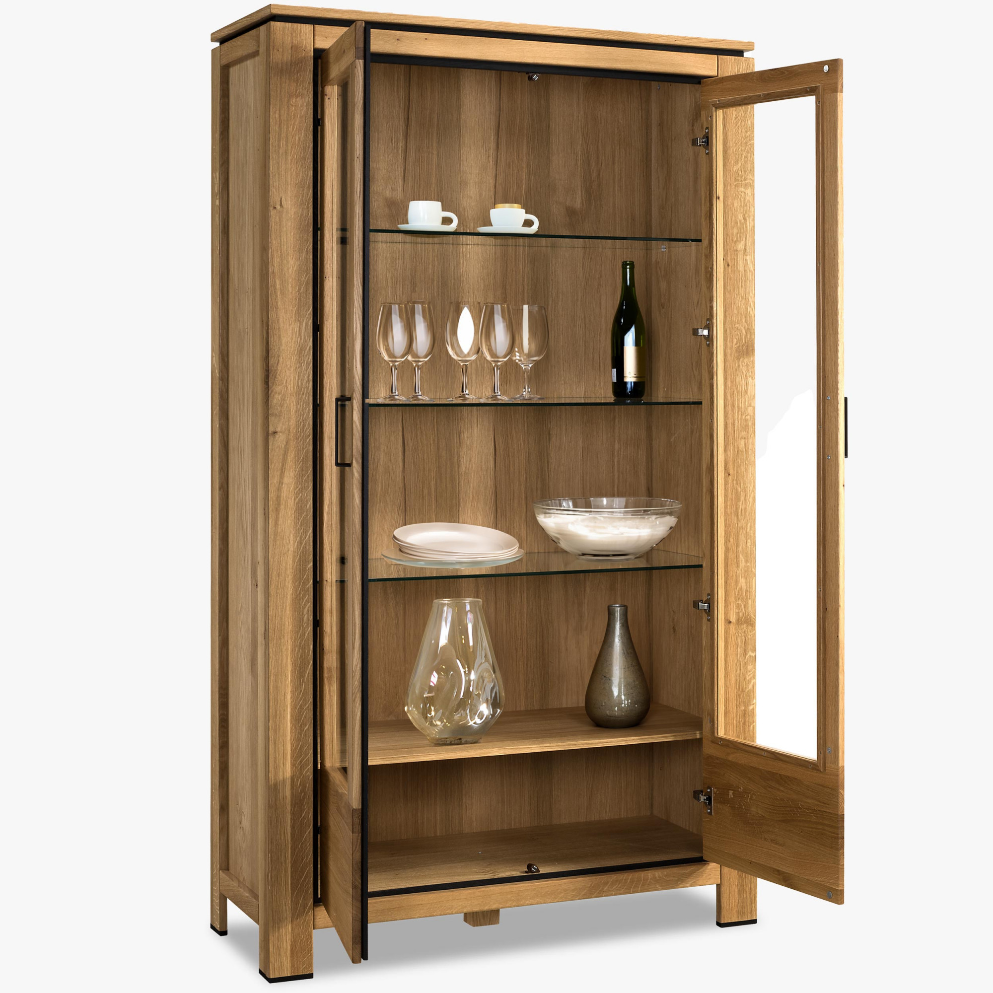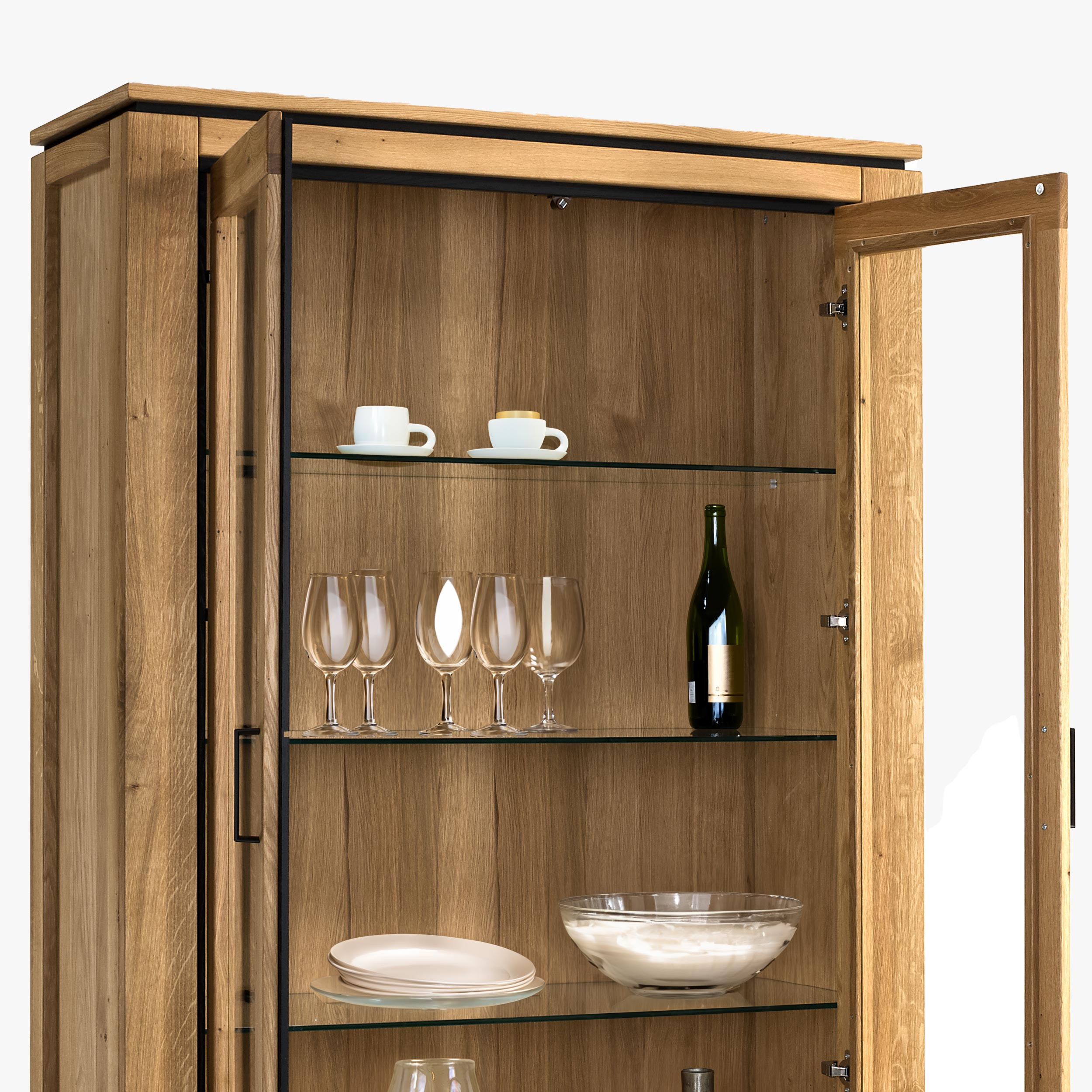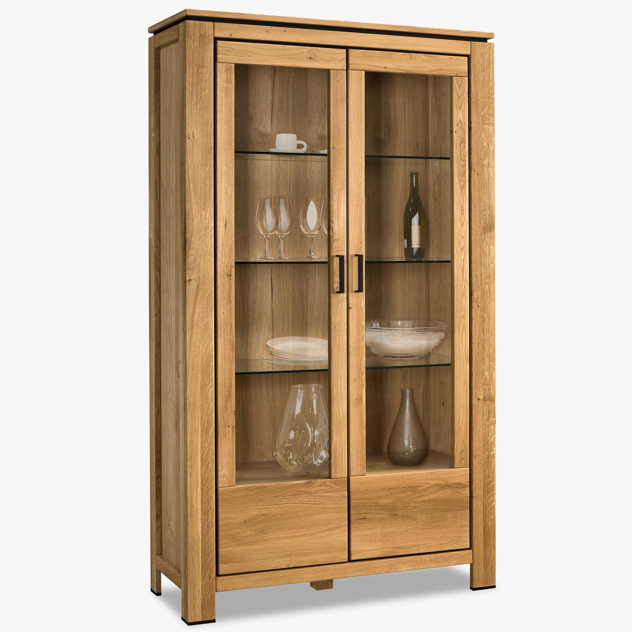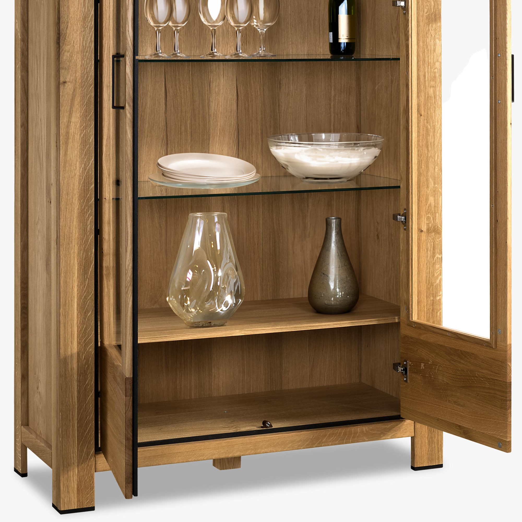 Tölgyfa kétszárnyú vitrines szekrény üveges ajtókkal, New Line II