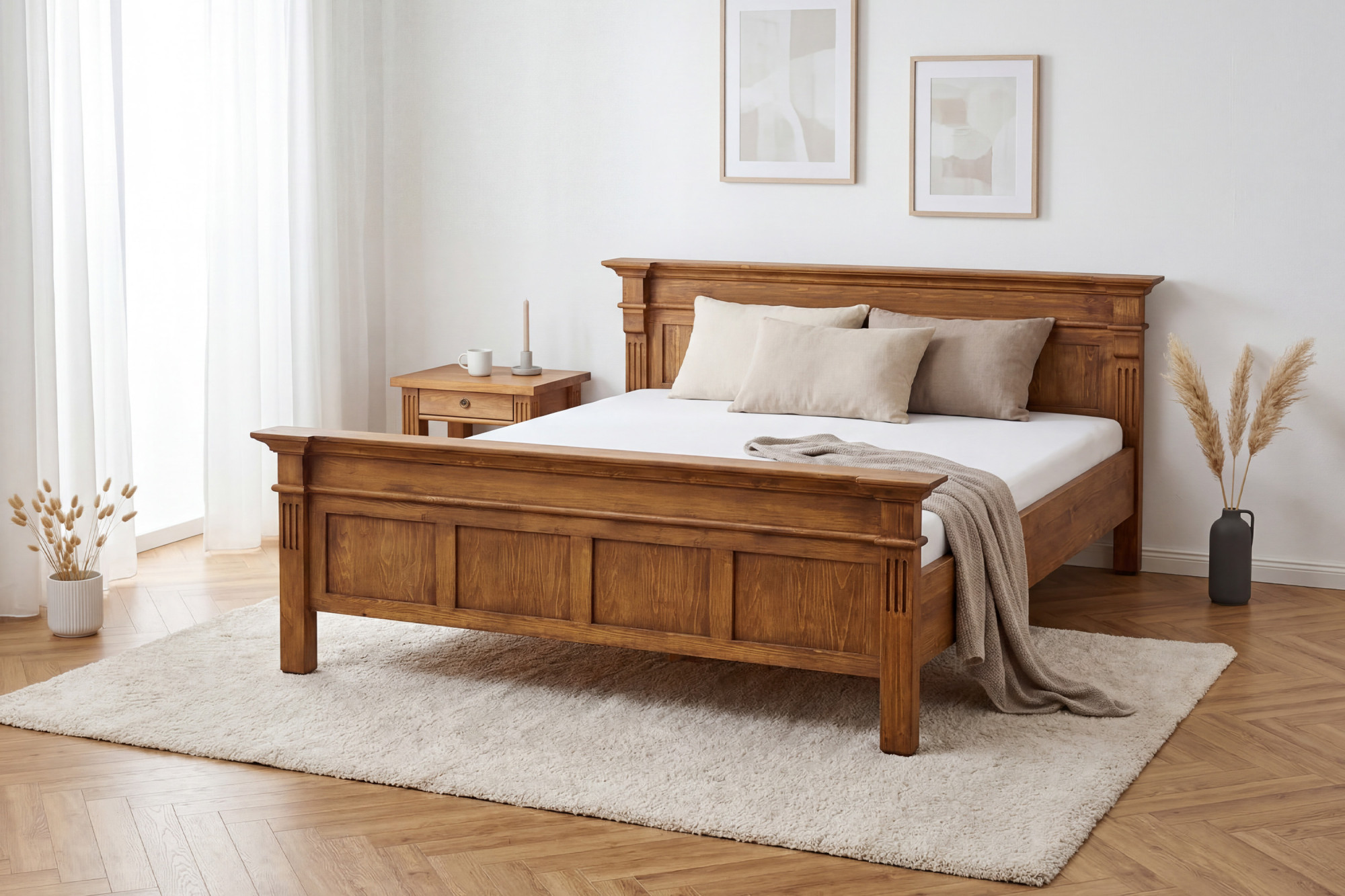 A Prestige faágy olyan vásárlóknak készült, akik értékelik a gondos kézműves kivitelezést, a természetes anyagokat és a klasszikus stílust. A fenyő tömörfa népszerű anyag a maga szilárdsága, tartóssága és természetes megjelenése miatt. A barna lakk finom patinával tovább növeli az ágy elegáns, rusztikus jellegét, amely kiválóan érvényesül hagyományosan berendezett hálószobában és vidéki ihletésű enteriőrben egyaránt.