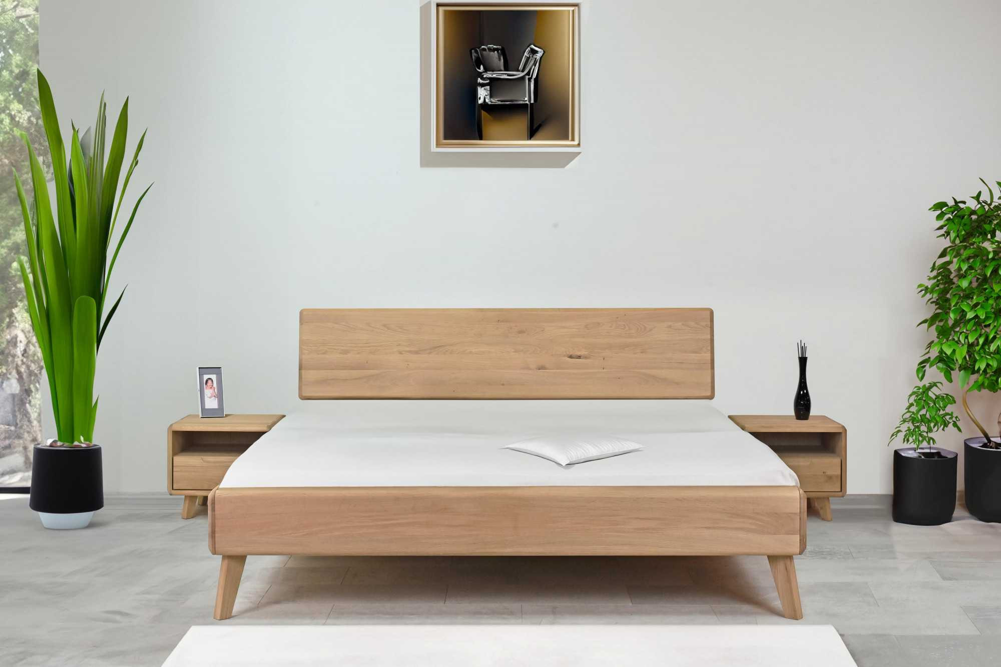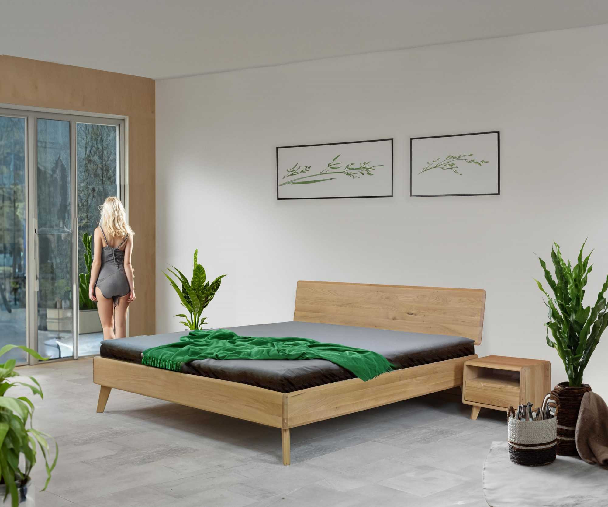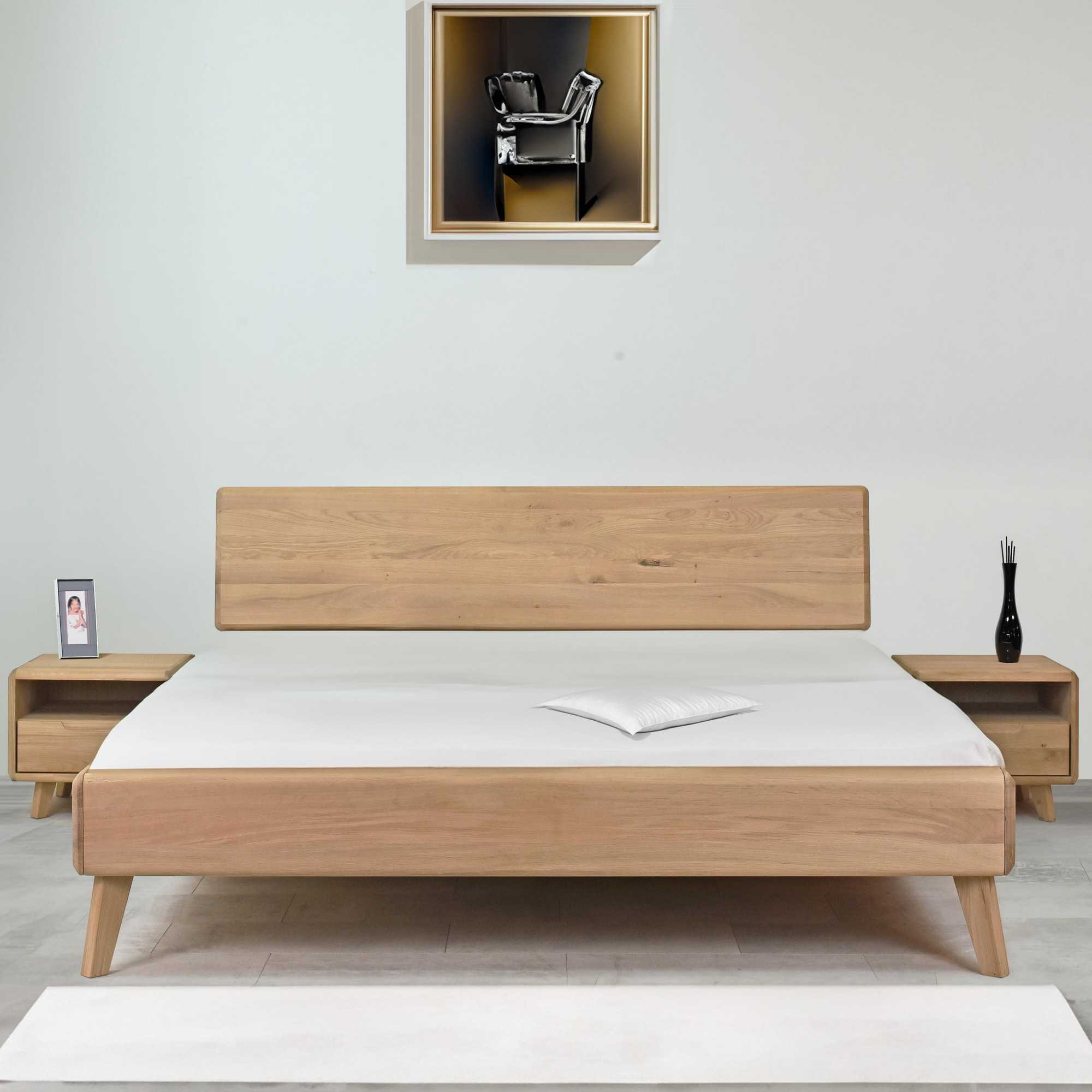 Tömör tölgy franciaágy 180x200 cm, fehér tölgy, skandináv stílus