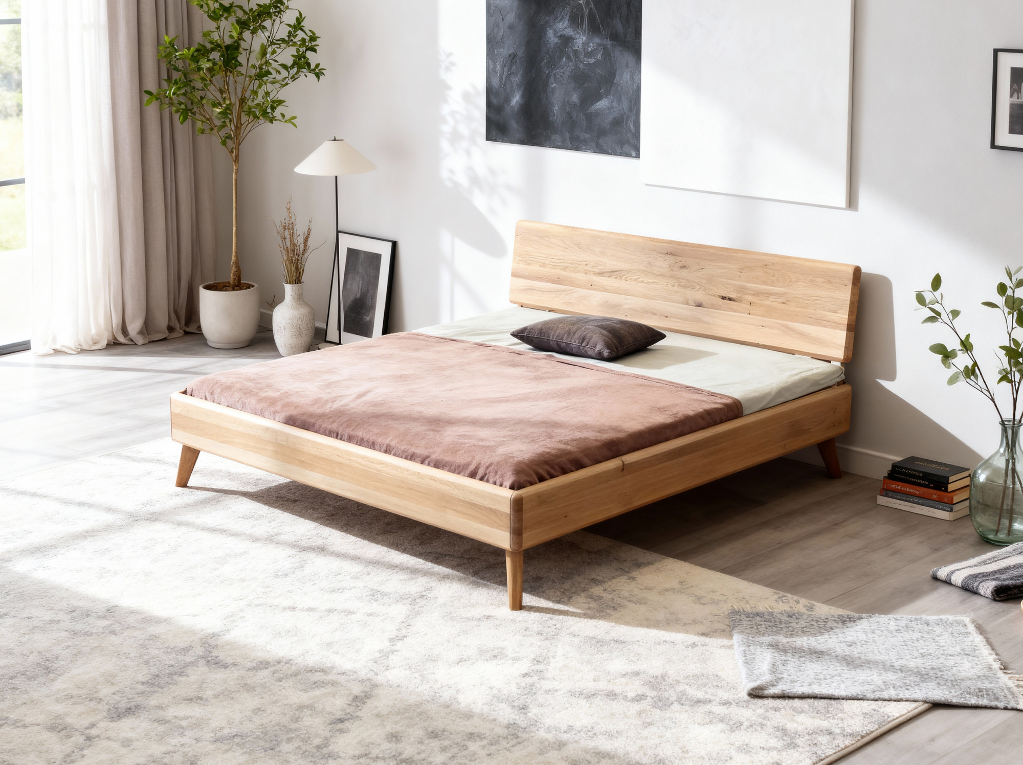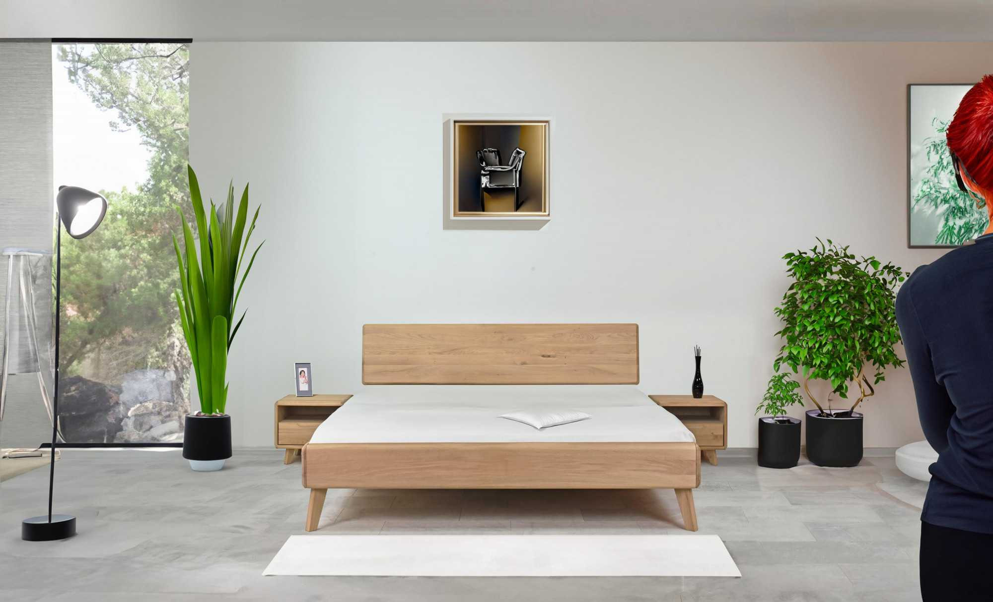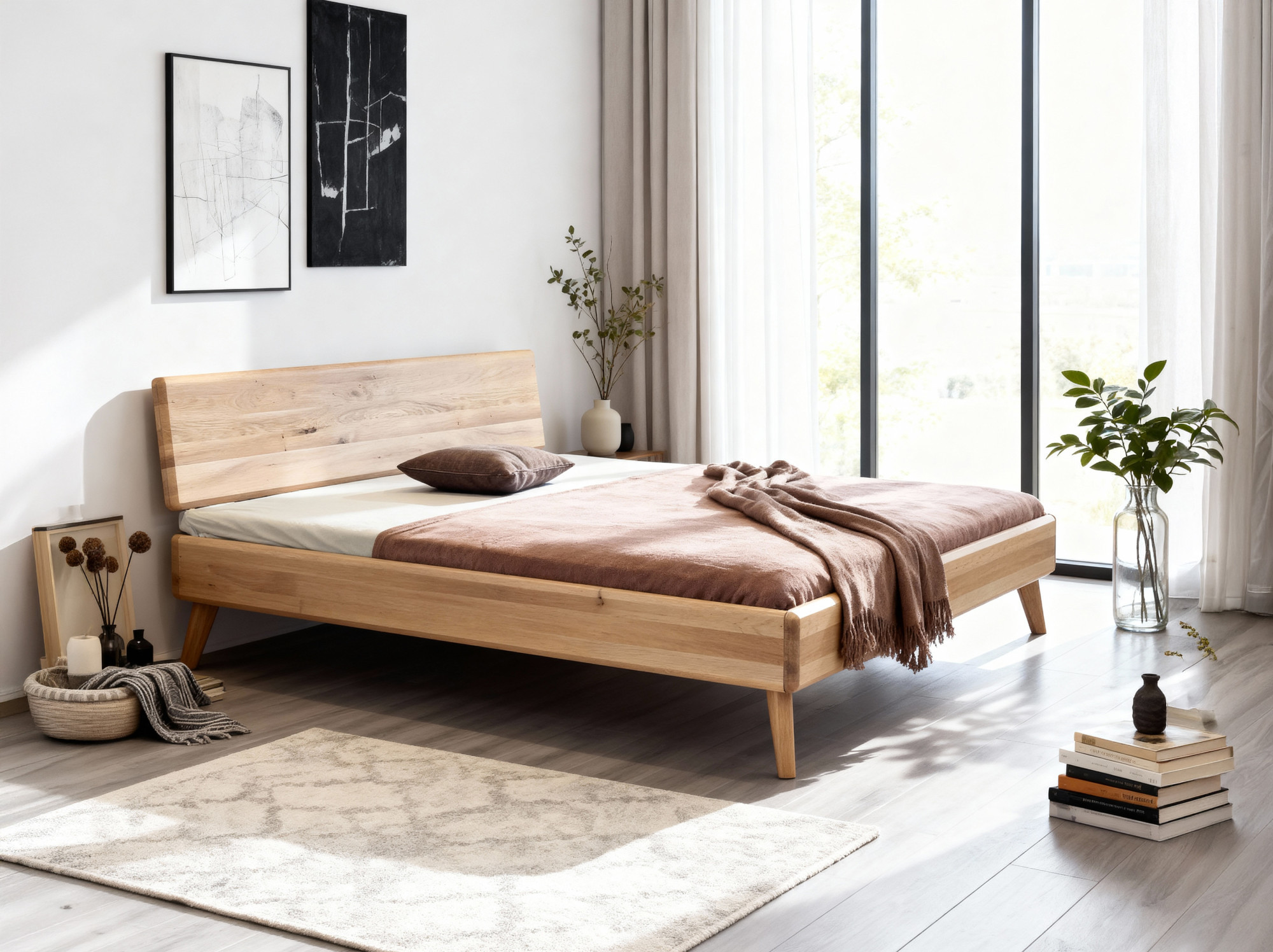 Tömör tölgy franciaágy 180x200 cm, fehér tölgy, skandináv stílus