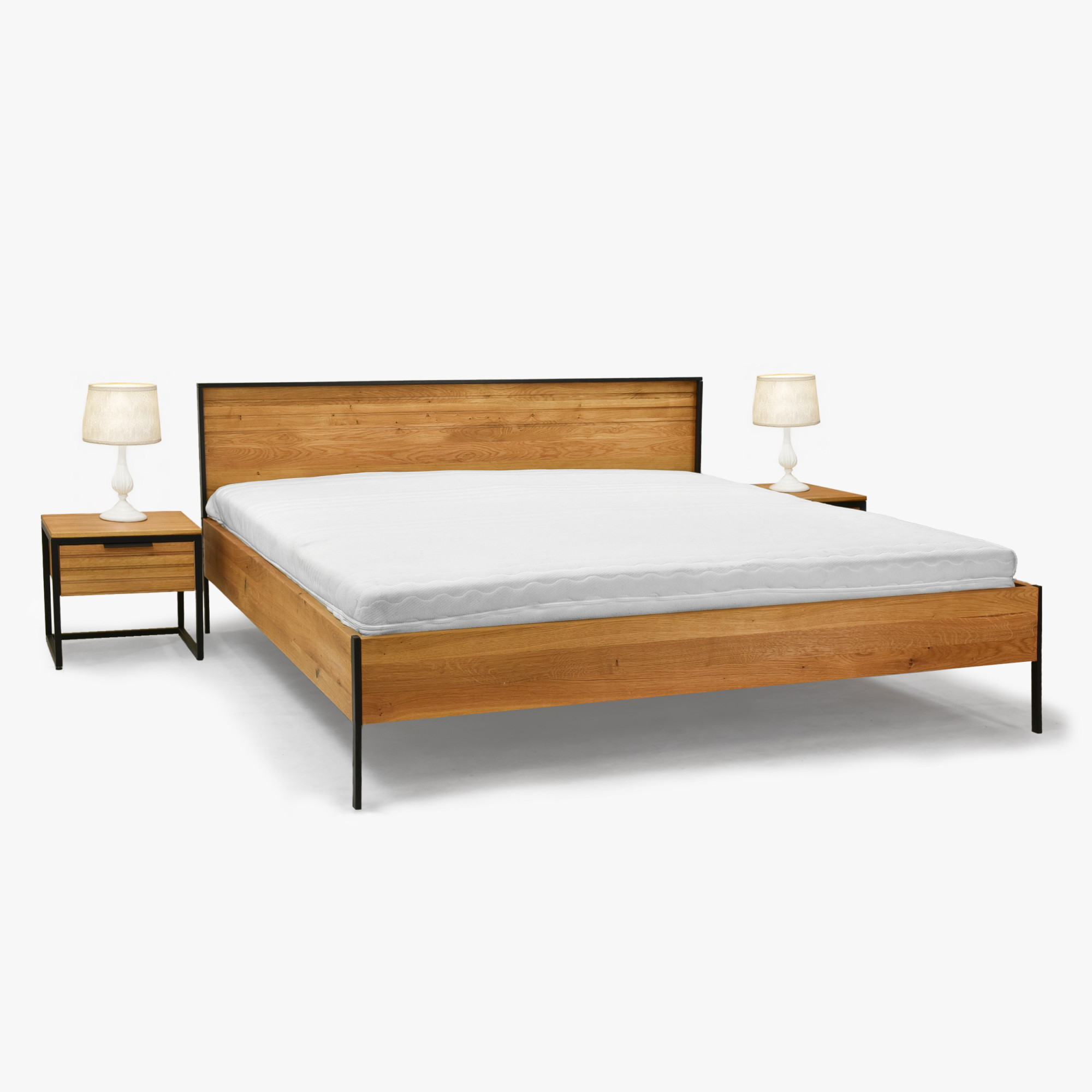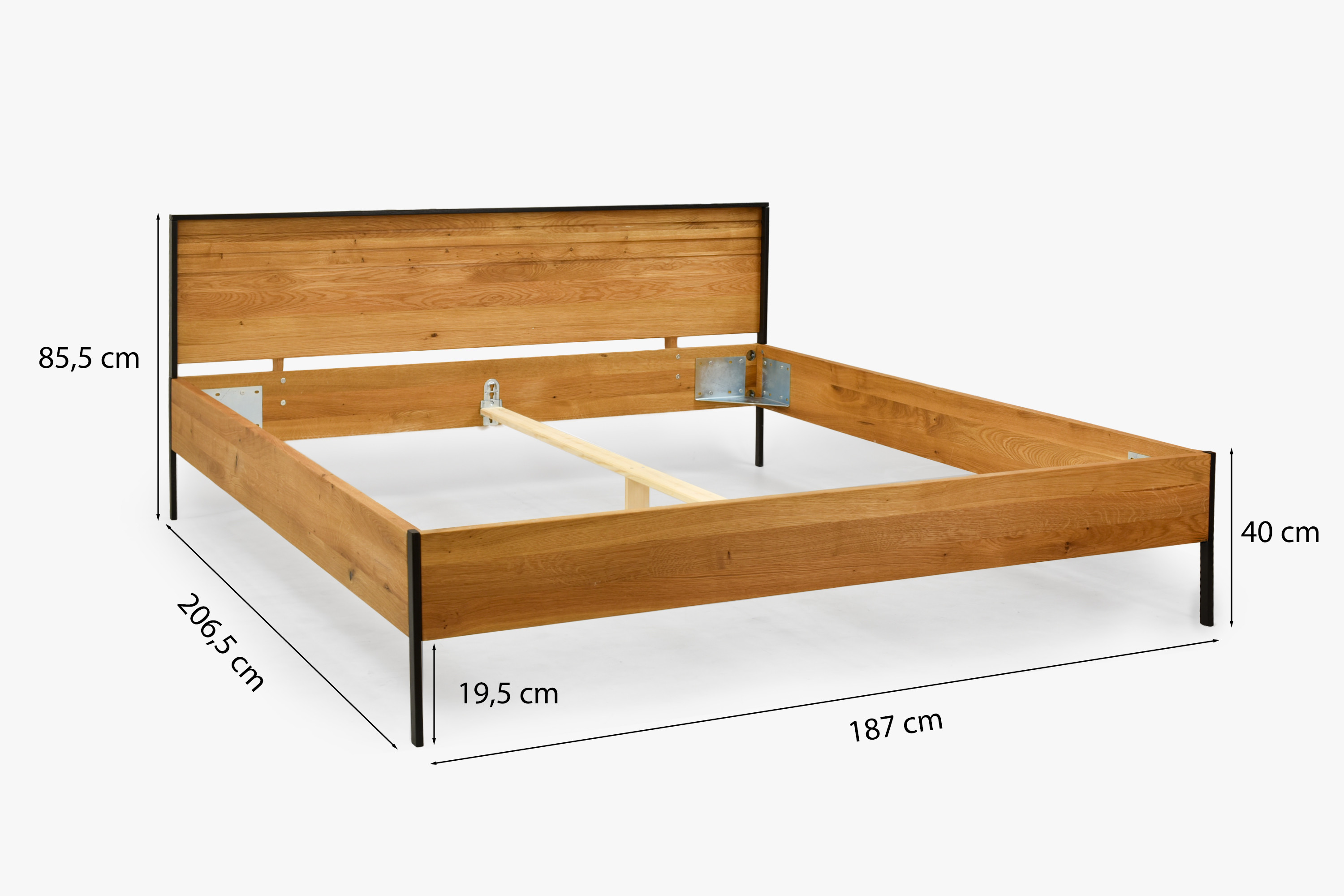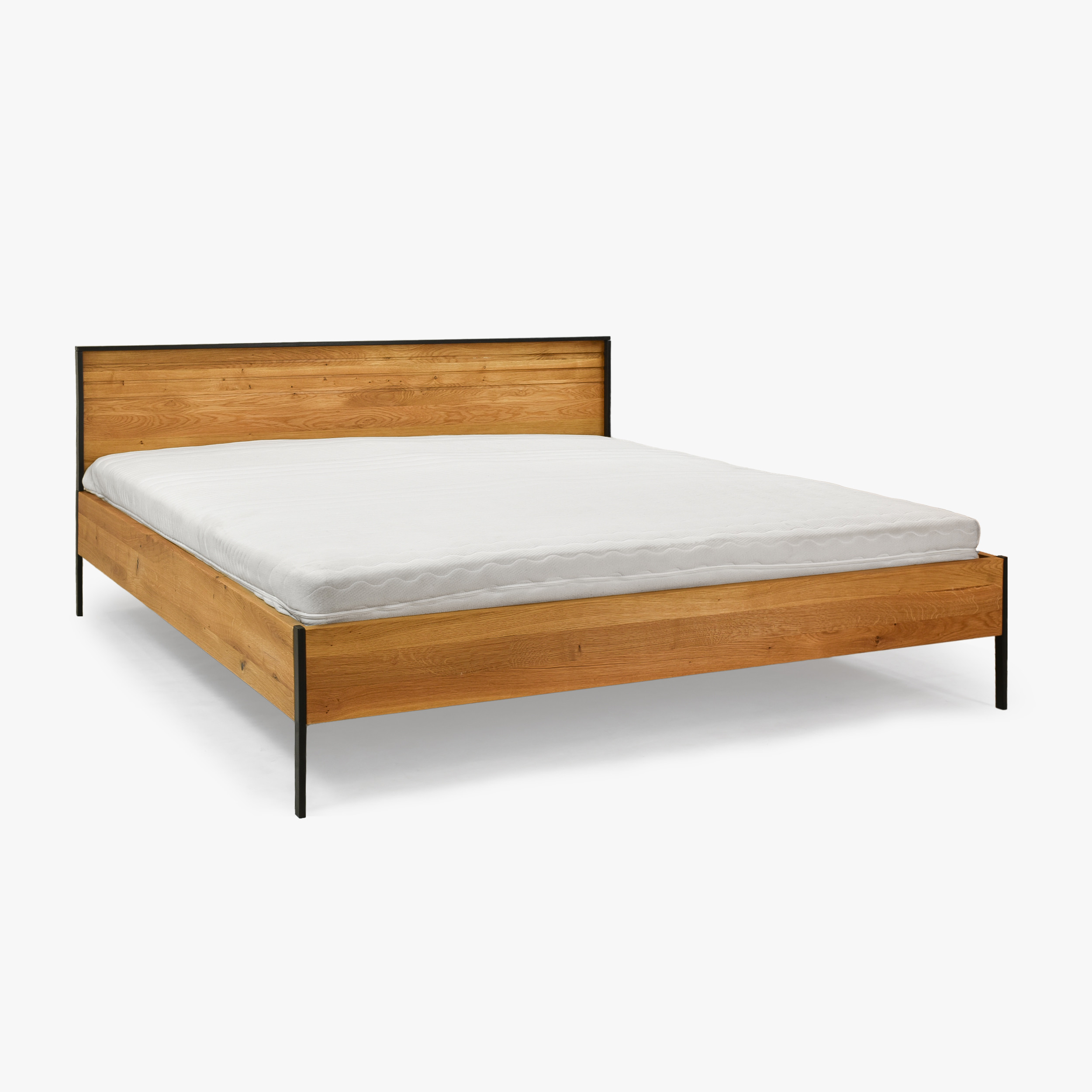 Tömör tölgyfa franciaágy fém lábakkal, 180x200 cm, természetes