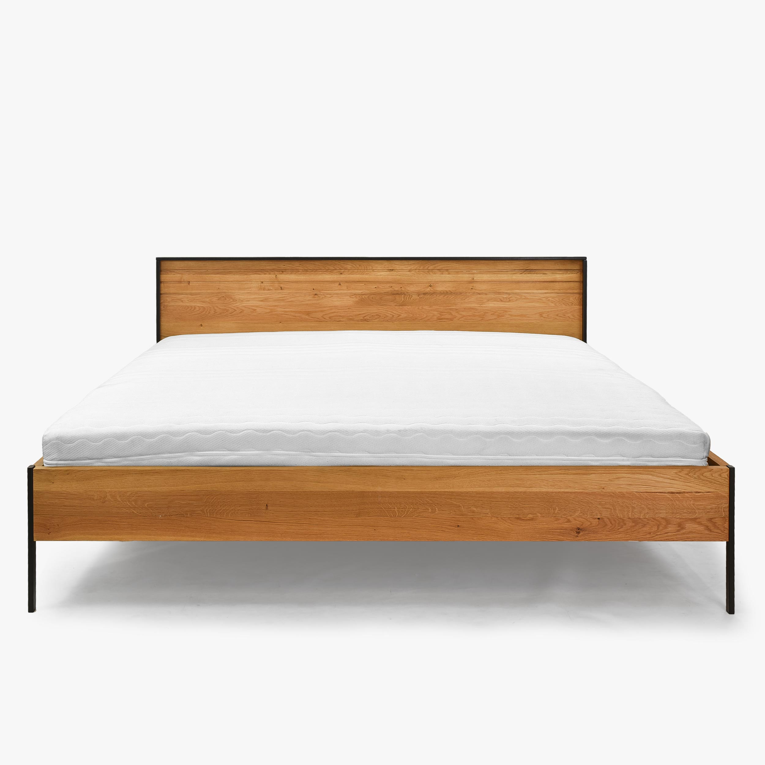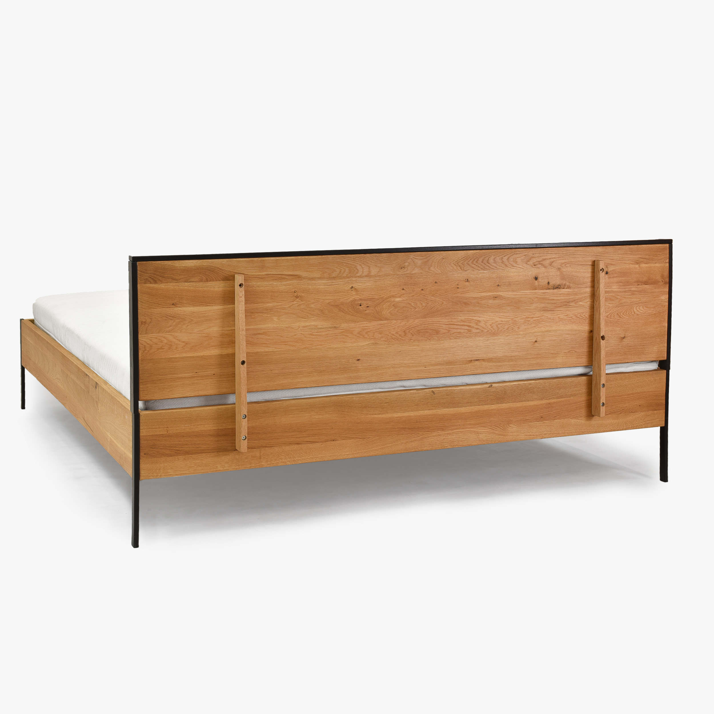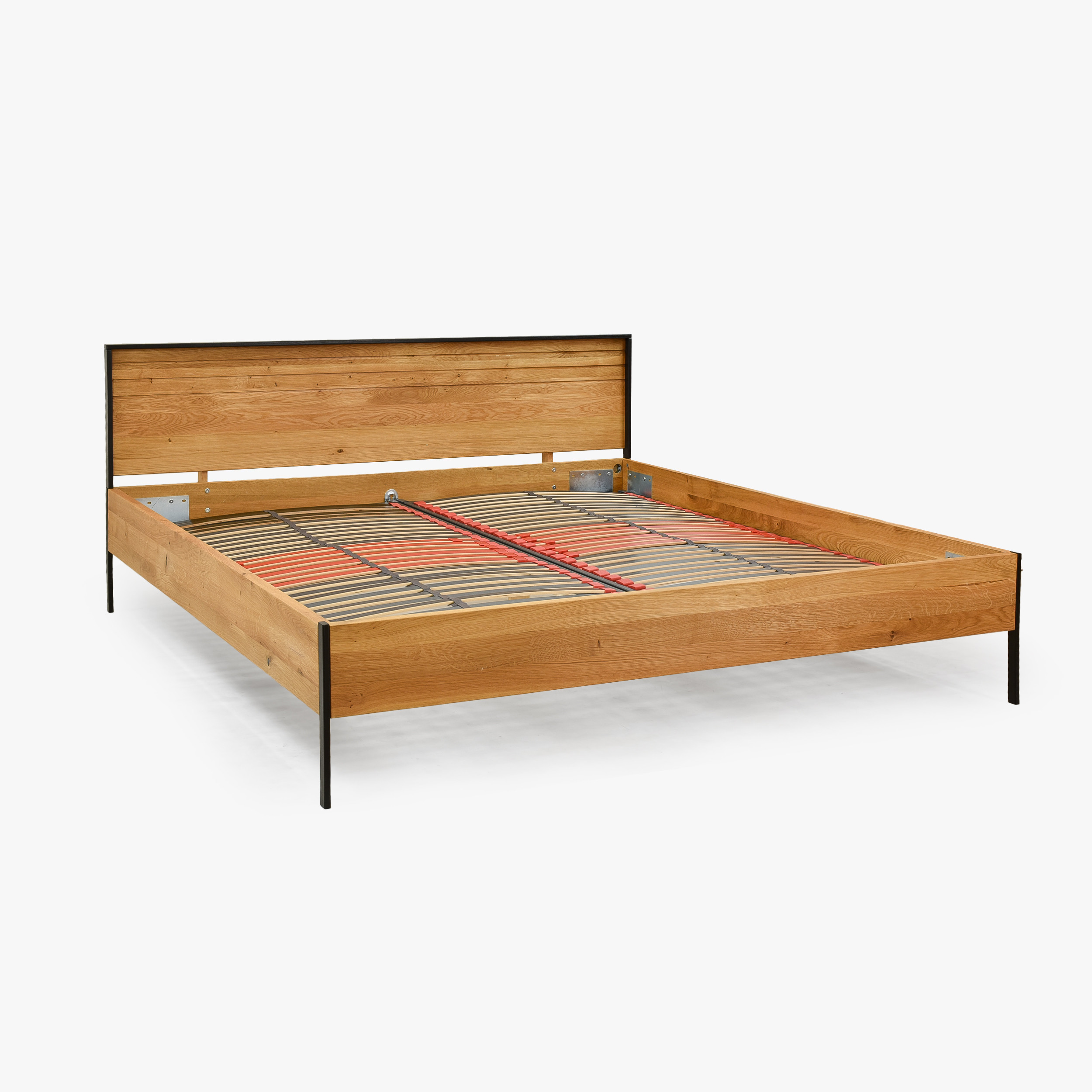 Tömör tölgyfa franciaágy fém lábakkal, 180x200 cm, természetes