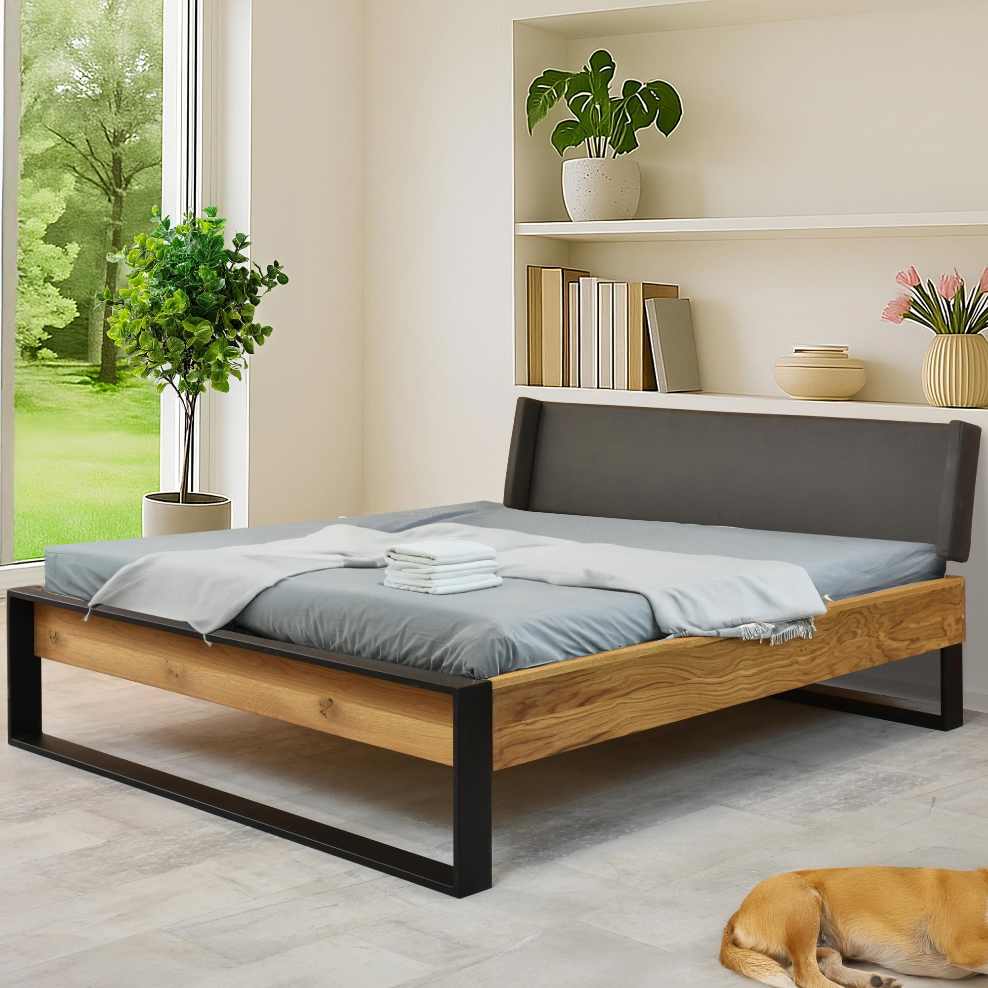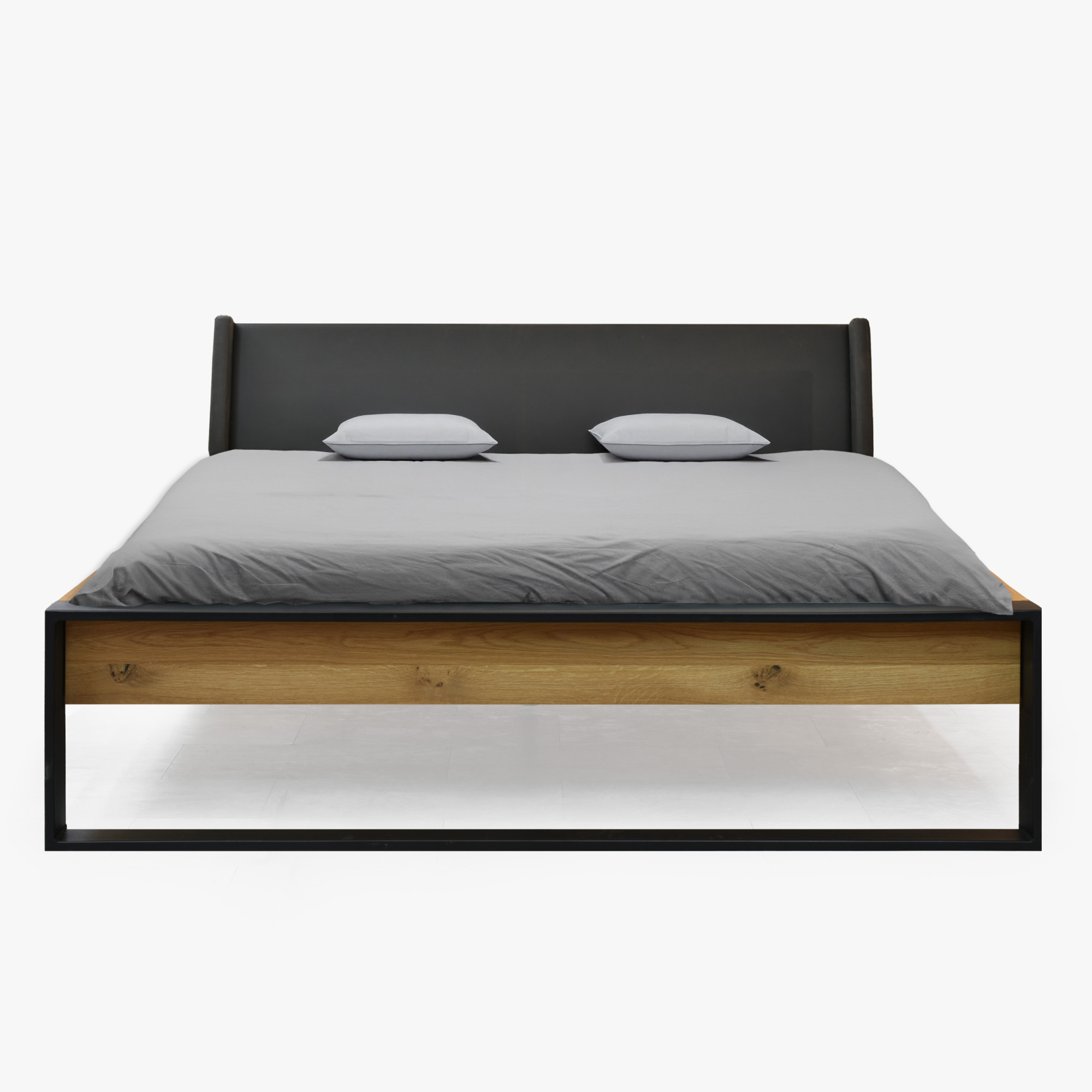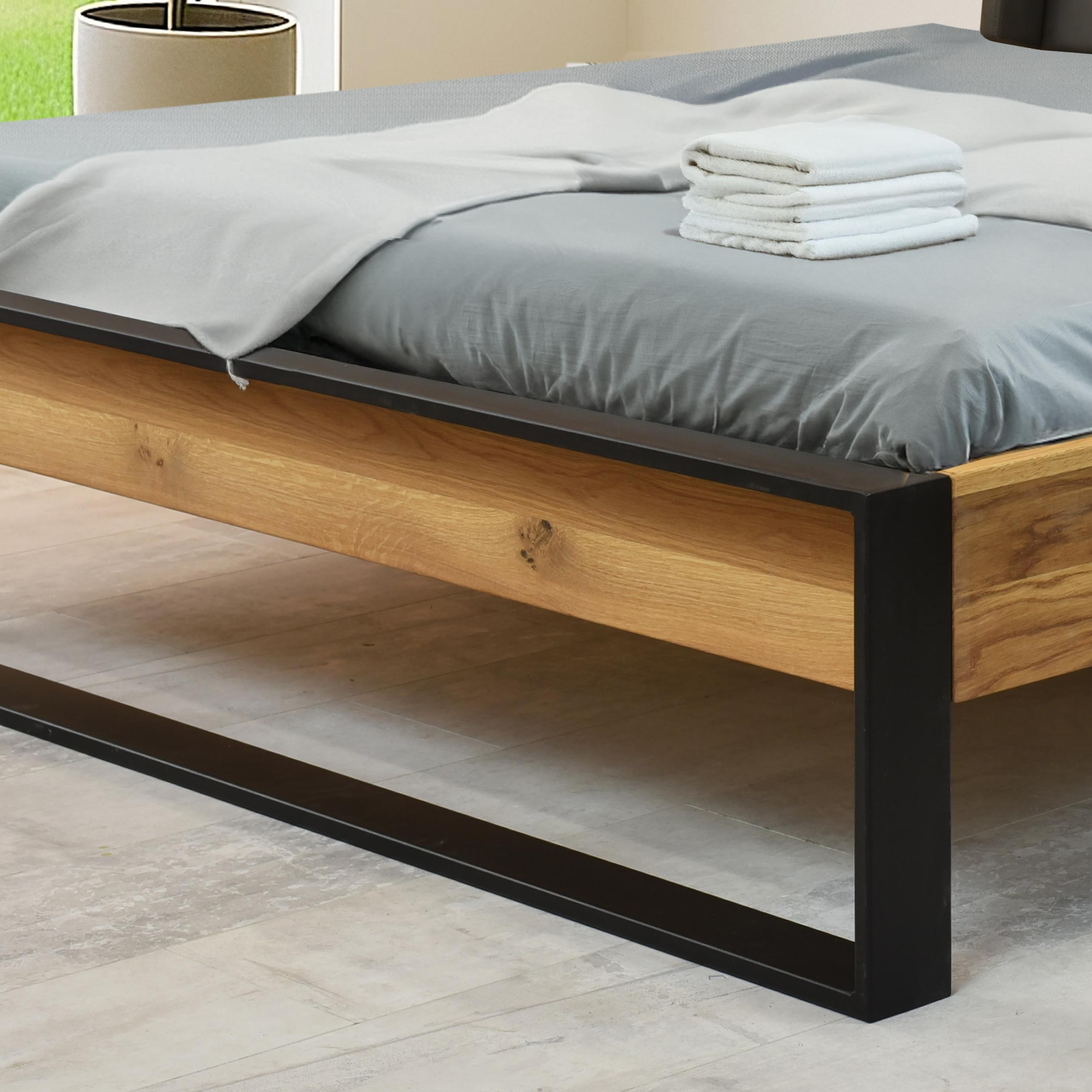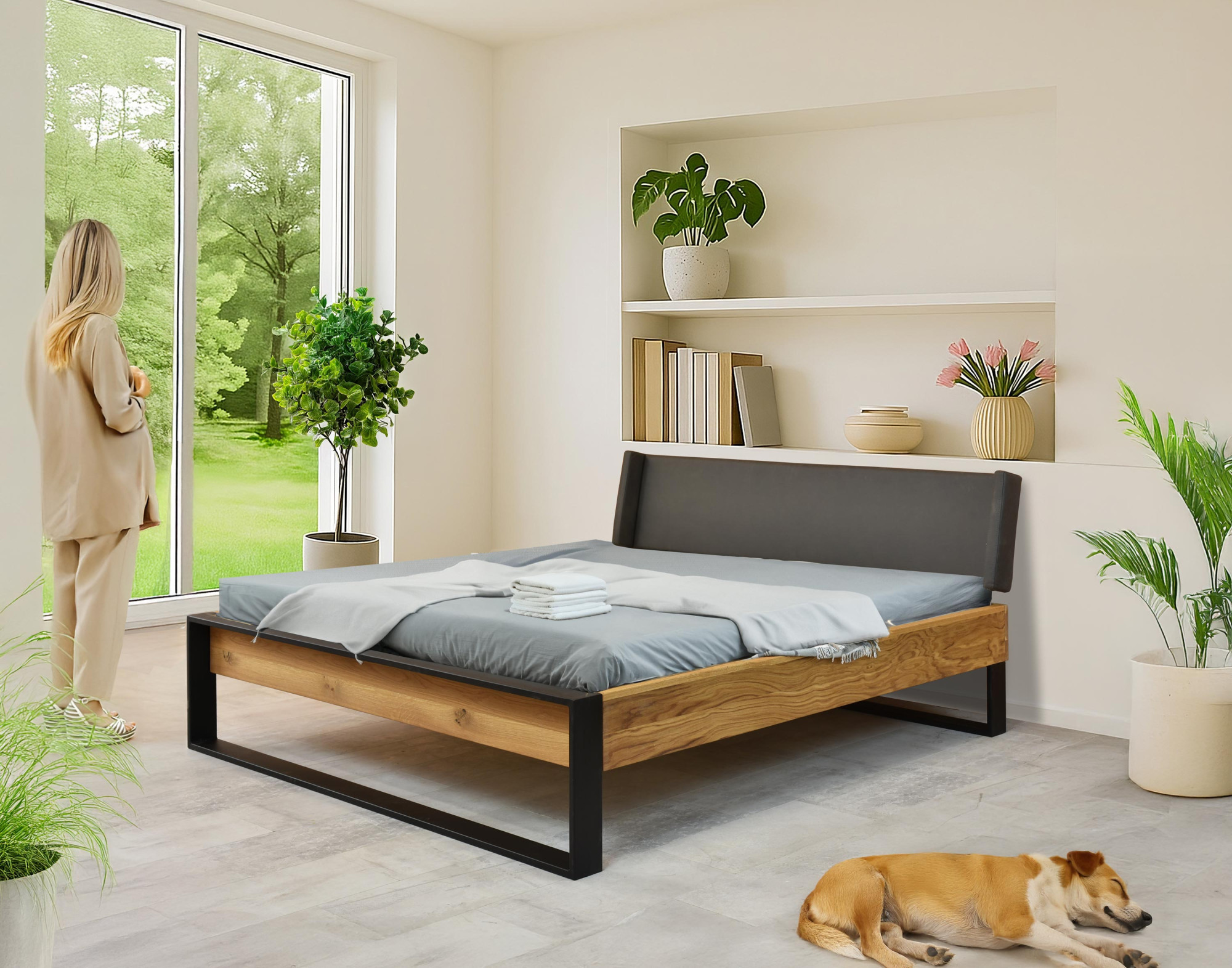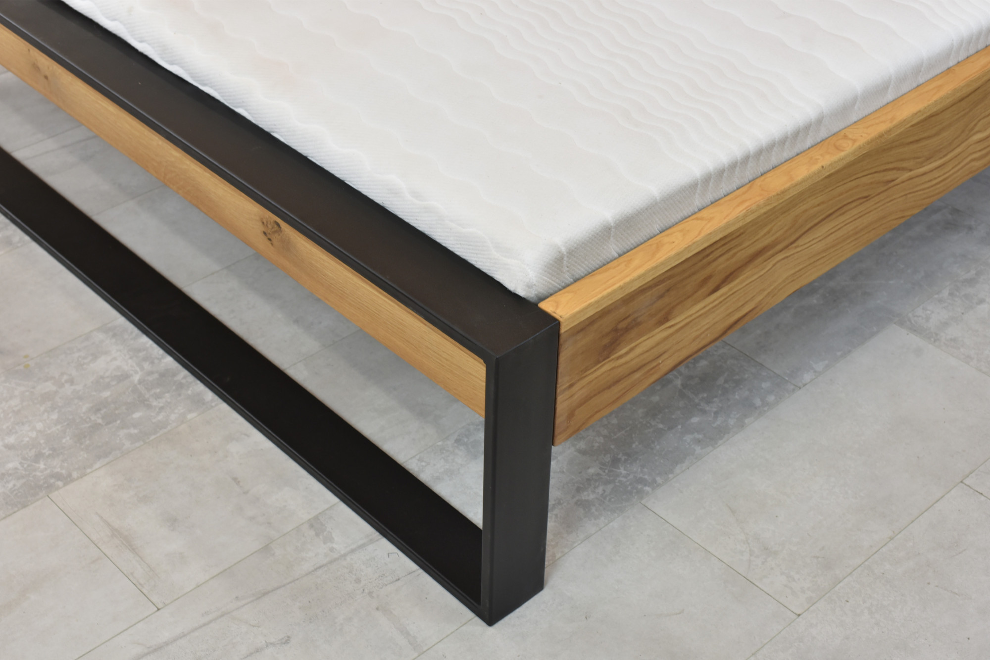 Tölgyfa ágy fém lábakkal 180x200 cm, fekete matt lábakkal