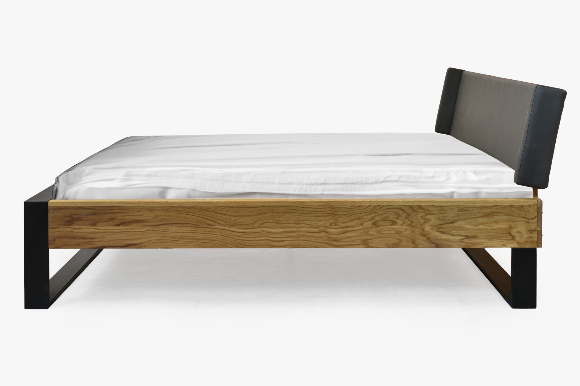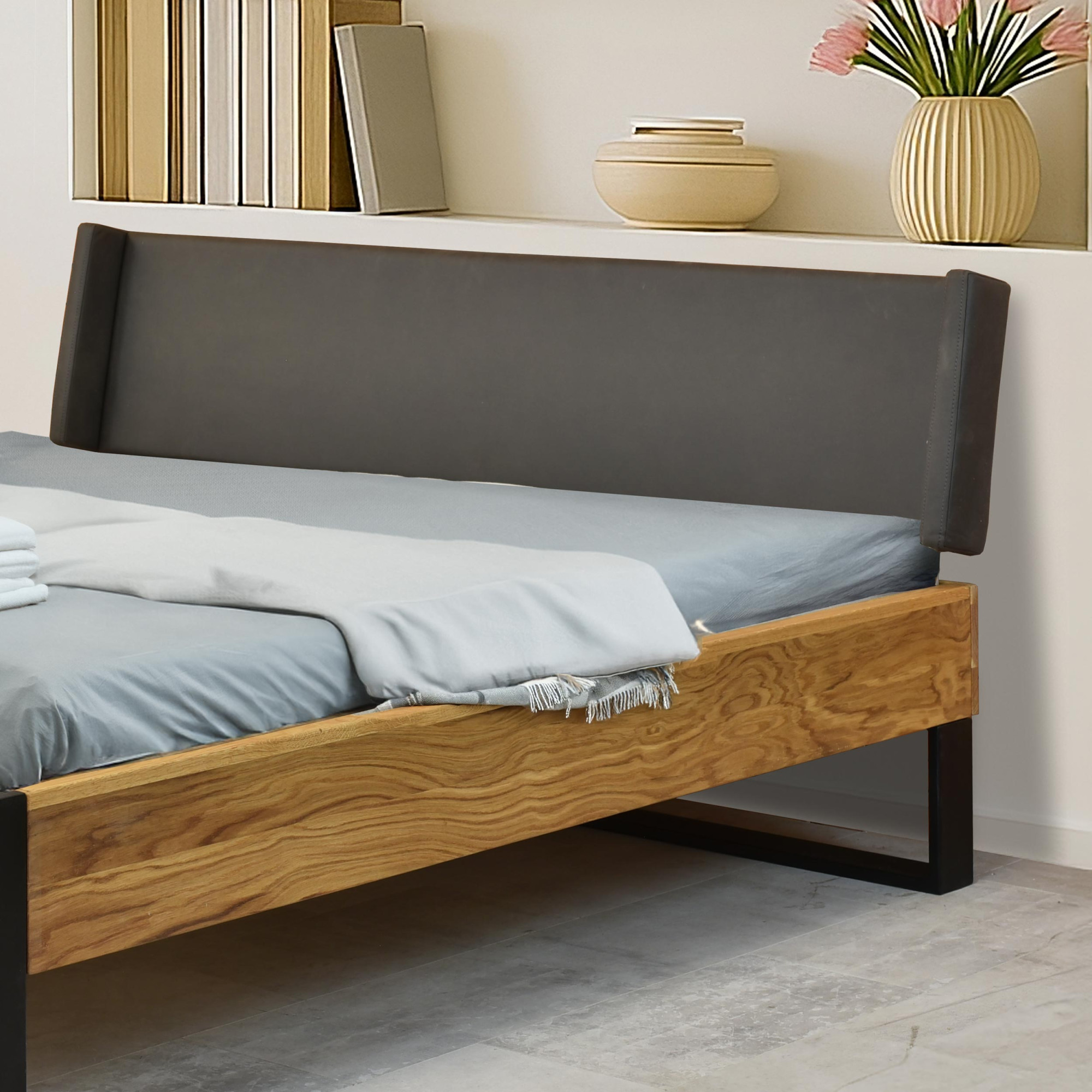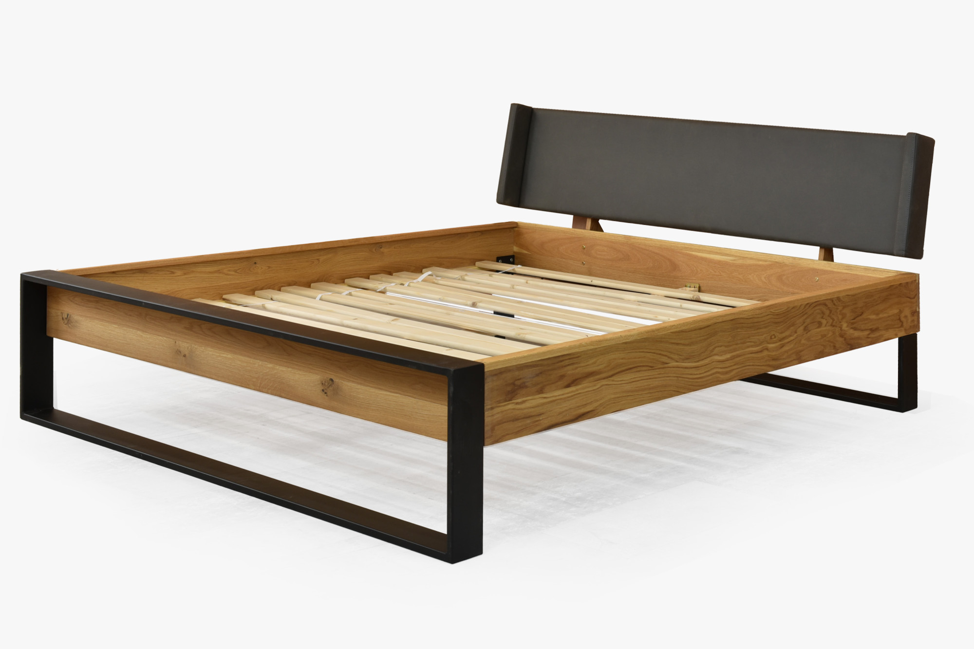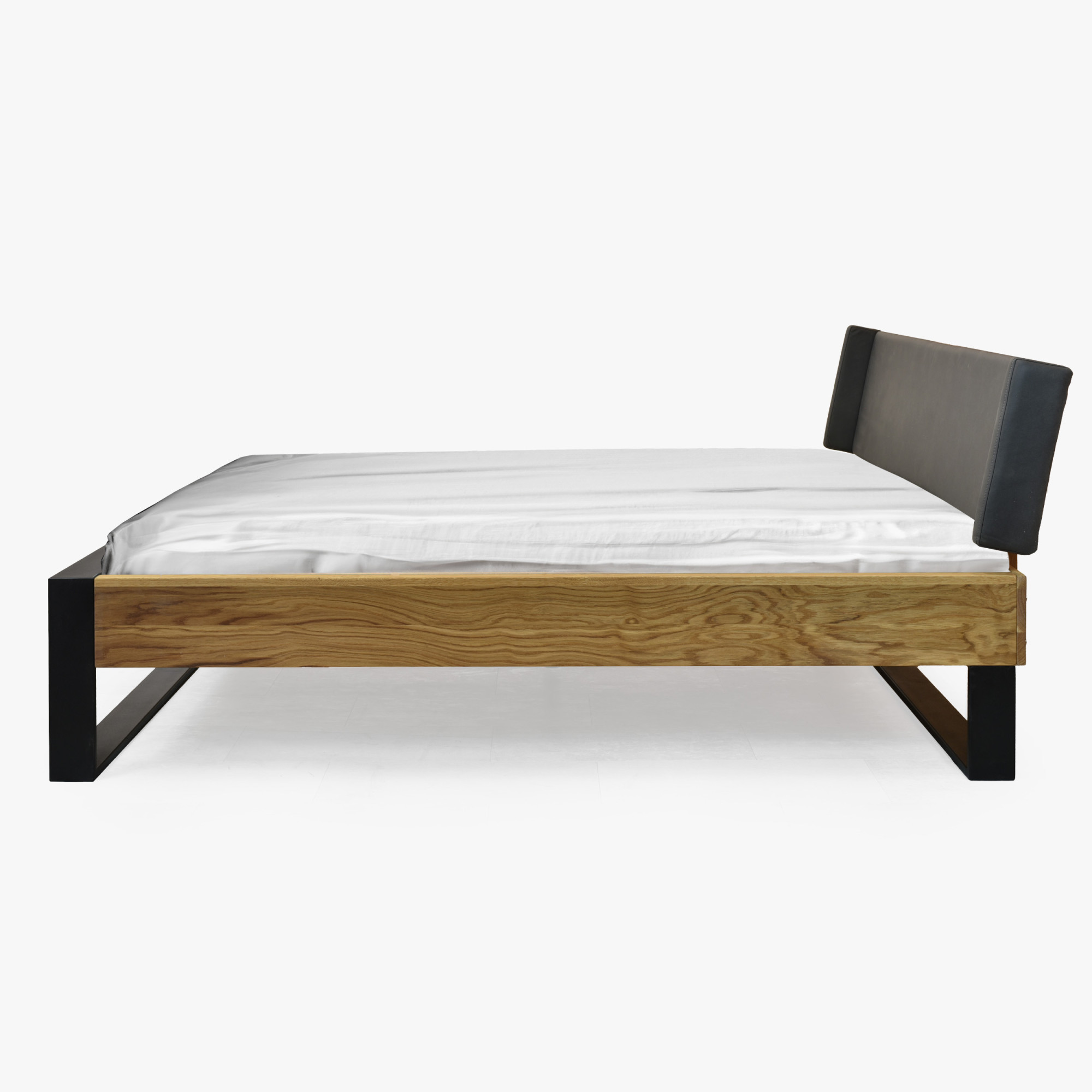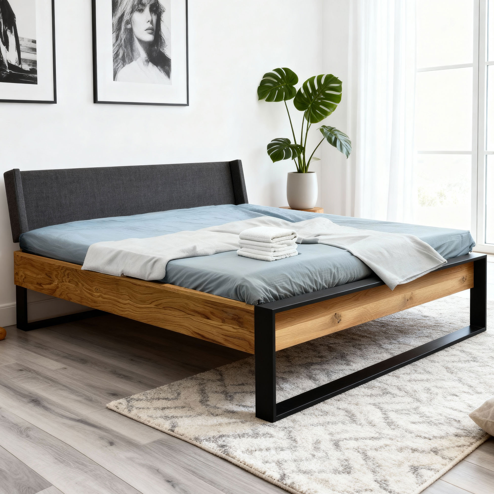 Tölgyfa ágy fém lábakkal 180x200 cm, fekete matt lábakkal