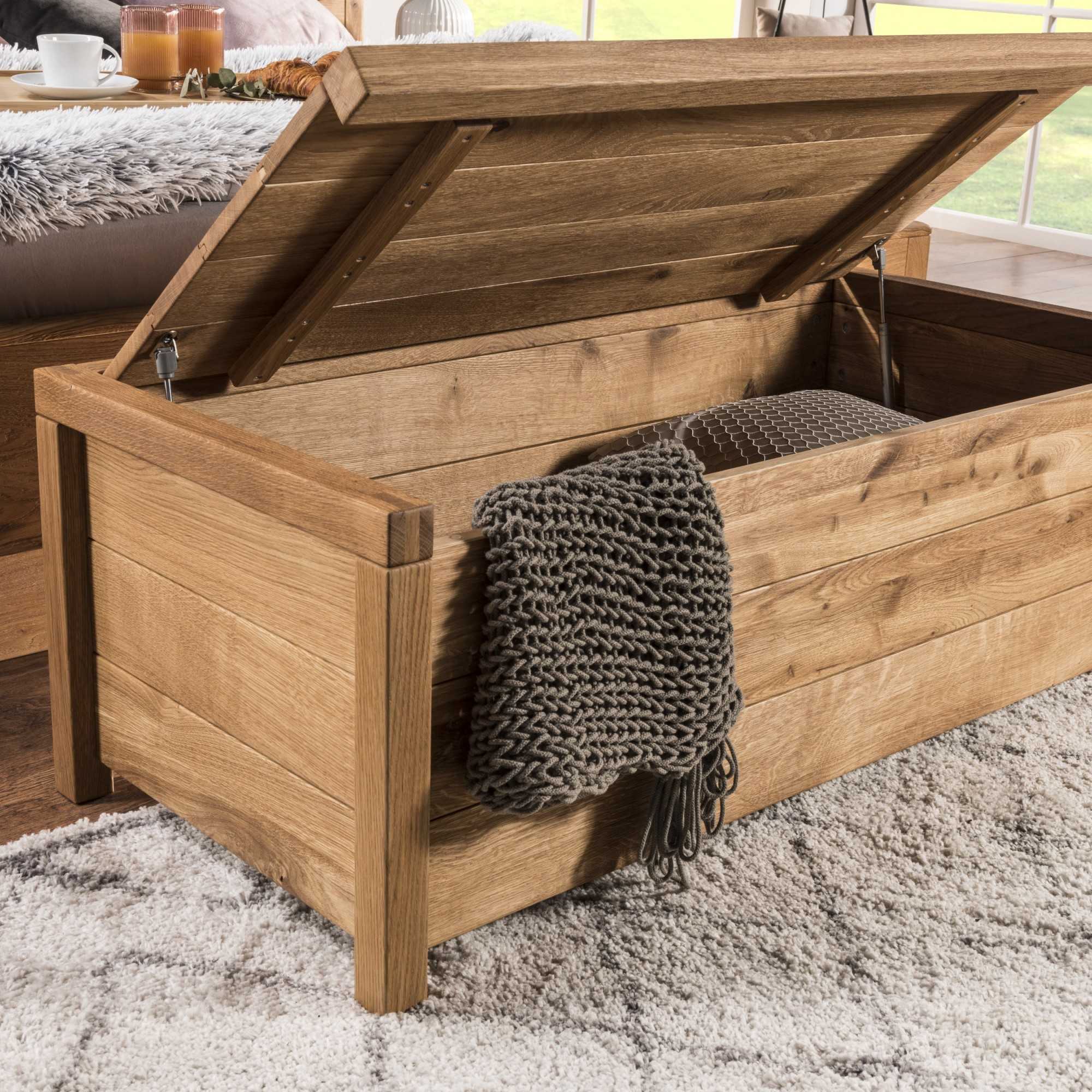 Tömör tölgyfa tárolóláda rekesszel, felületkezelt, 93x50x50 cm