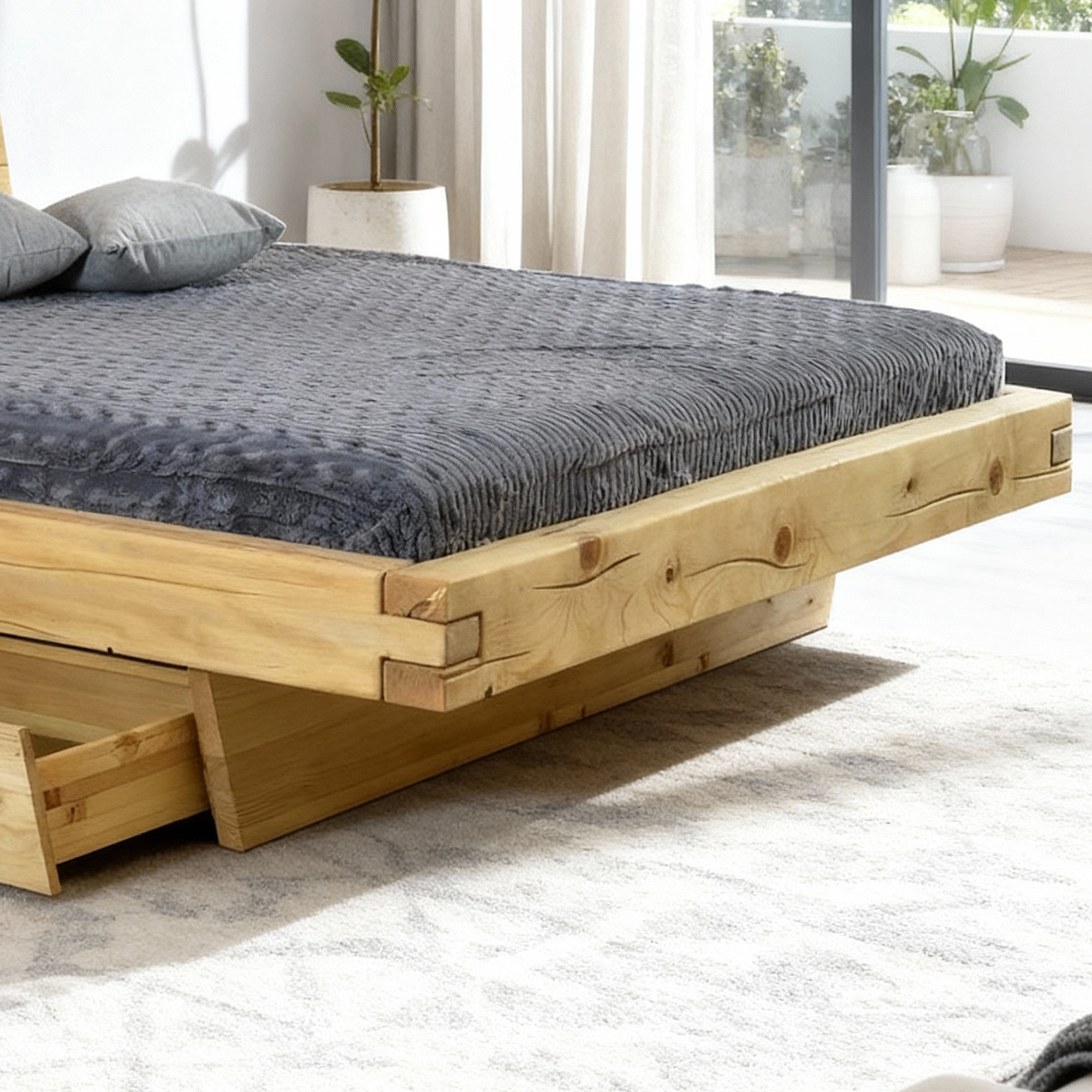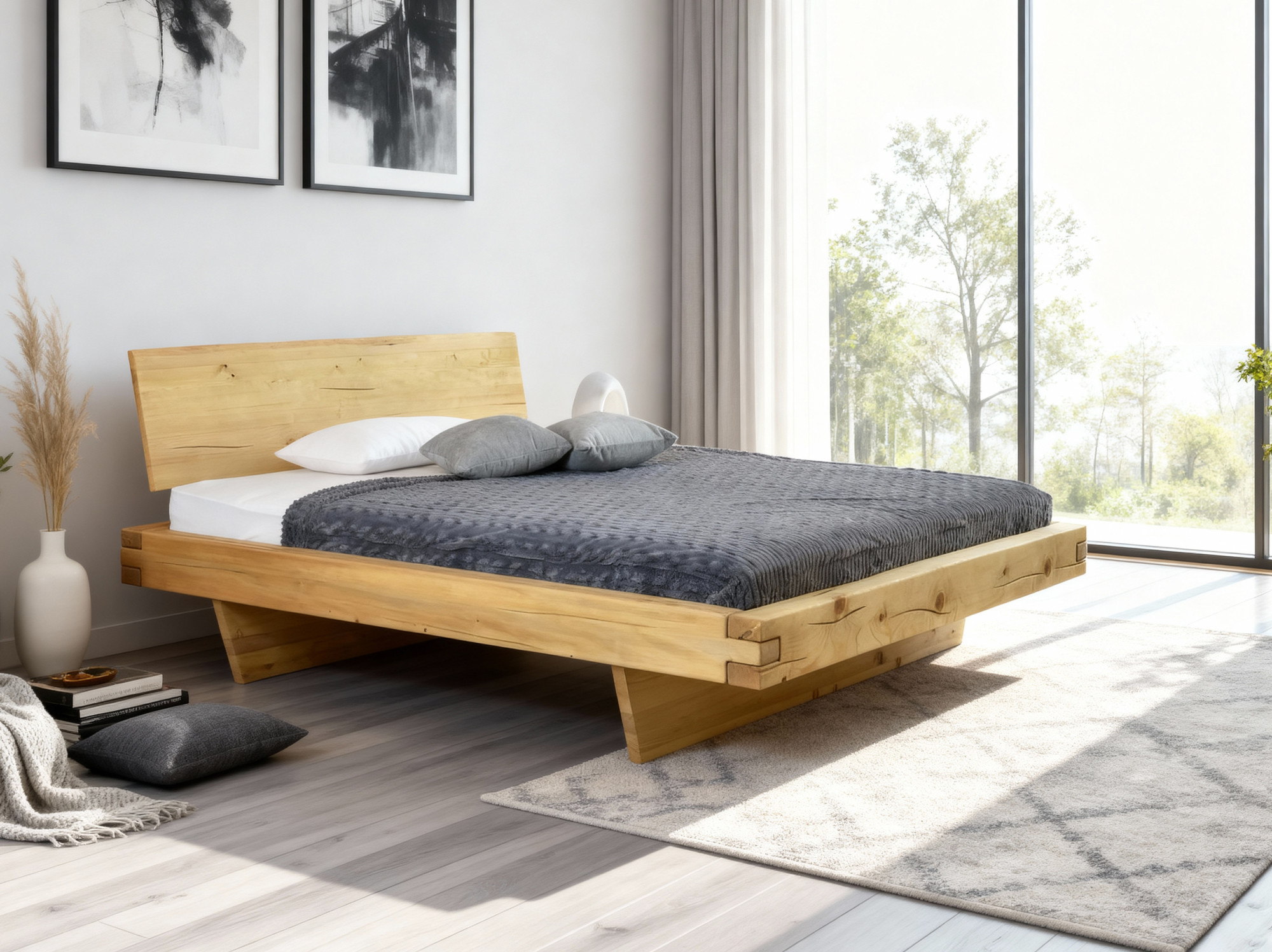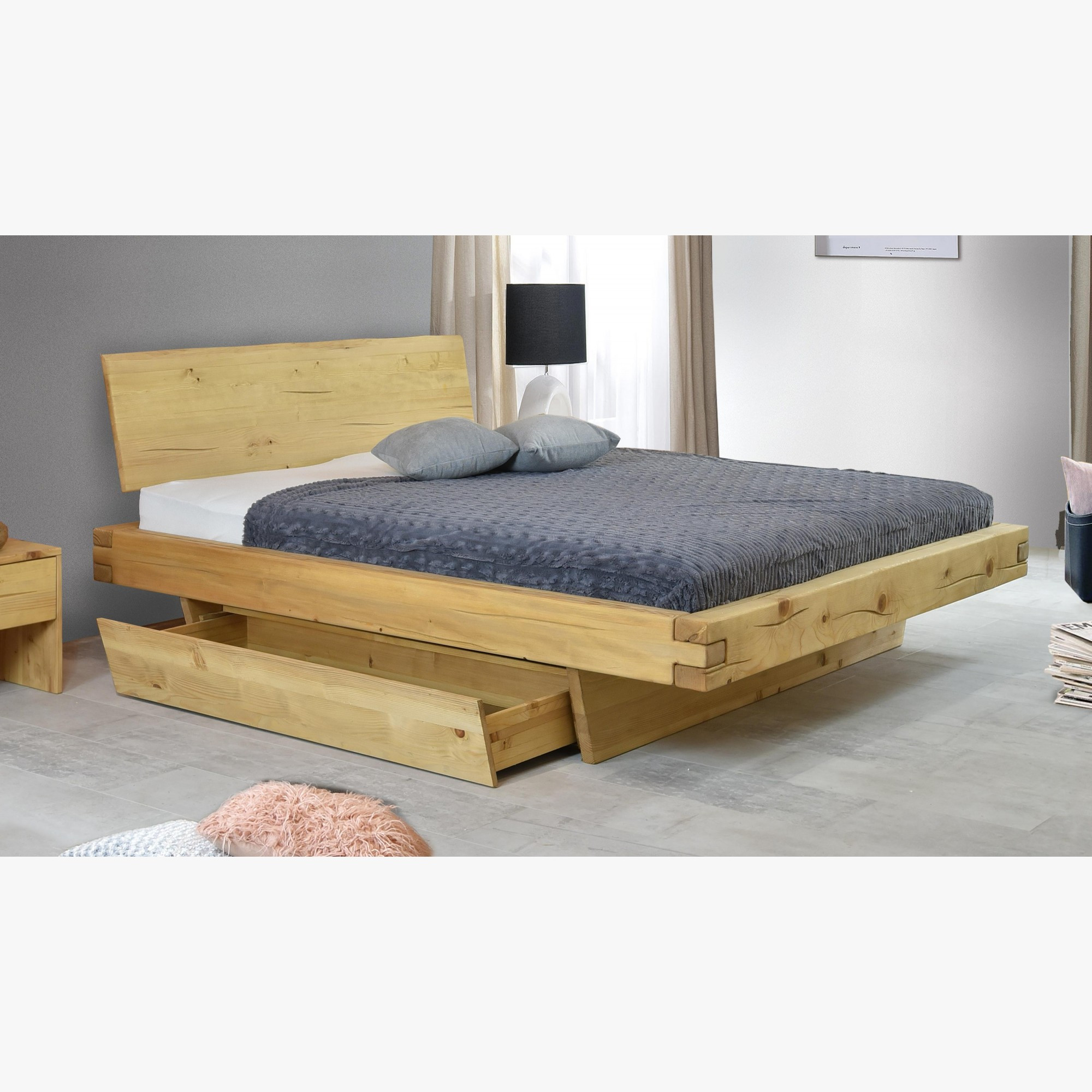 A konstrukció masszív gerendákból áll, amelyek akár 16 x 9 cm méretűek, biztosítva a stabilitást és a hosszú élettartamot. Az ágy keretében bármilyen típusú ágyrács (rács) elhelyezhető, így a matrac tartása egyénileg választható. Az ágy egyszerűen összeszerelhető, és jól illeszkedik különböző belső terekhez, legyen az rusztikus, skandináv vagy modern.