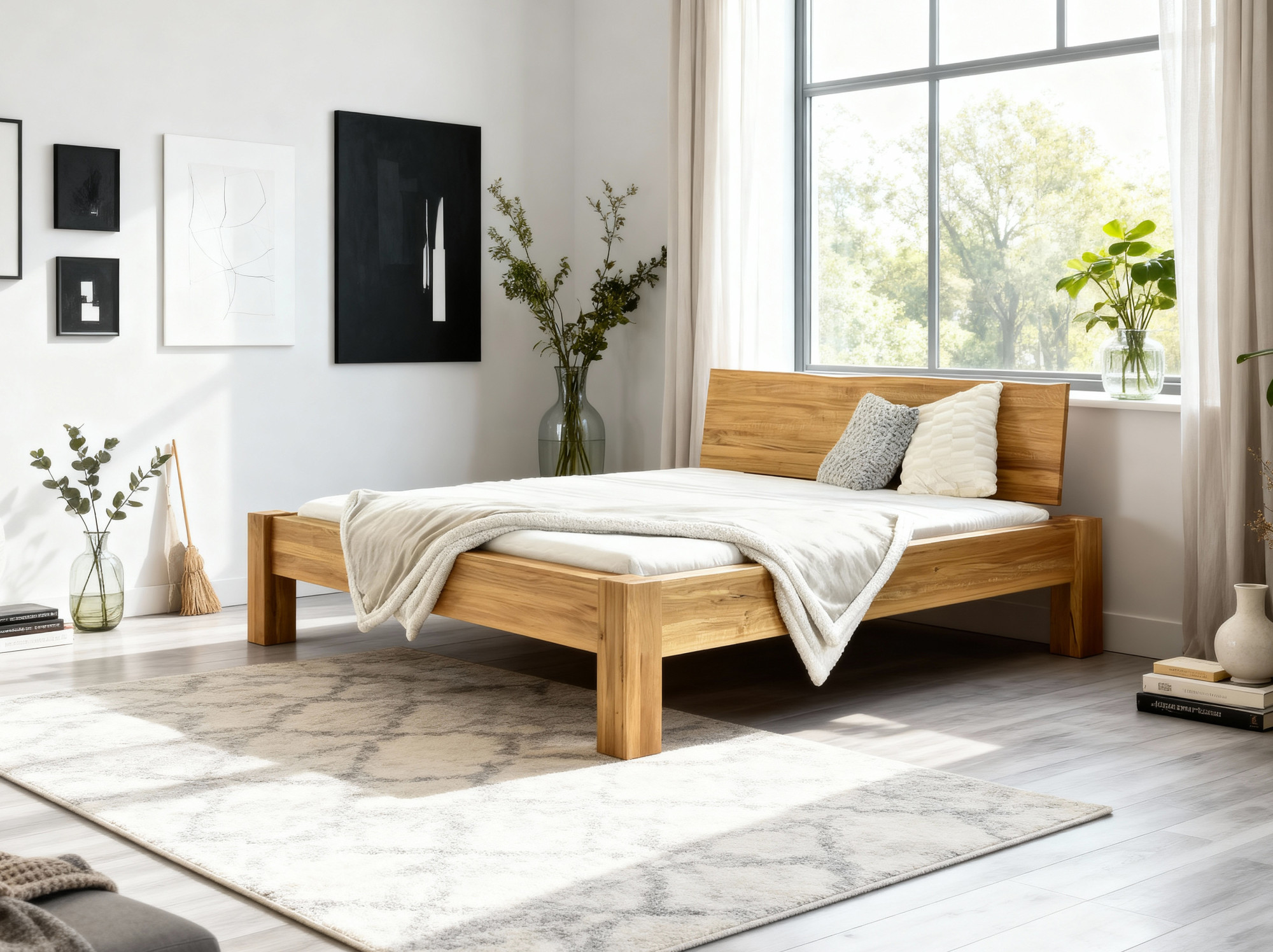 Tömör tölgyfa franciaágy 160x200 cm, természetes olajkezelésű