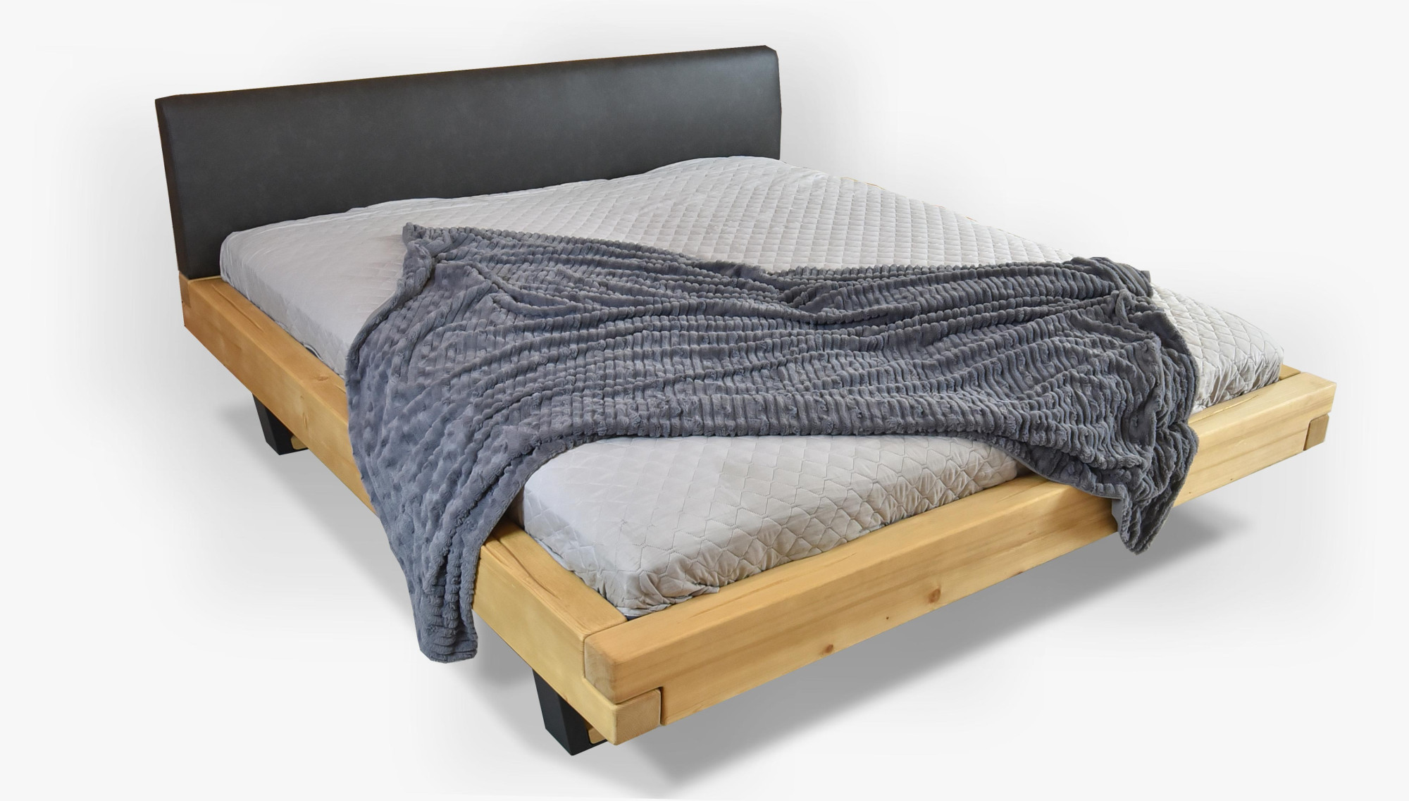 Modern, luxus tömörfa ágy lucfenyőből. A Laura modell fém lábakon, matt fekete színben. Az ágy rendkívül stabil és masszív, a szerkezet úgy lett megtervezve, hogy minden igénybevételt kibírjon és generációkra szóljon. Ráadásként adunk az ágyhoz egy masszív fagerendás rácsot ingyen, amelyet javasolunk közvetlenül az ágykerethez csavarozni. A modern franciaágy több matracszélességben elérhető. A matrac nem tartozéka az ágynak, de választhat a márkás Mirek matracok kínálatából.