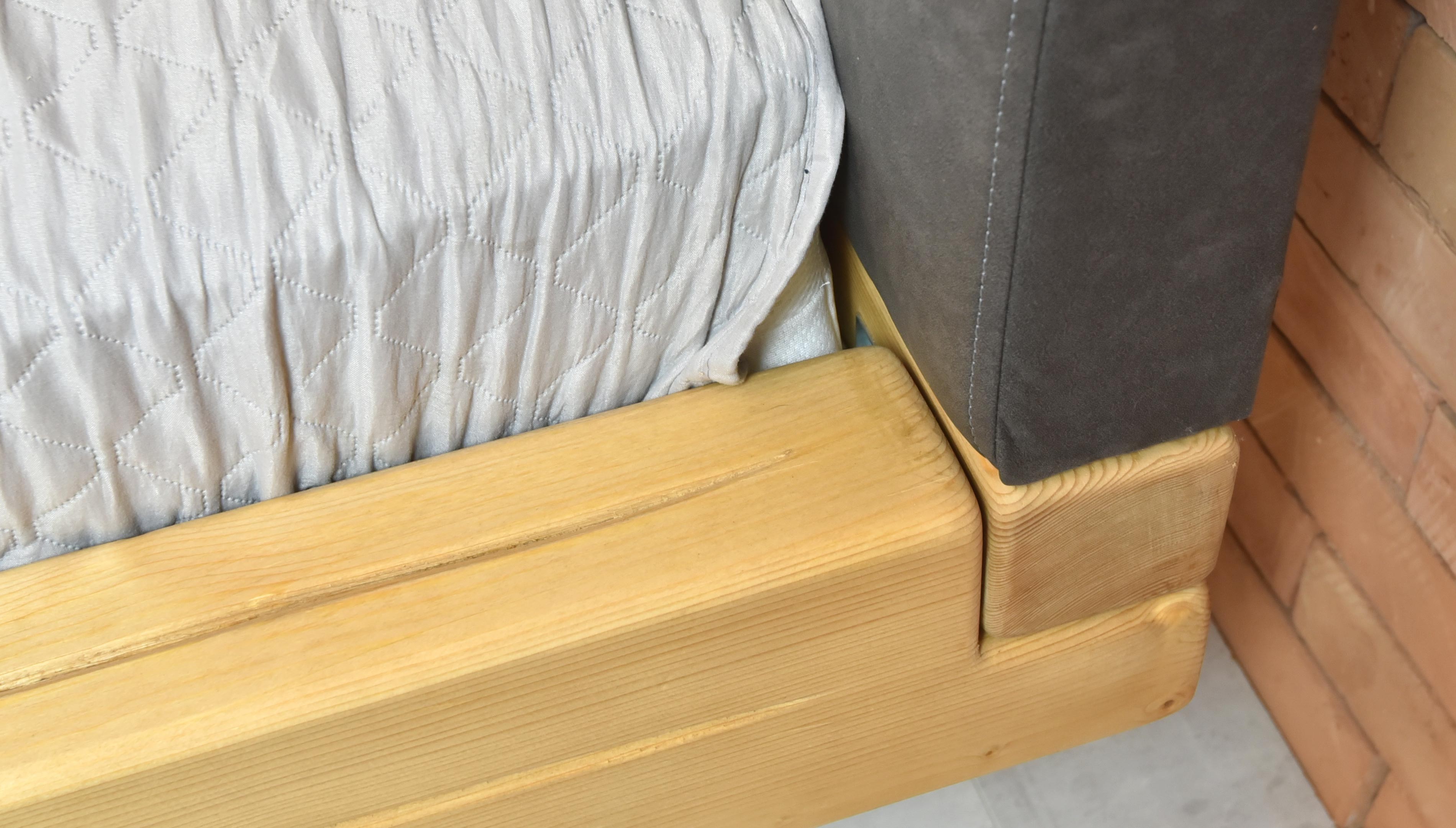 Tömörfa ágy lucfenyő lábakon - kárpitozott fejtámla, Laura 160 x 200