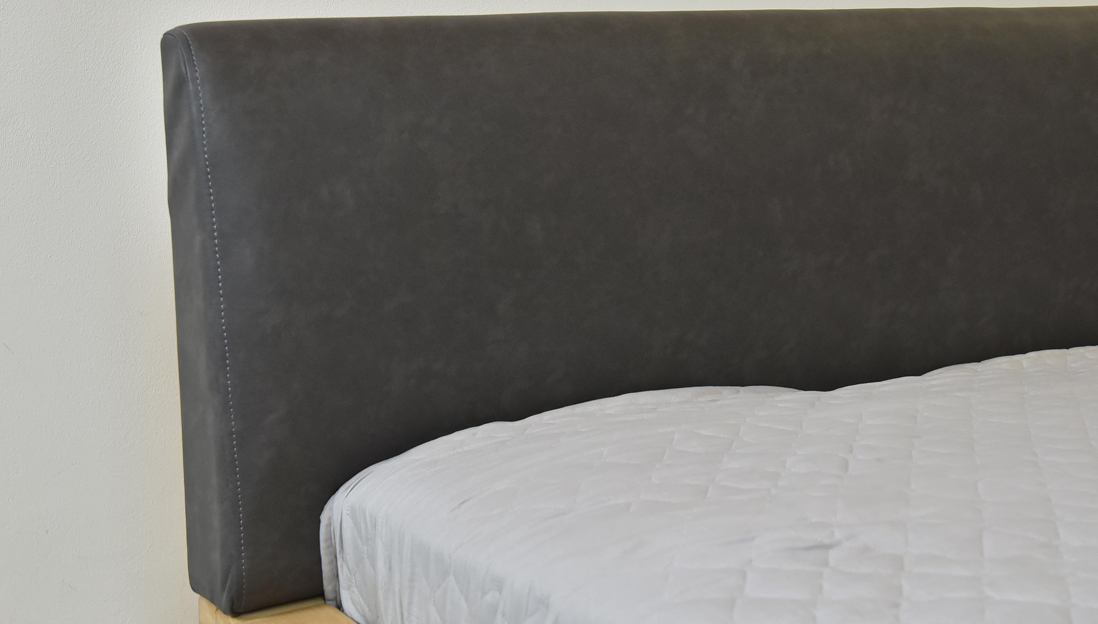 Az ágy elegáns fejrésszel rendelkezik, minőségi Colorado - antracit anyagból készült, amely a csiszolt bőrt utánozza. Nagyon kellemes tapintású, tisztítása csak enyhén nedves ronggyal, PH0 szappannal. Az anyag összetétele: 62% PU bőr, 38% PES. Kopásállóság akár 100 000 ciklusig.