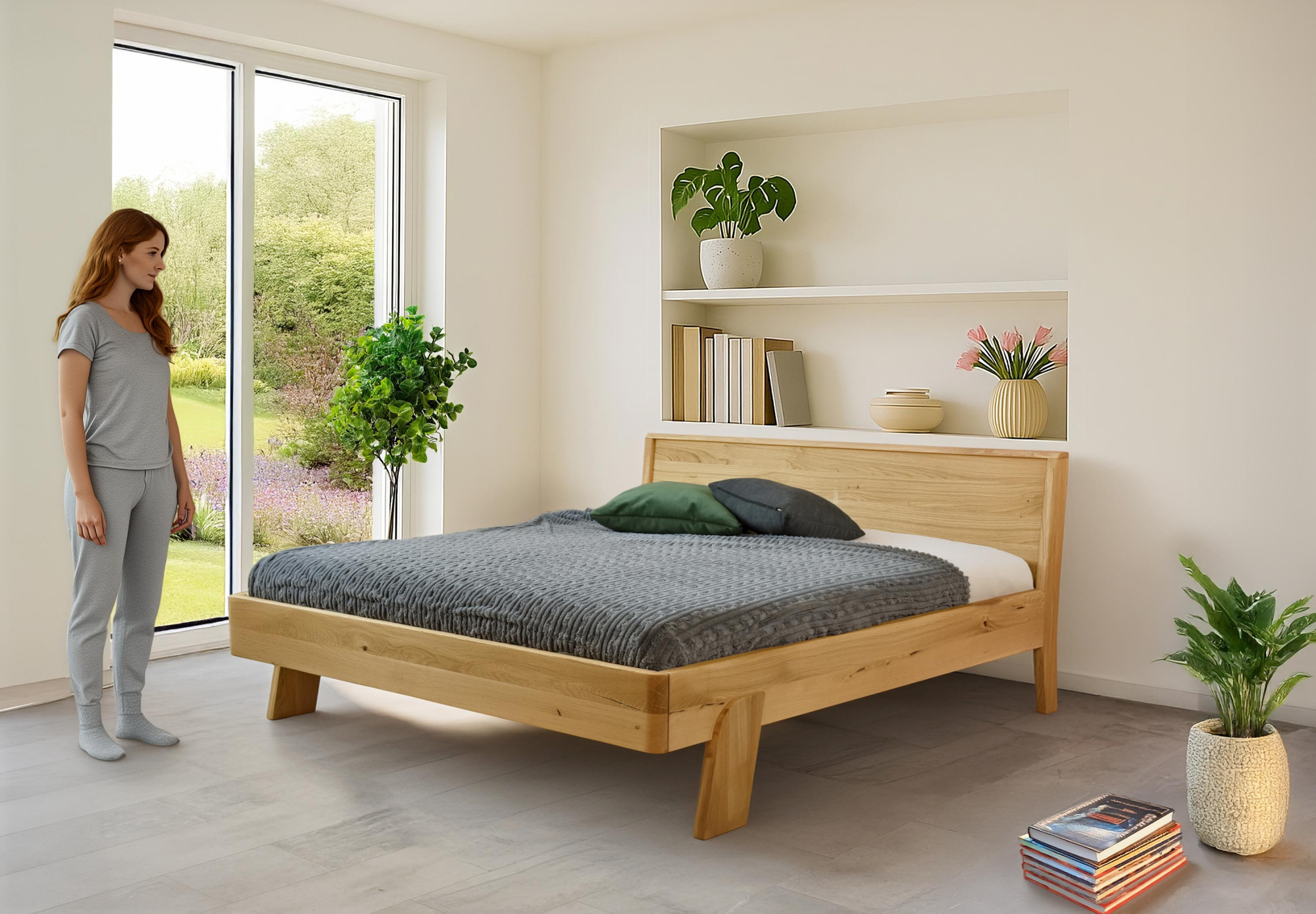 Igen, a természetes tölgy miatt az ágy remekül illik más tömörfa termékekhez, különösen az éjjeliszekrényekhez és komódokhoz.