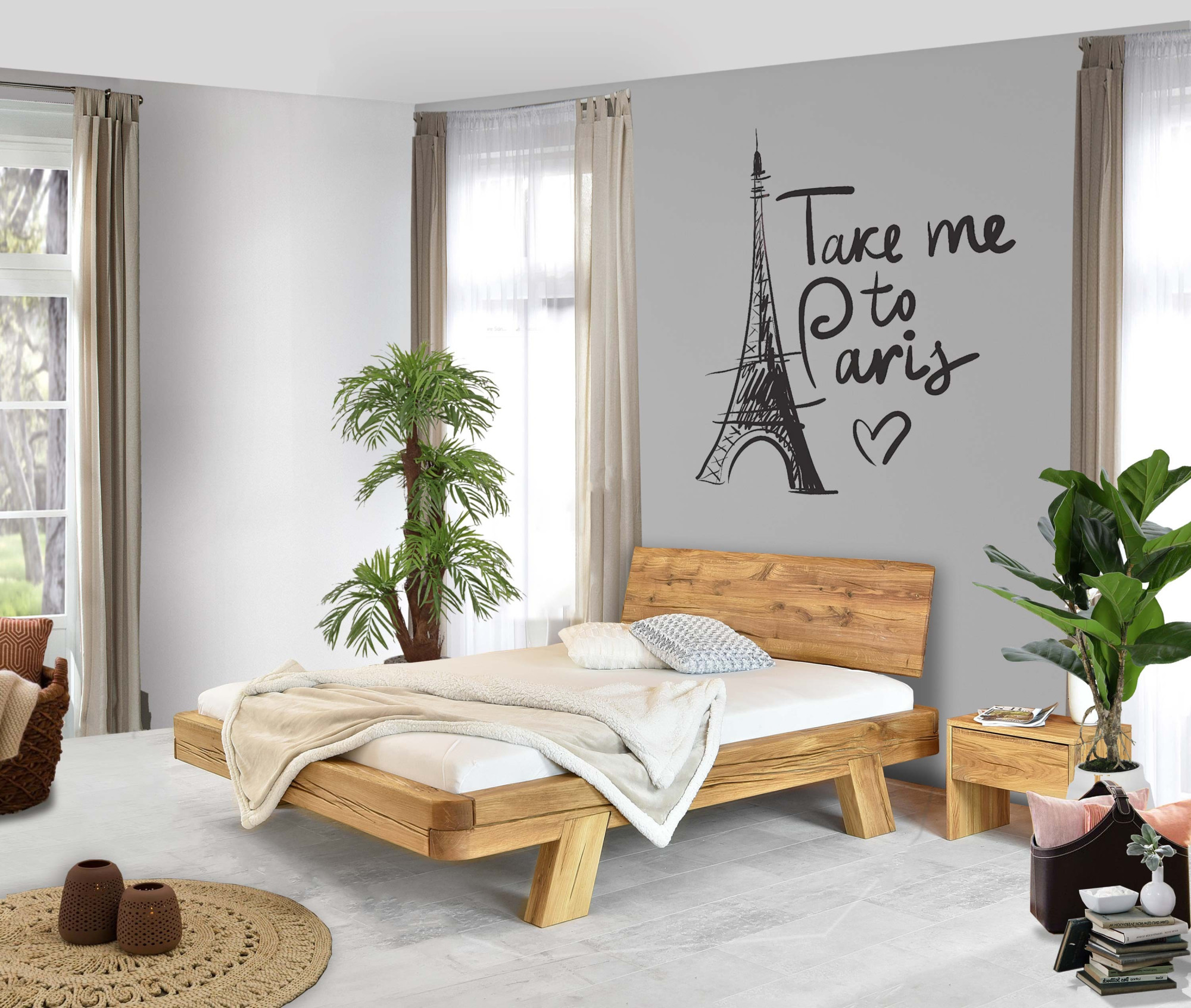 Masív tölgyfa gerendás franciaágy 180x200 cm, természetes olajozott