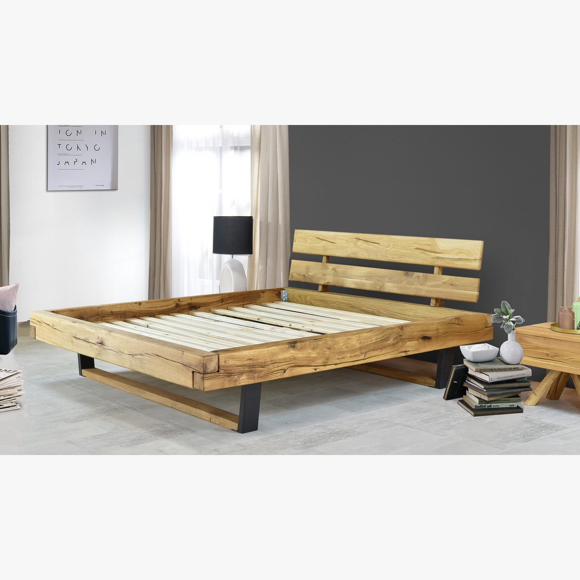 Modern tömör tölgy Laura ágy 200 x 200 cm fém lábakkal