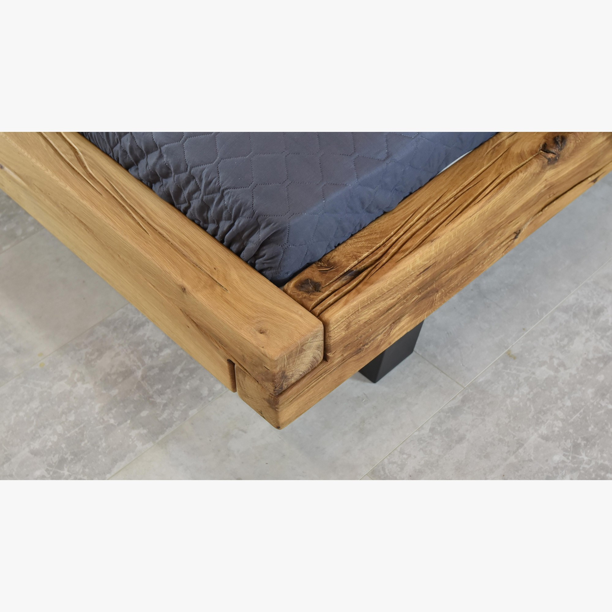 Modern tömör tölgyfa franciaágy 200x200 cm fekete fém lábakkal