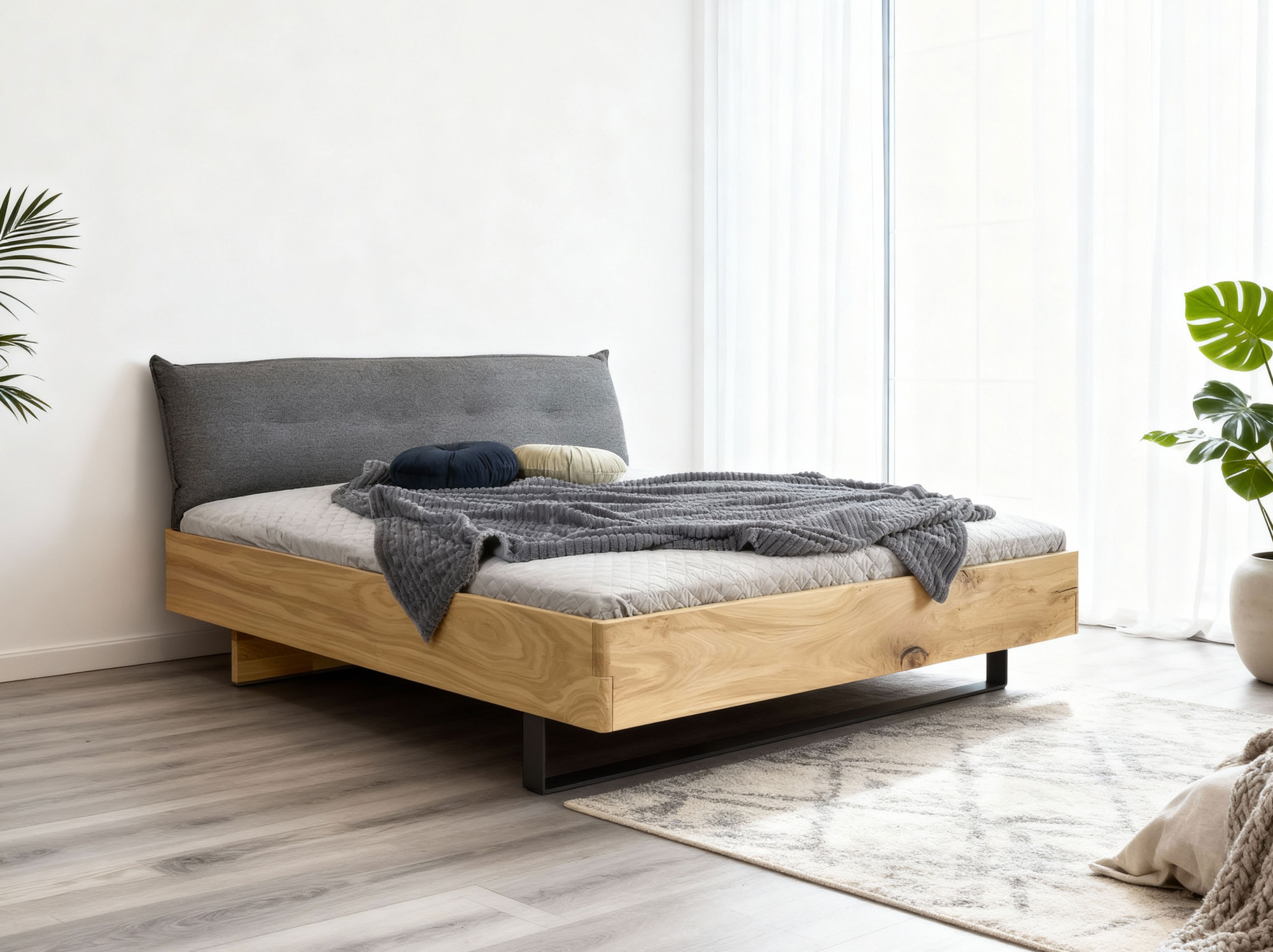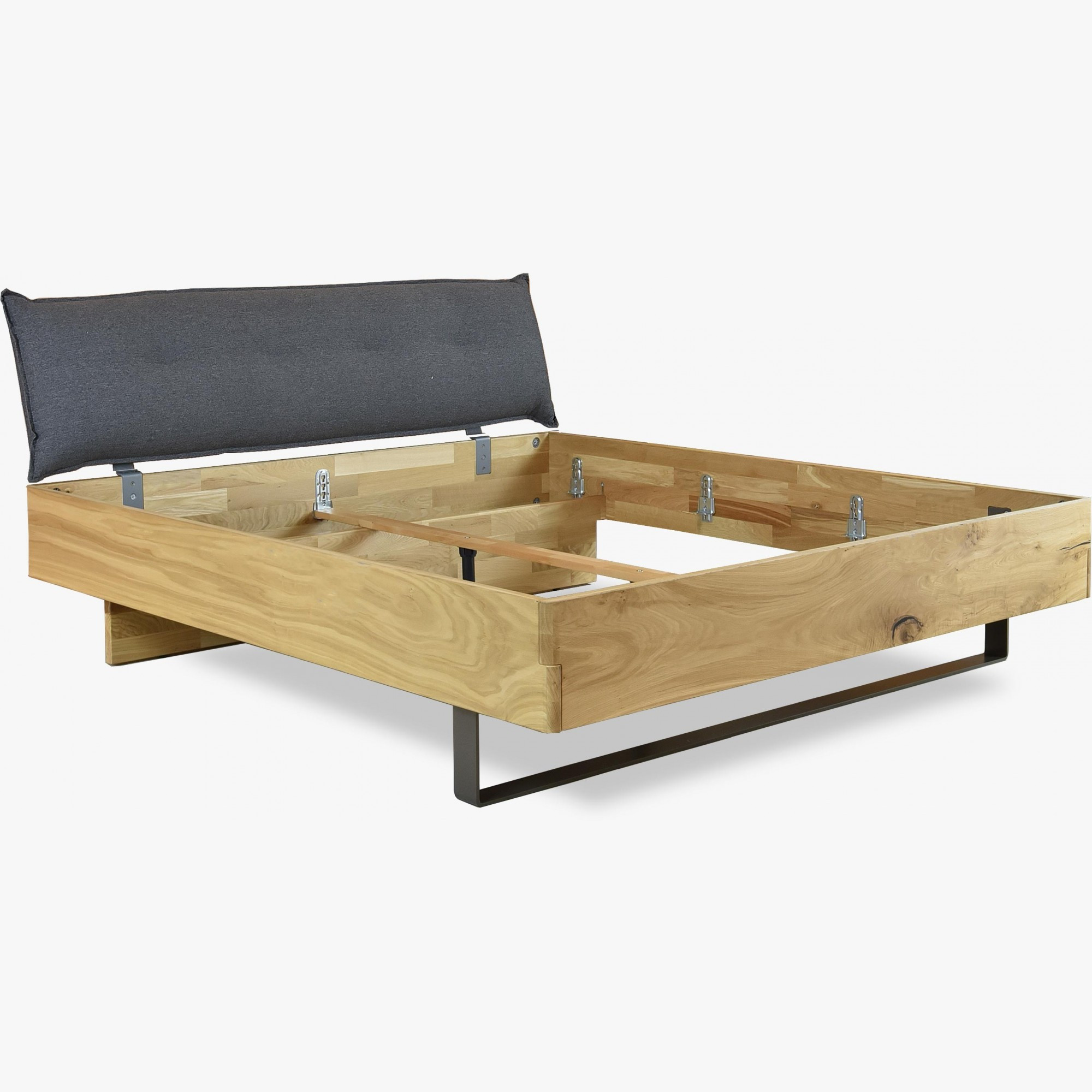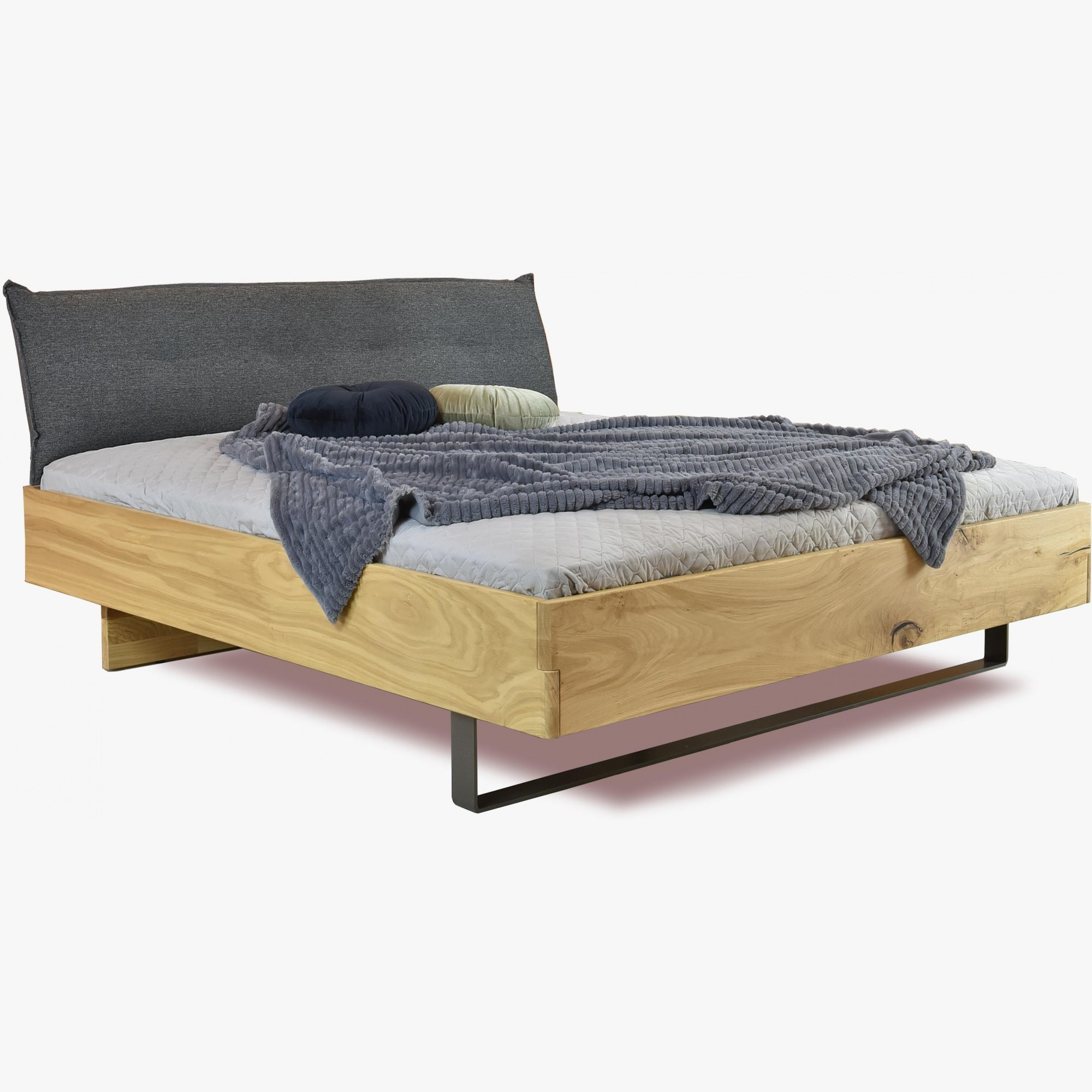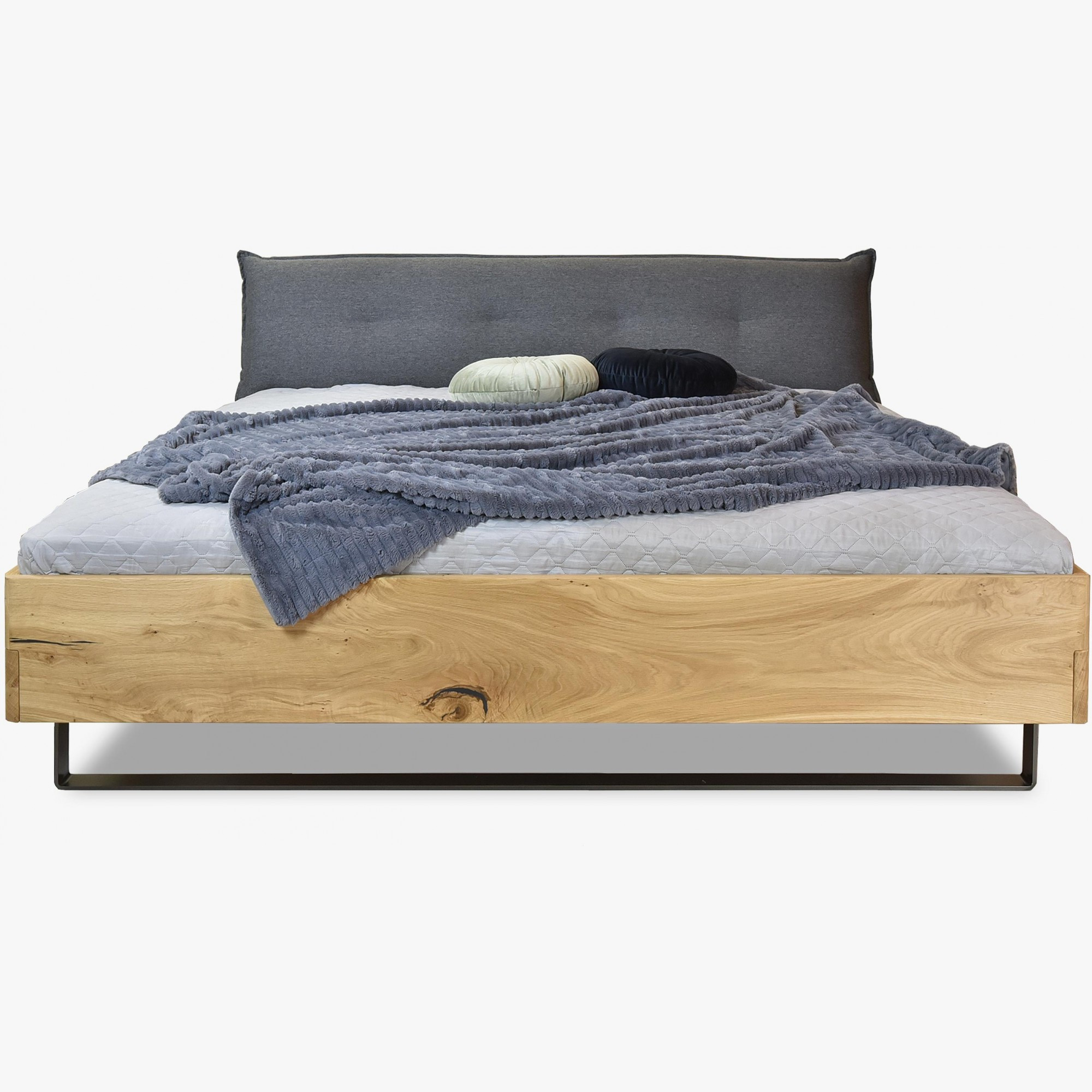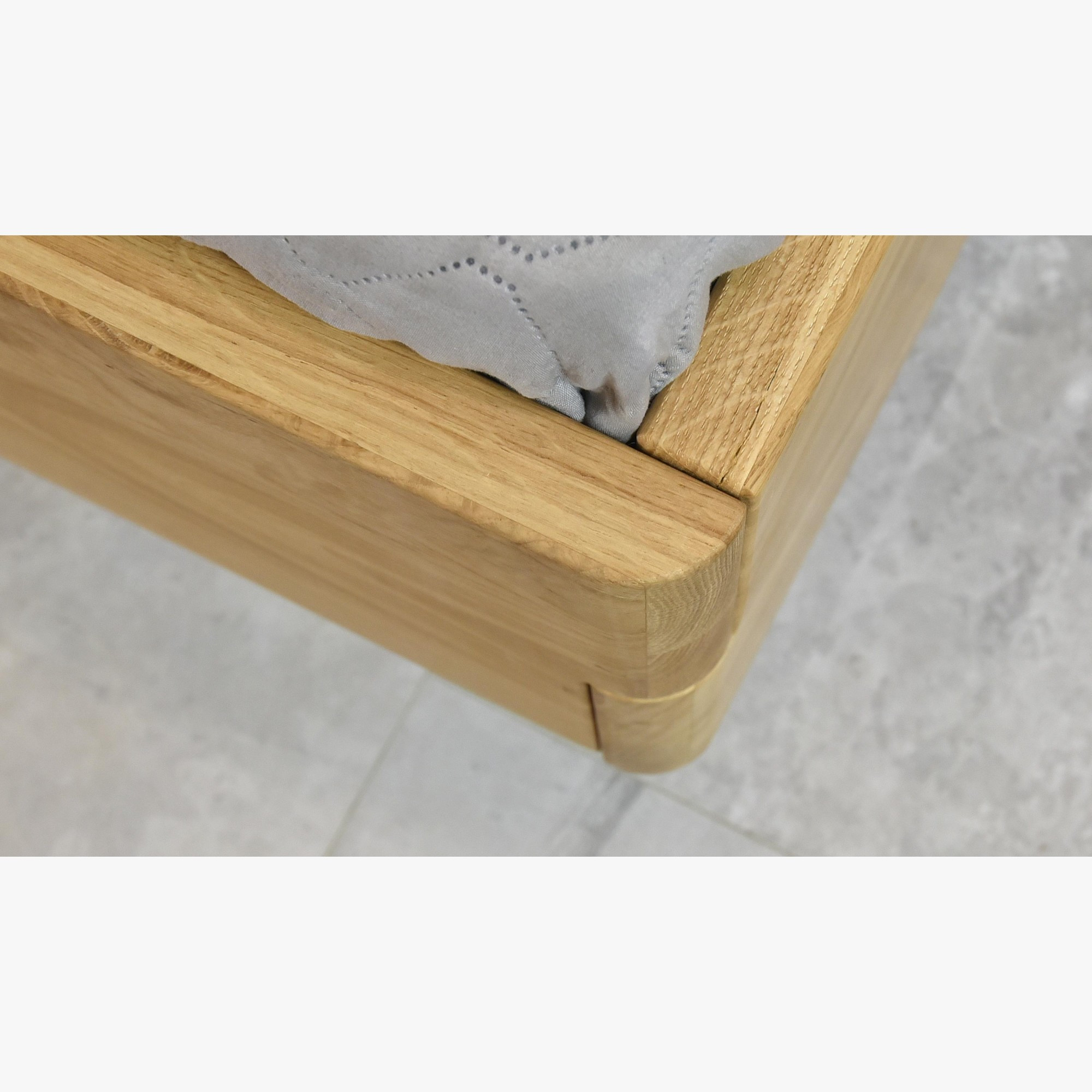Masszív tölgyfa franciaágy 180x200 cm, kárpitozott fejvéggel